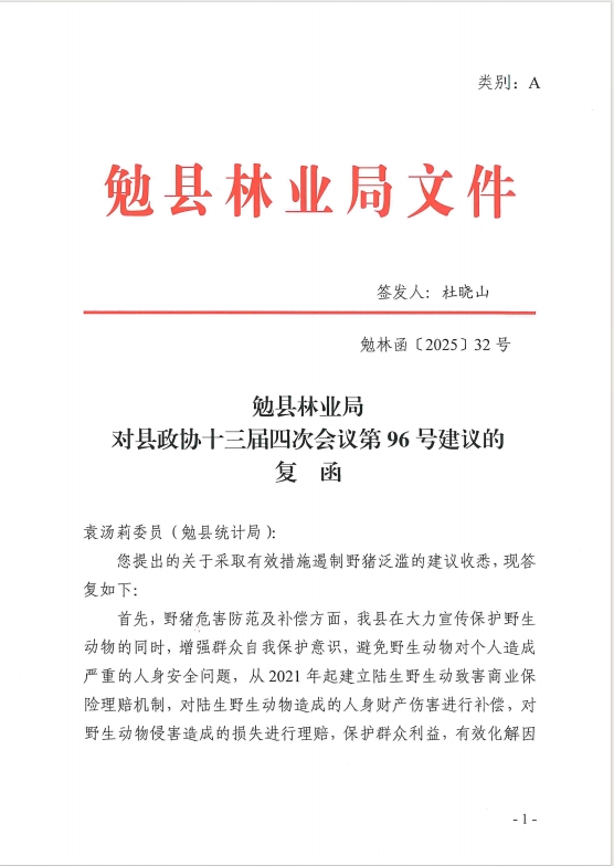 您提出的关于采取有效措施遏制野猪泛滥的建议收悉,现答复如下: