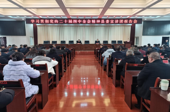 12月2日下午,学习贯彻党的二十届四中全会精神县委宣讲团在县教体系统宣讲,县委宣讲团成员,县教体局党组书记、局长孙陆保作宣讲报告,党组成员、副局长余和龙主持宣讲会议。