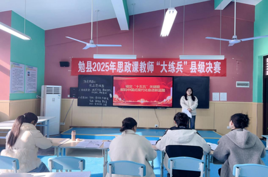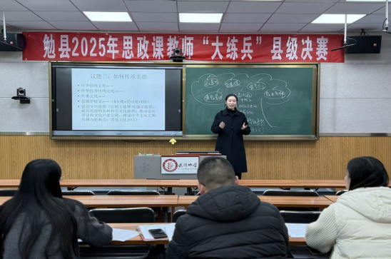 12月10日,勉县2025年思政课教师“大练兵”县级决赛顺利举办。来自全县的61名思政课教师齐聚赛场、同台竞技,充分展现新时代思政课教师的教学素养与专业风采。县教体局党组书记、局长孙陆保,党组成员、副局长晏泽民、余和龙、王娟,在县教研室主任顾东升的陪同下到比赛现场听课。