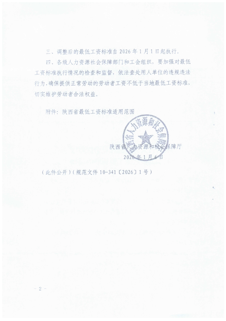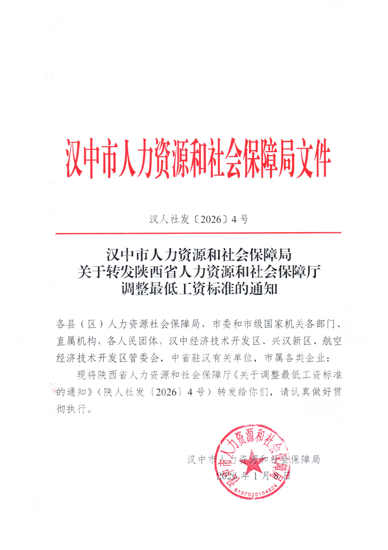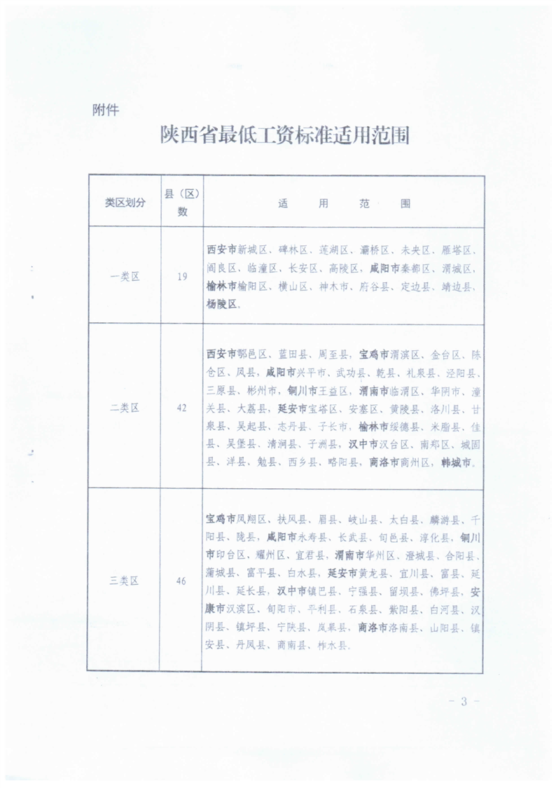 转发陕西省人力资源和社会保障厅关于调整最低工资工资标准的通知