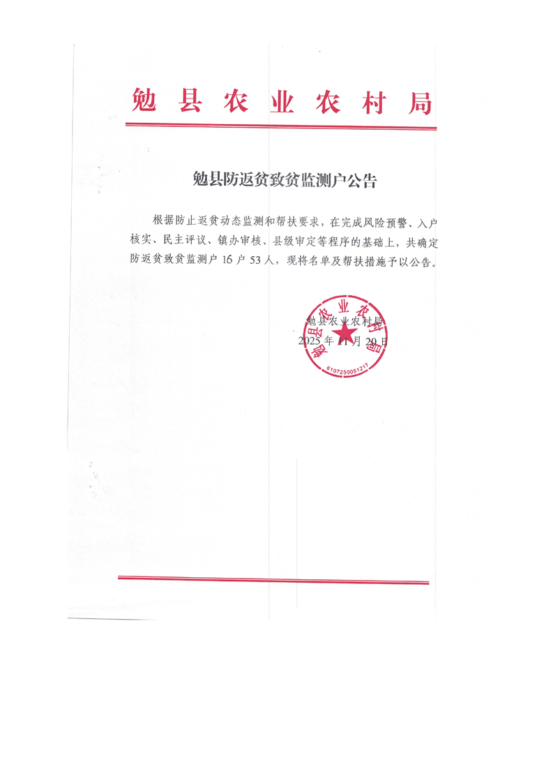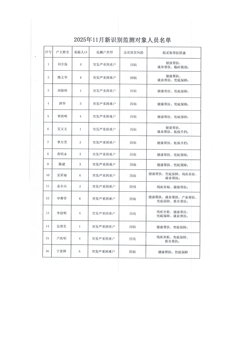 勉县防返贫致贫监测户公告16户53人