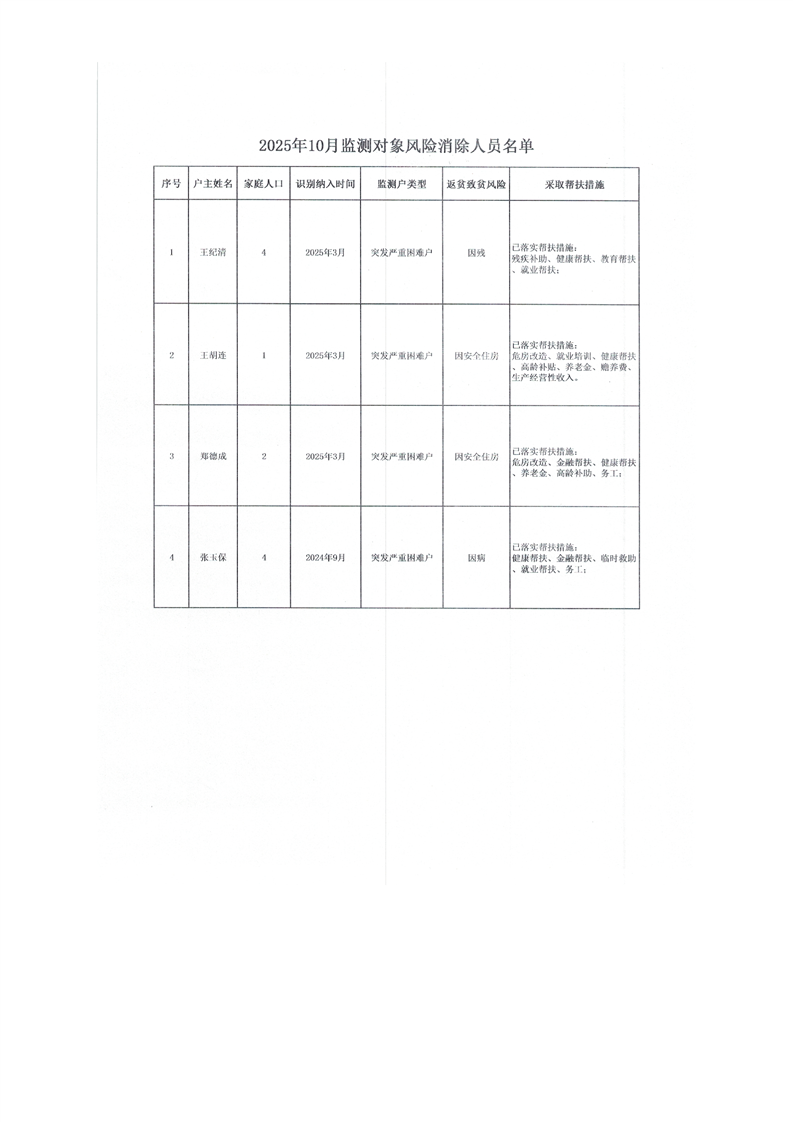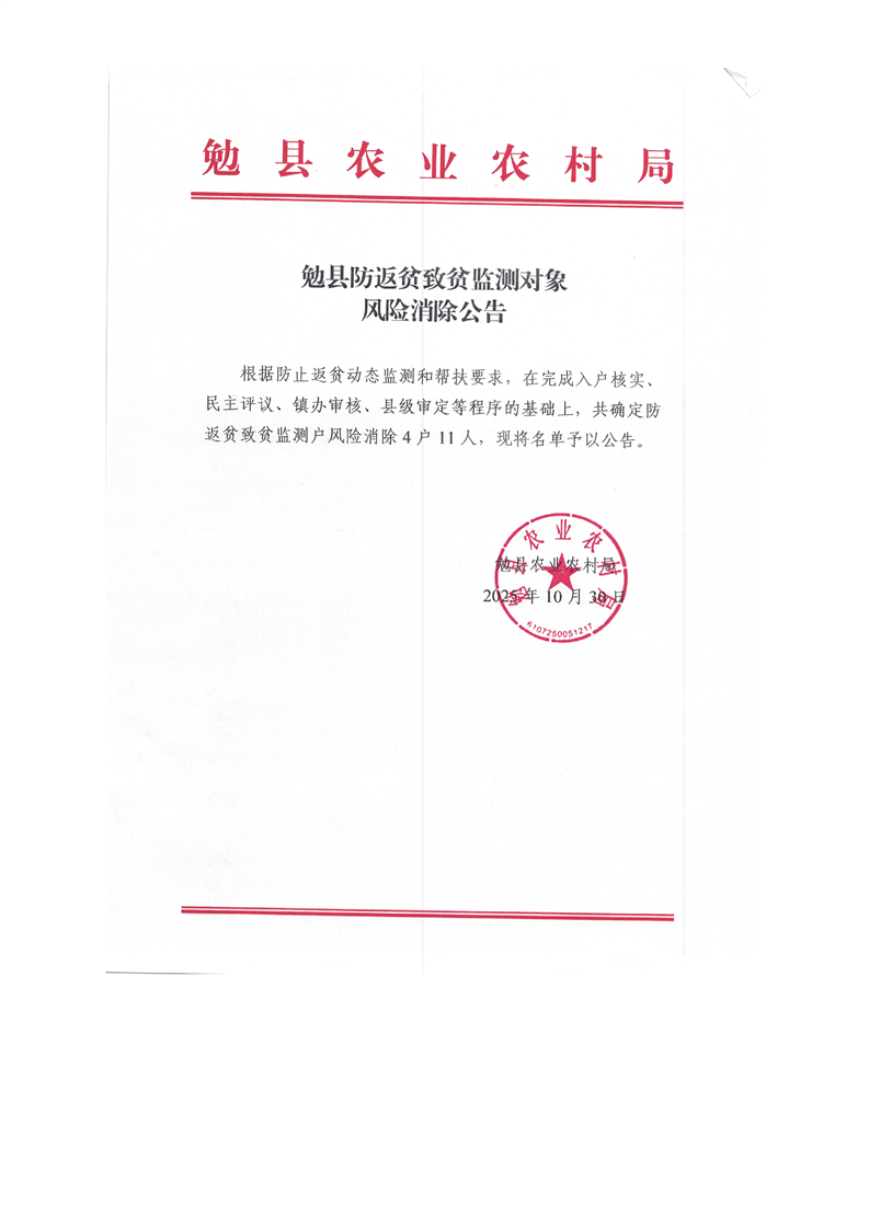 勉县防返贫致贫监测对象风险消除公告4户11人