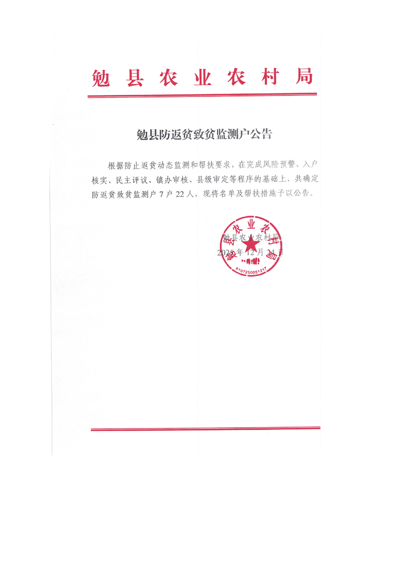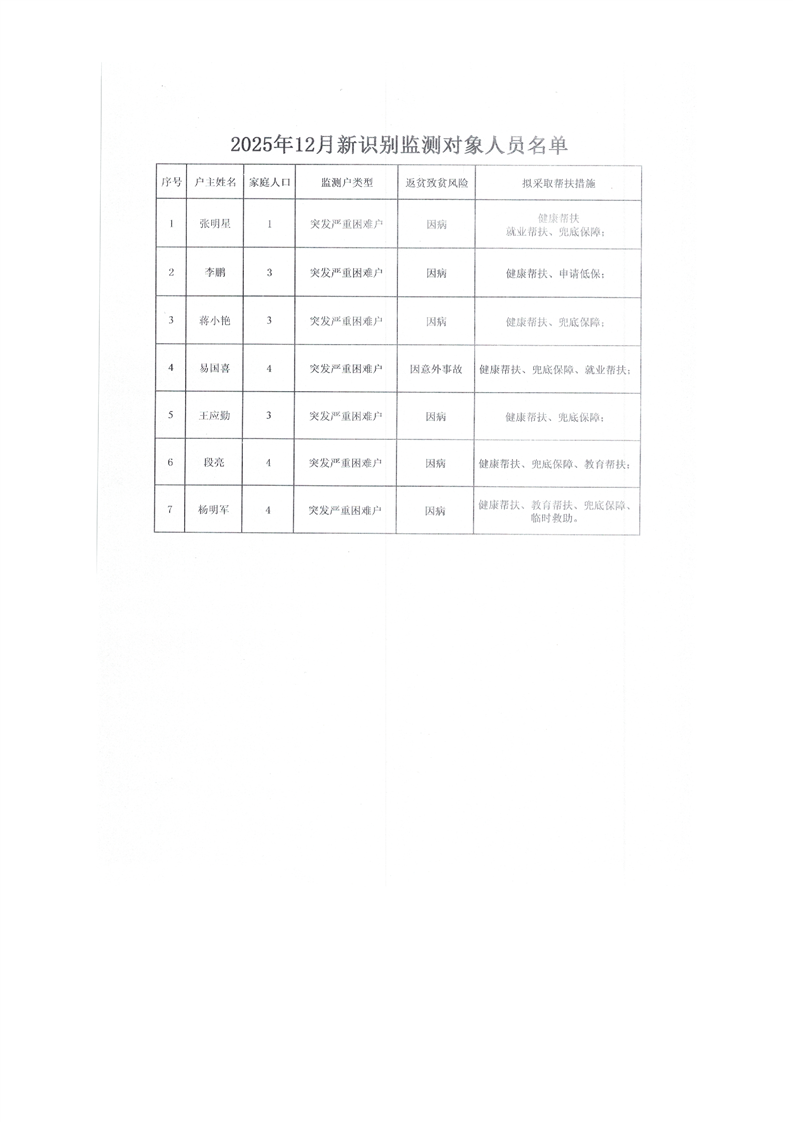 勉县防返贫致贫监测户7户22人