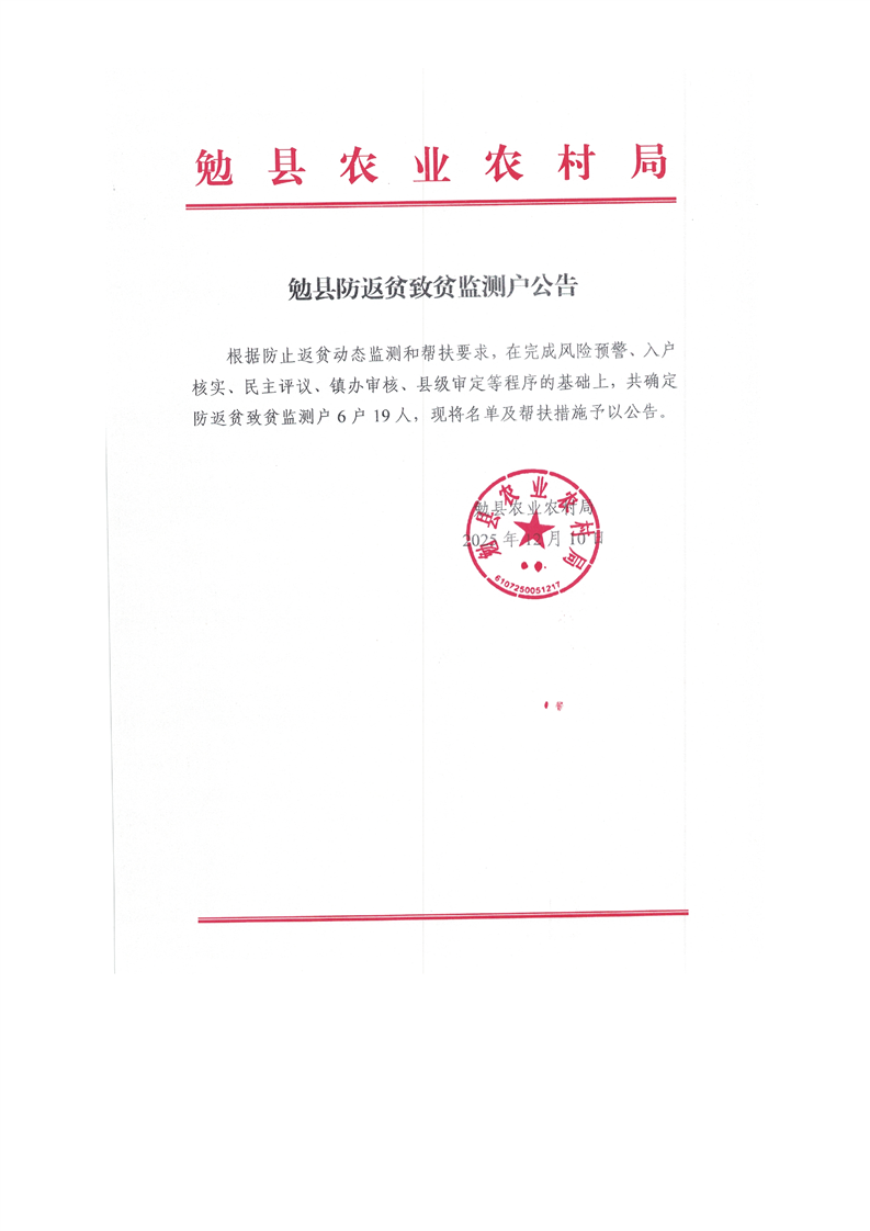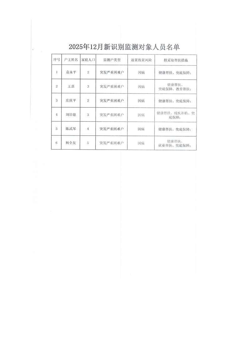 勉县防返贫致贫监测户公告6户19人