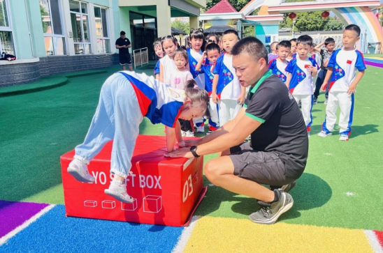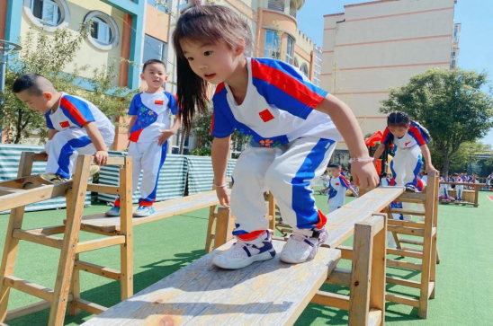 活动中,体能锻炼被列为重点环节。老师们依据幼儿动作发展规律,巧妙设置了翻越障碍物、平衡木挑战、立定跳远等趣味项目。孩子们在翻越低矮障碍时锻炼肢体协调性,在平衡木上稳步前行时培养专注力,在立定跳远中增强身体控制力,现场充满欢声笑语。