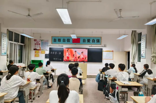 9月1日,温泉镇初级中学组织全体同学准时收看中央电视台播出的《开学第一课》节目。教室里,同学们坐姿端正、目光专注,荧屏中一个个鲜活的榜样故事、一段段感人的成长经历,深深触动了每个人的心灵。