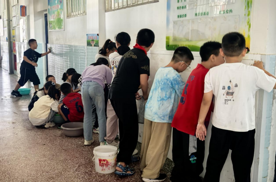 为培养学生劳动意识与责任担当,在班主任指导下,同学们化身“校园美容师”,分工协作、干劲十足,用行动守护校园整洁。