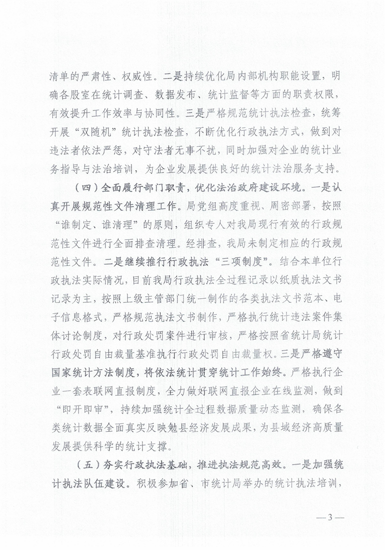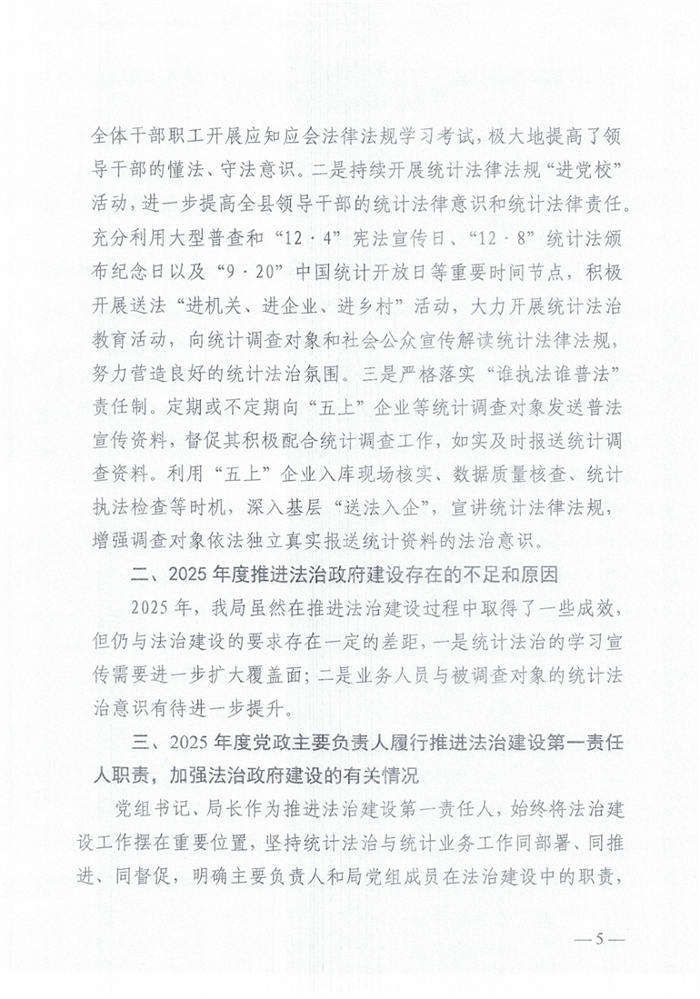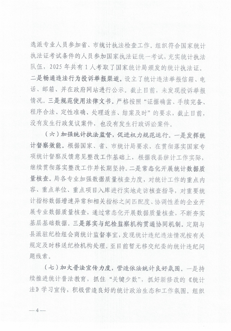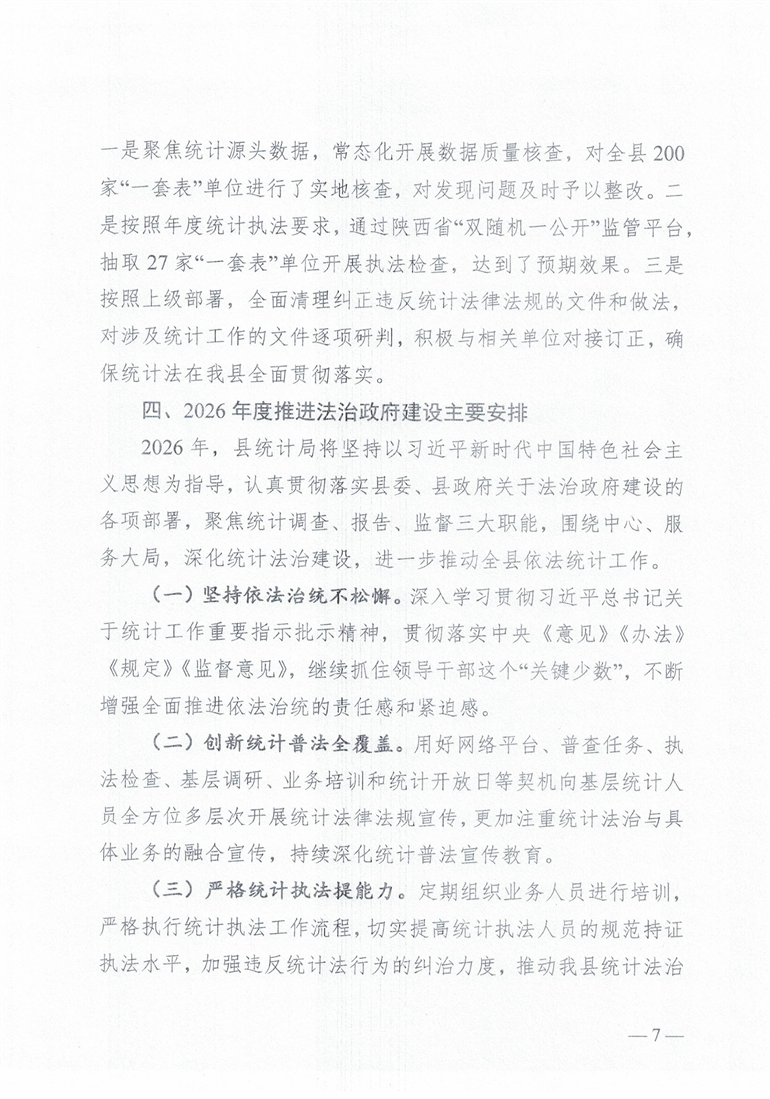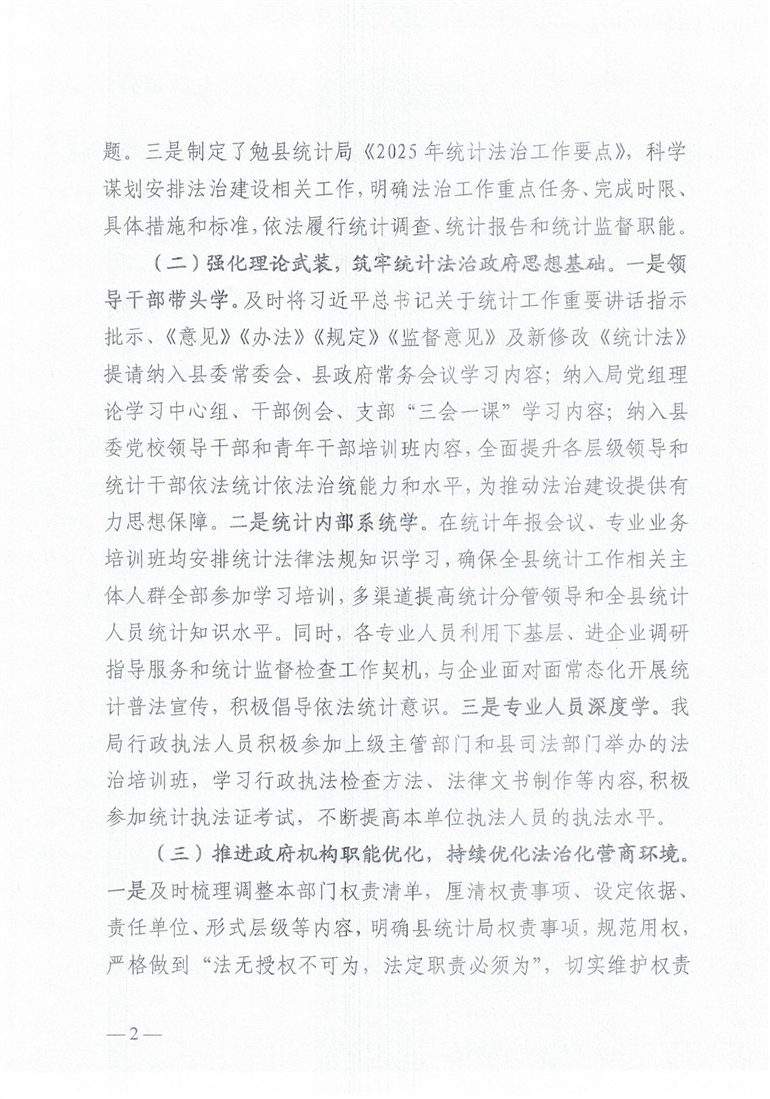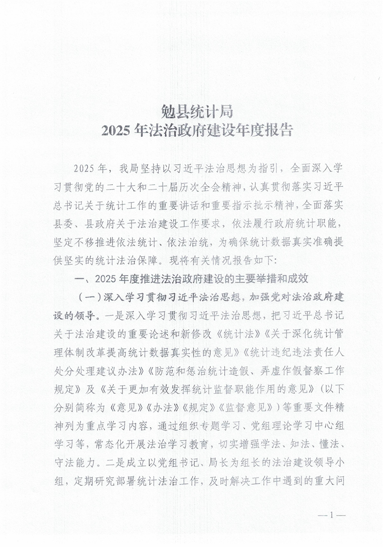 勉县统计局2025年法治政府建设年度报告