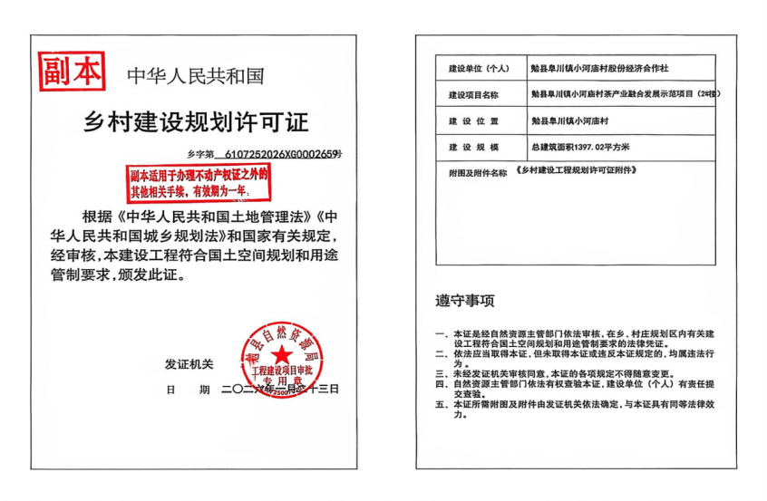 勉县阜川镇小河庙村茶产业融合发展示范项目(2#楼)乡村建设规划许可证公示