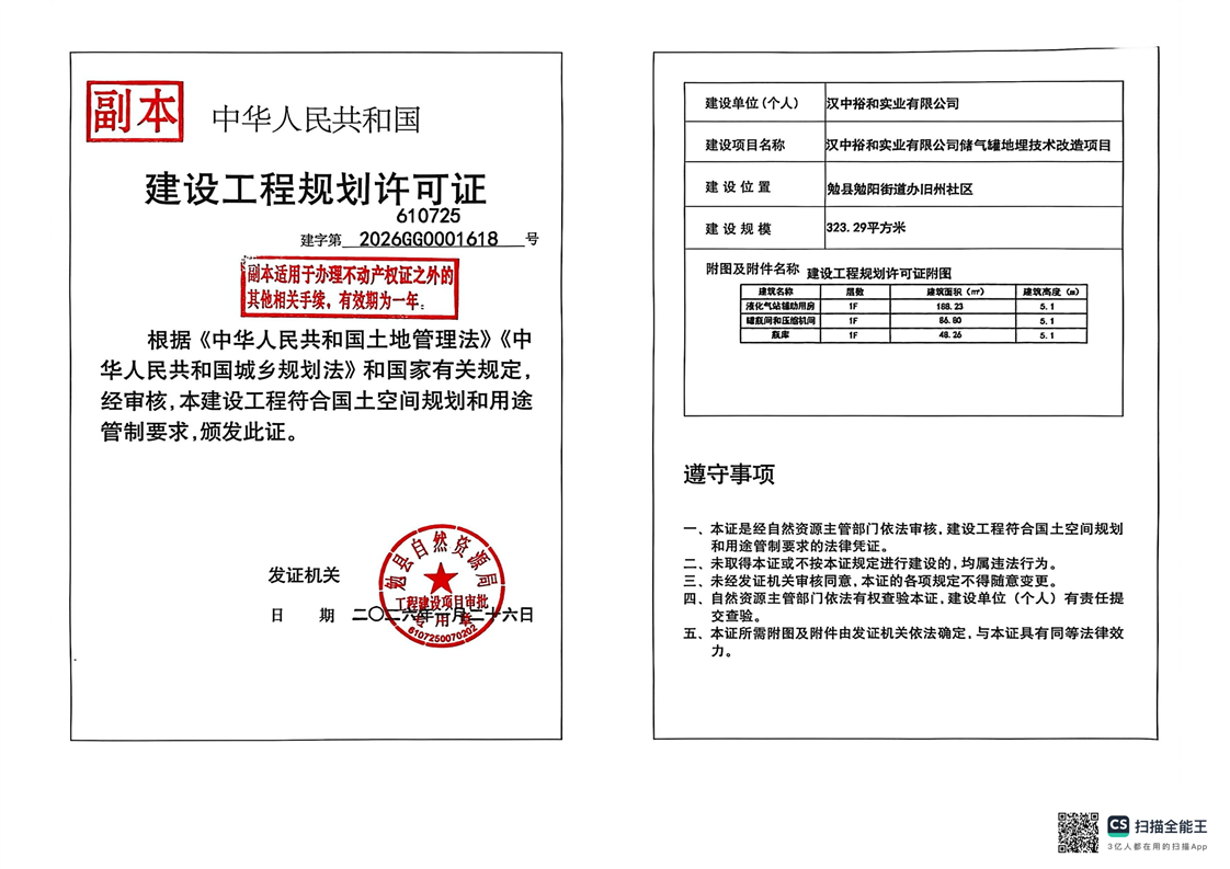 汉中裕和实业有限公司储气罐地埋技术改造项目建设工程规划许可证公示