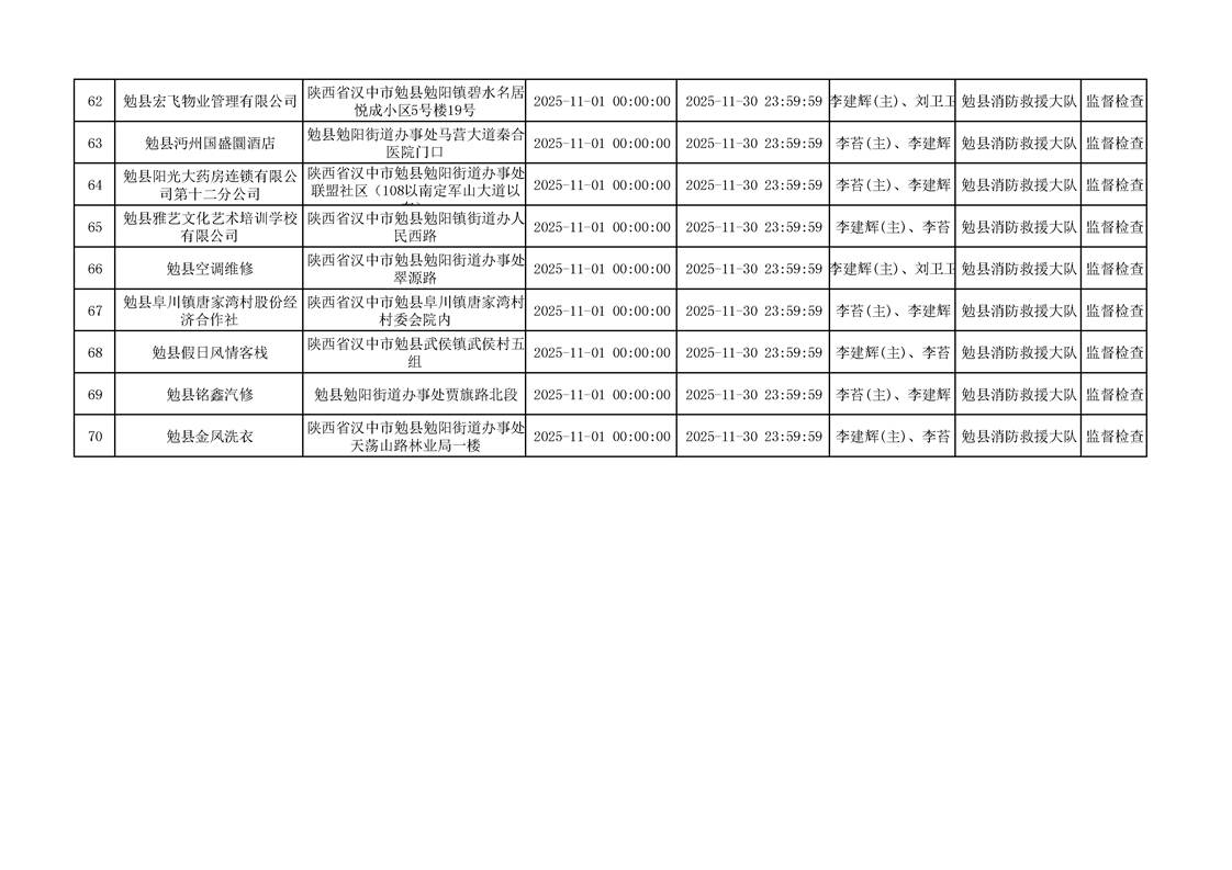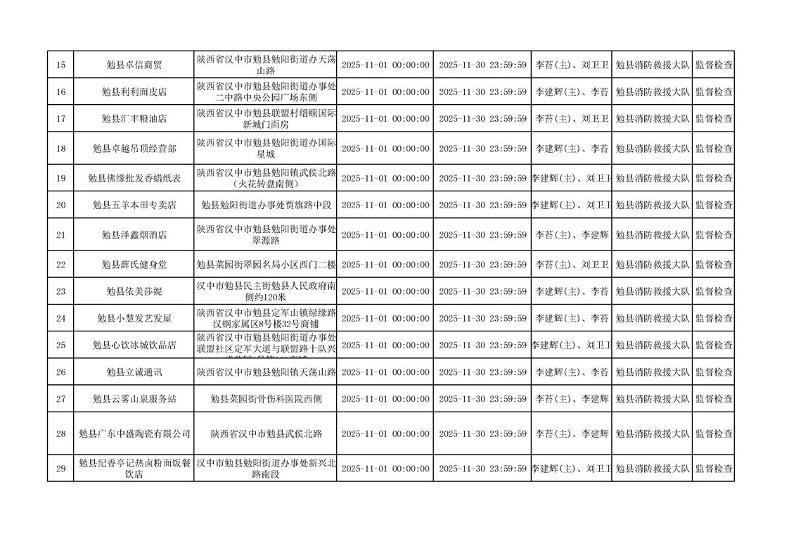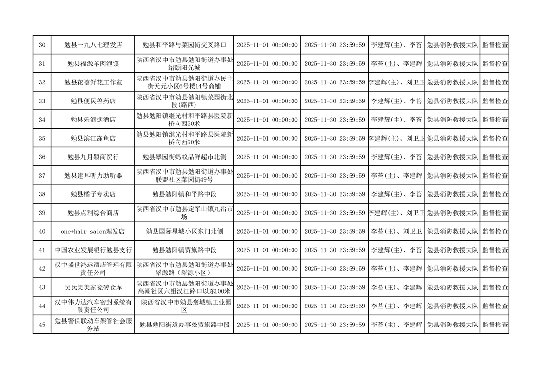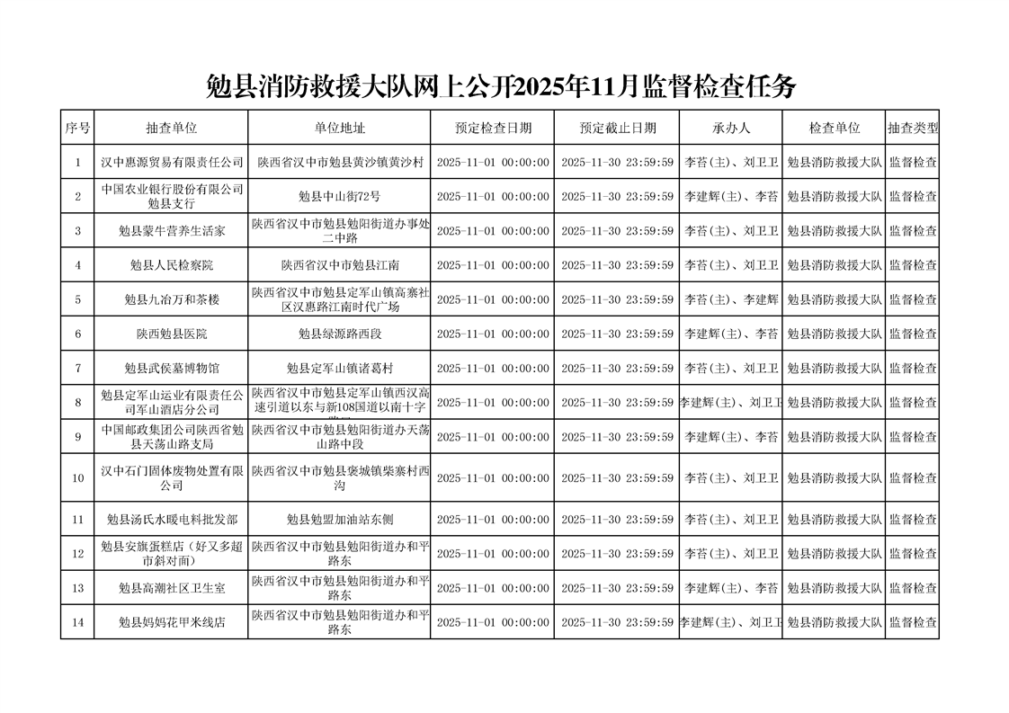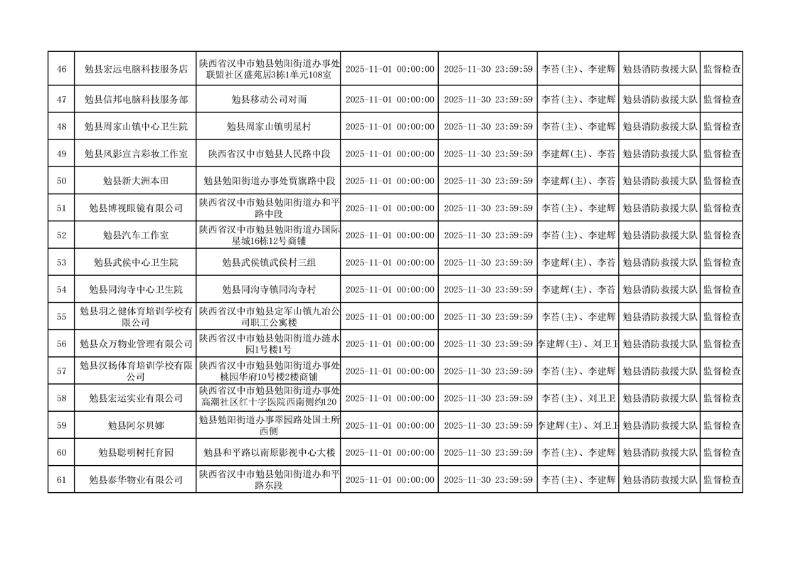 勉县消防救援大队网上公开2025年11月监督检查任务