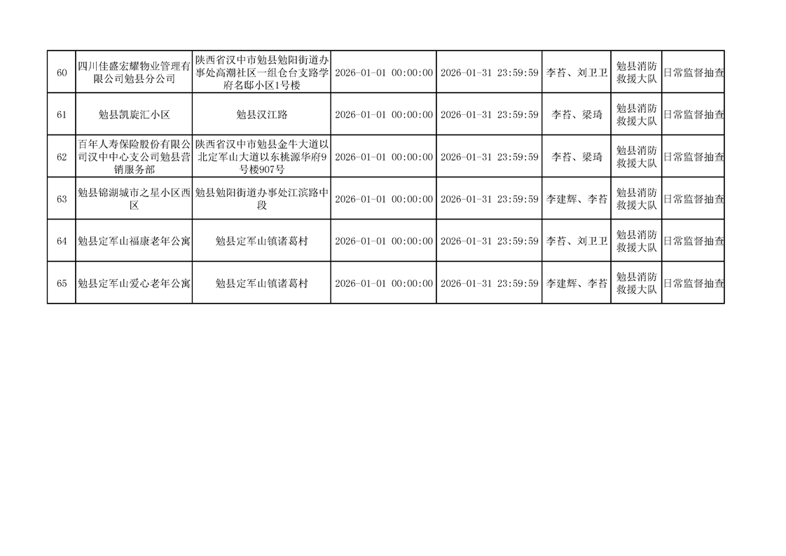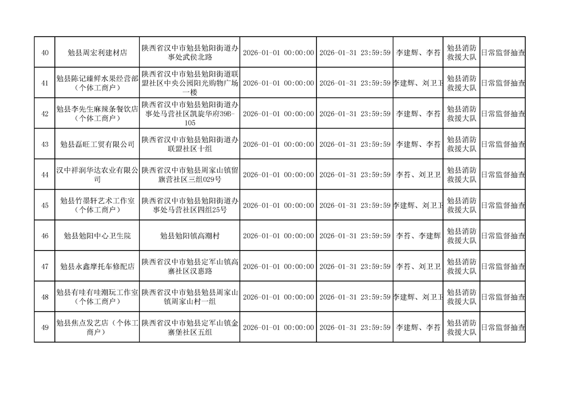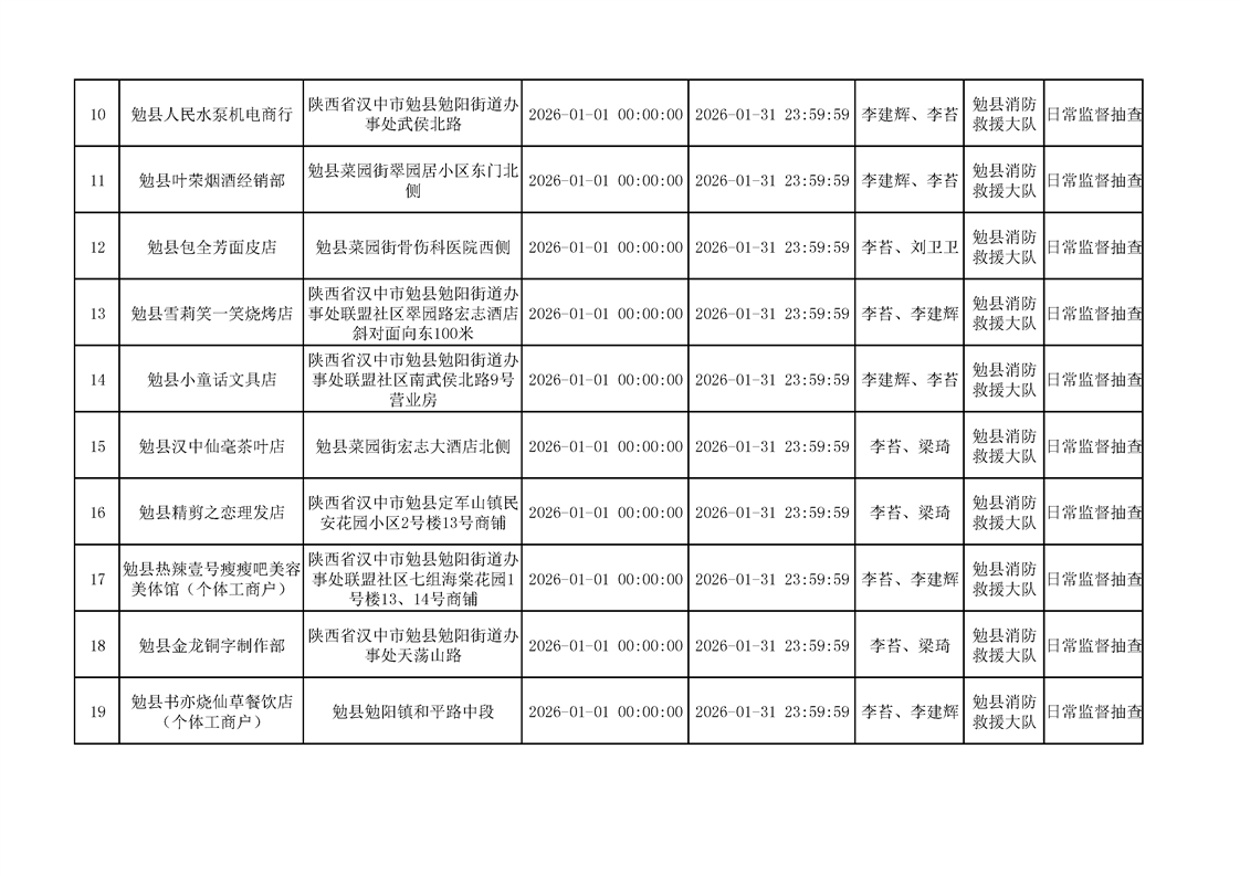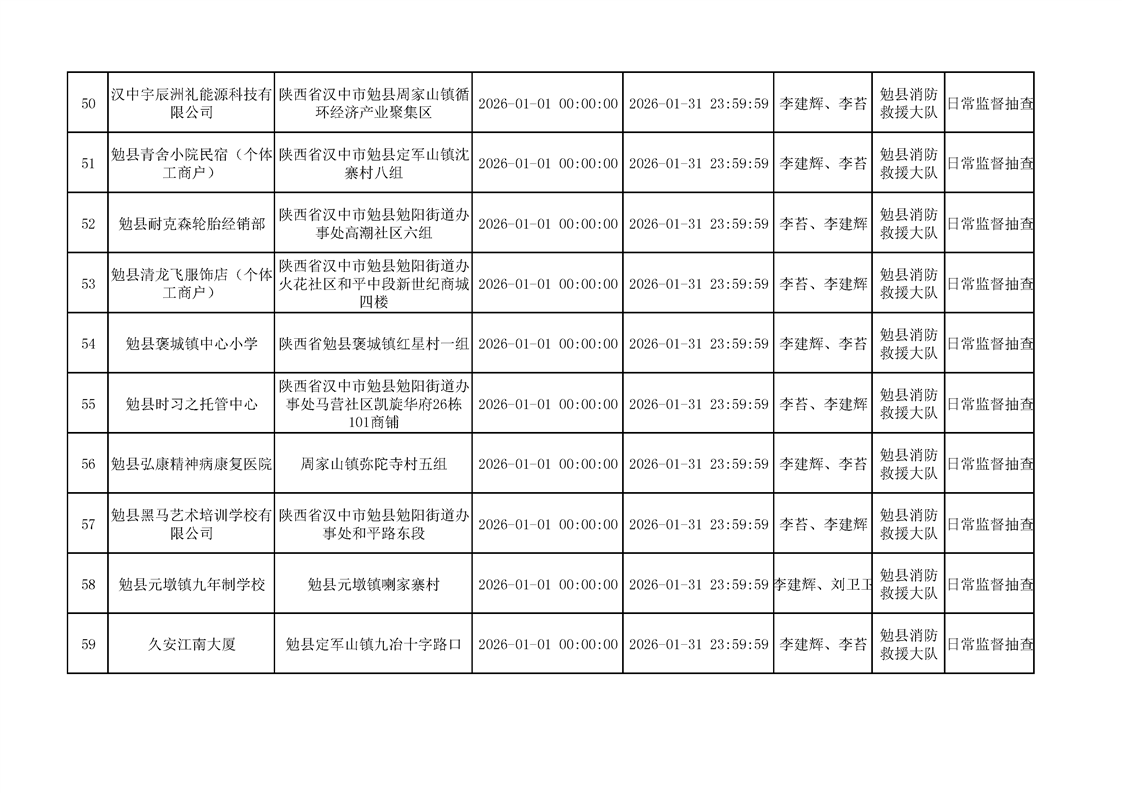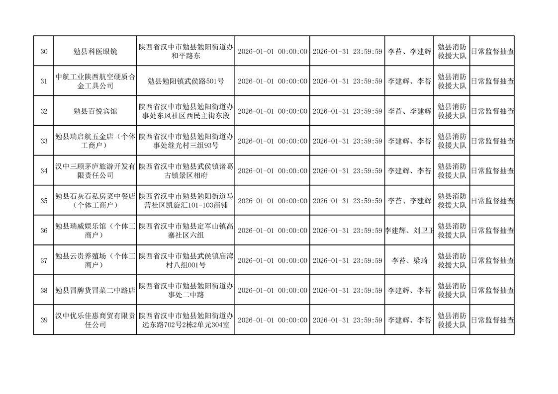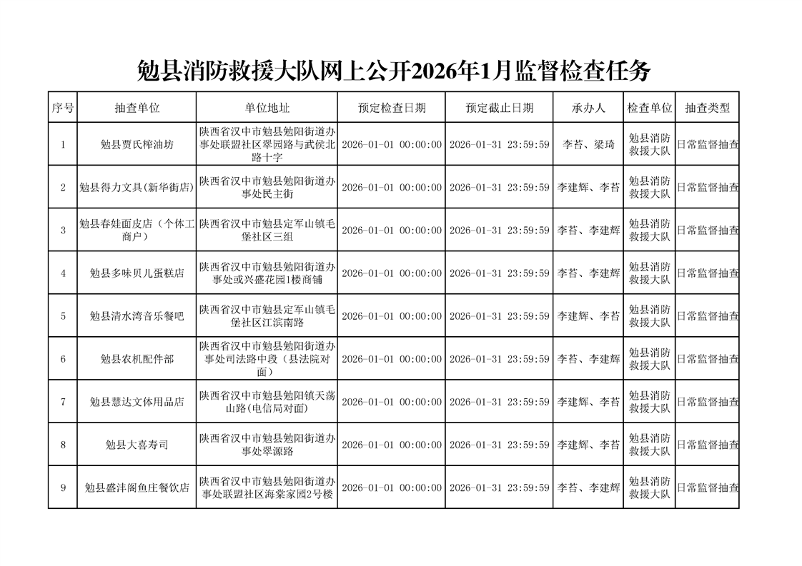 勉县消防救援大队网上公开2026年1月监督检查任务