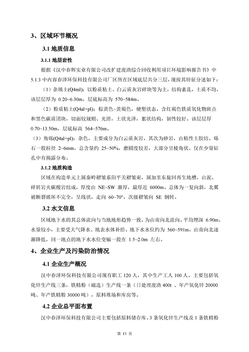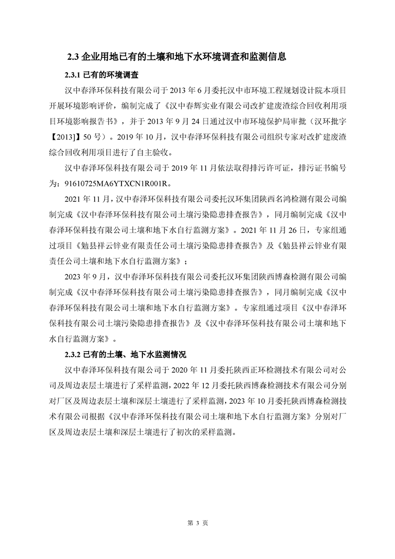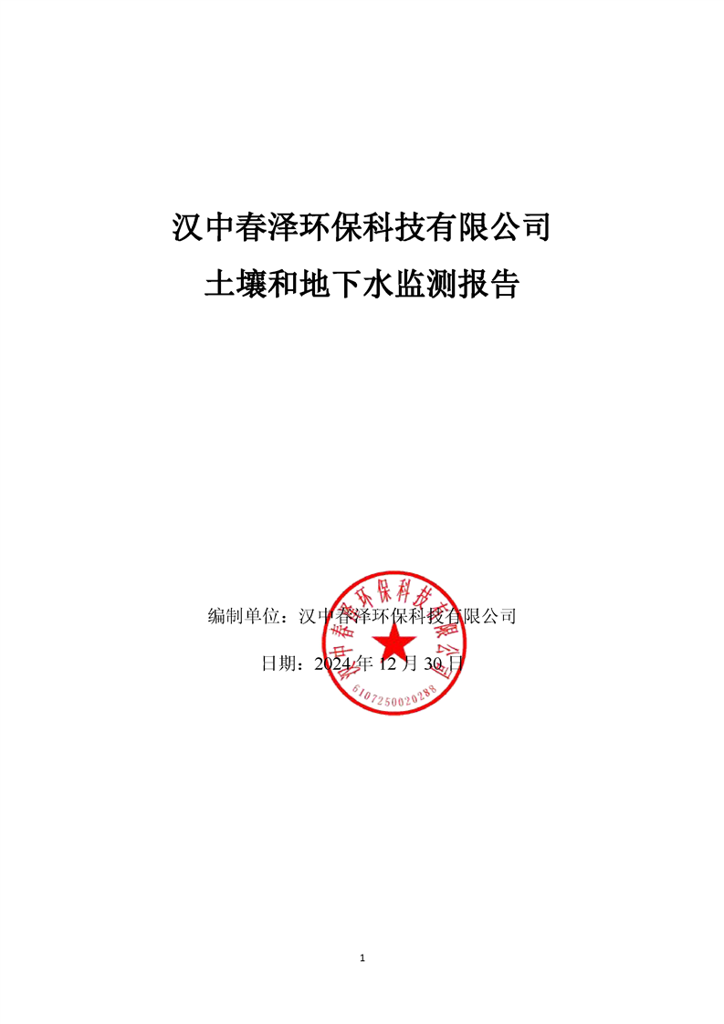 汉中春泽环保科技有限公司土壤和地下水监测报告