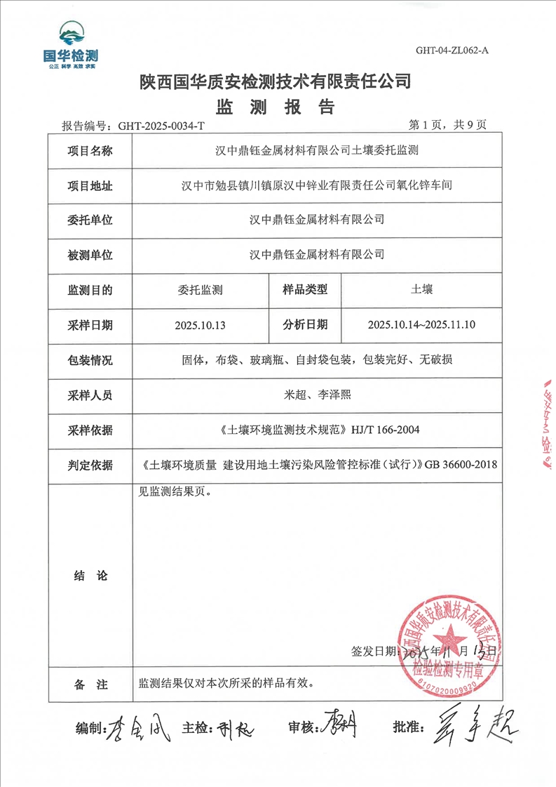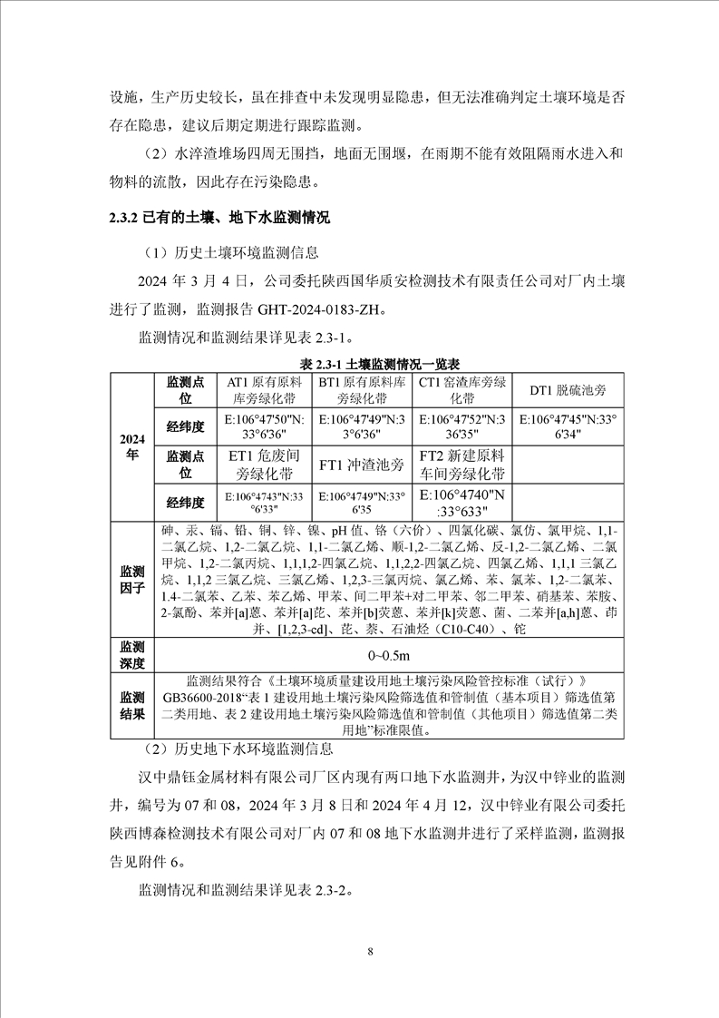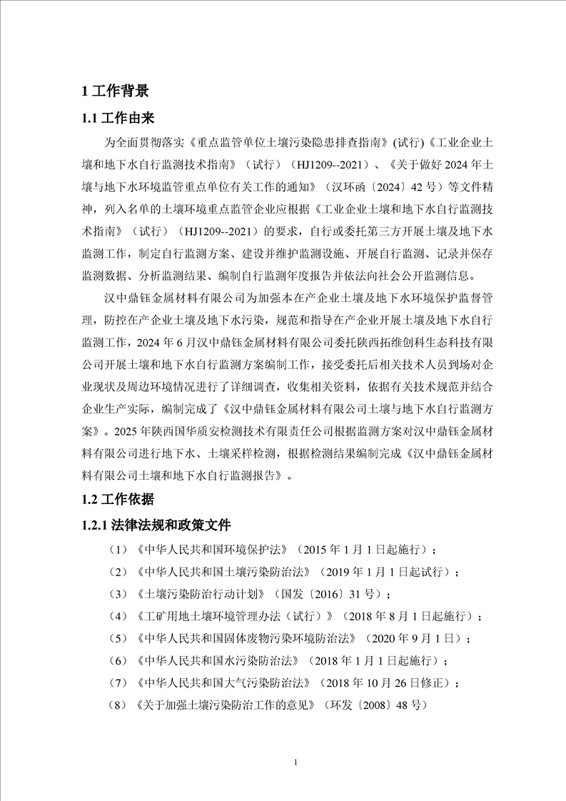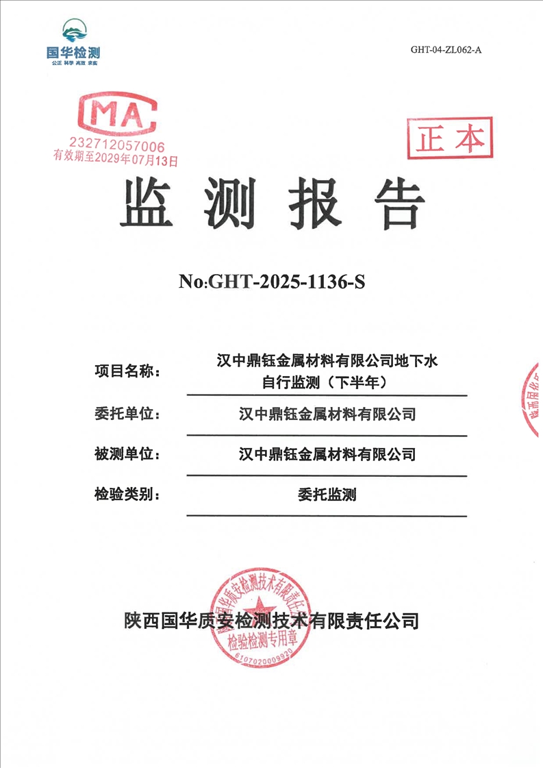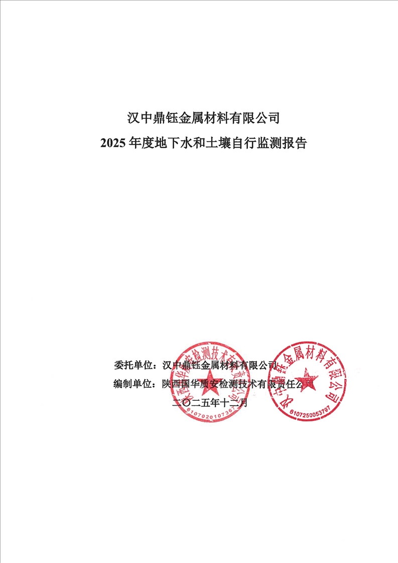 汉中鼎钰金属材料有限公司2025年度地下水和土壤自行监测报告(2025年)