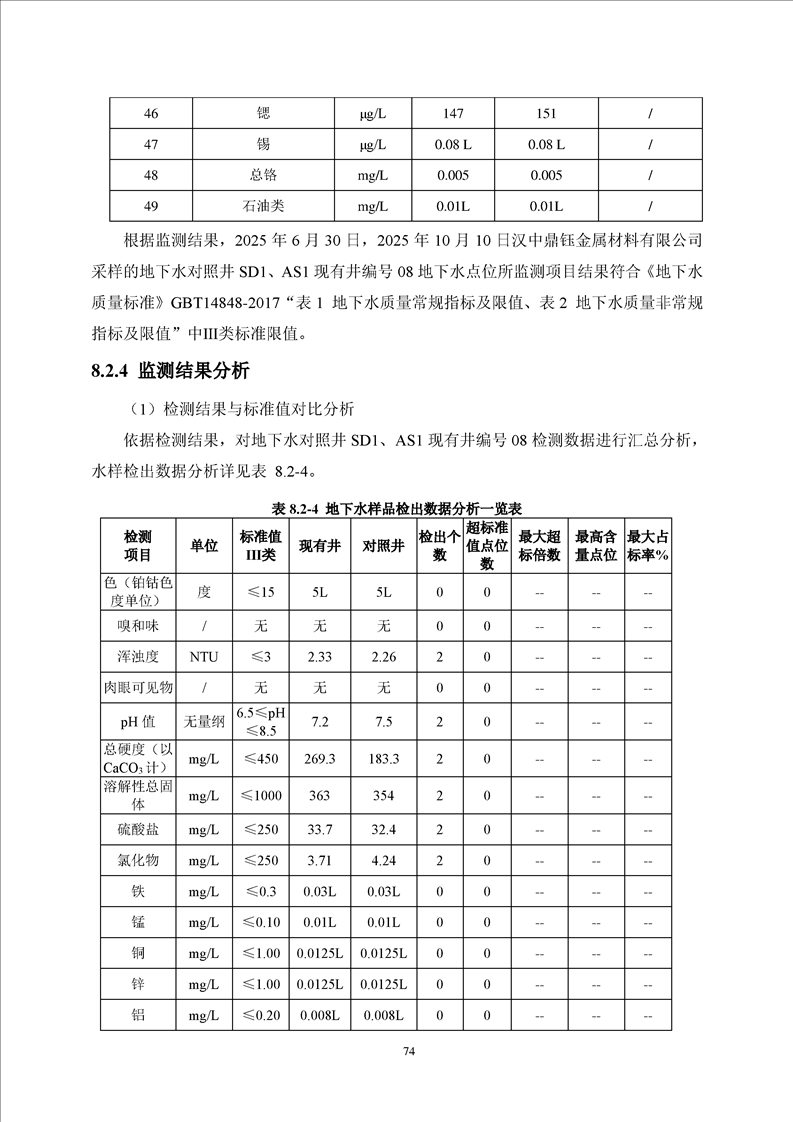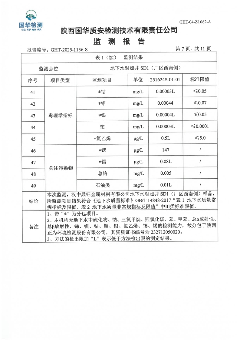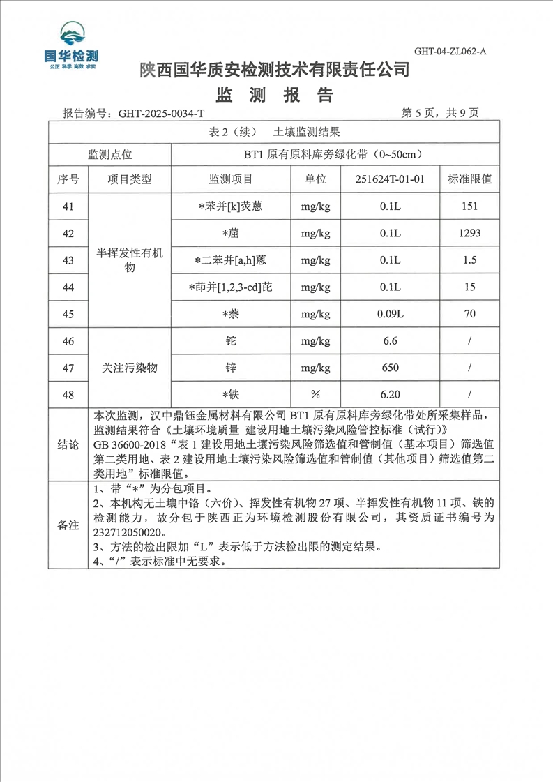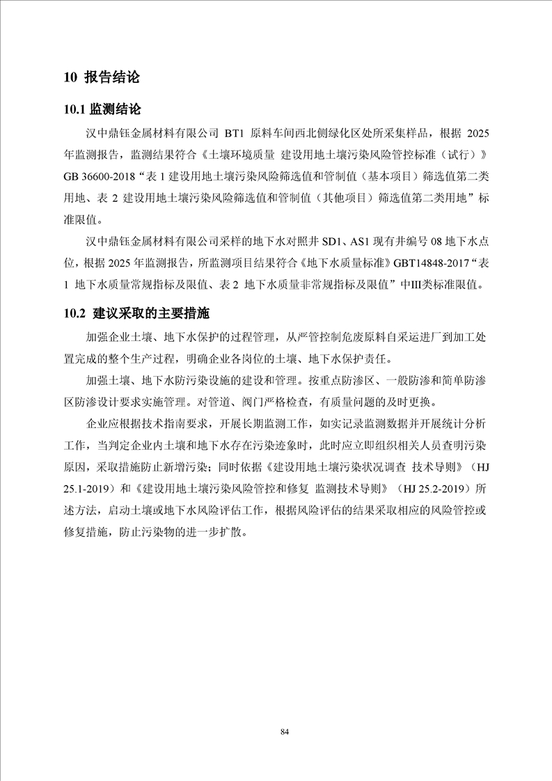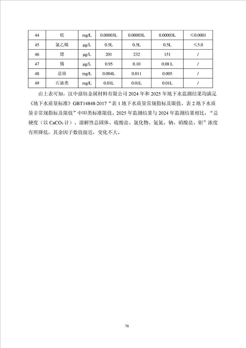 汉中鼎钰金属材料有限公司2025年度地下水和土壤自行监测报告(2025年)