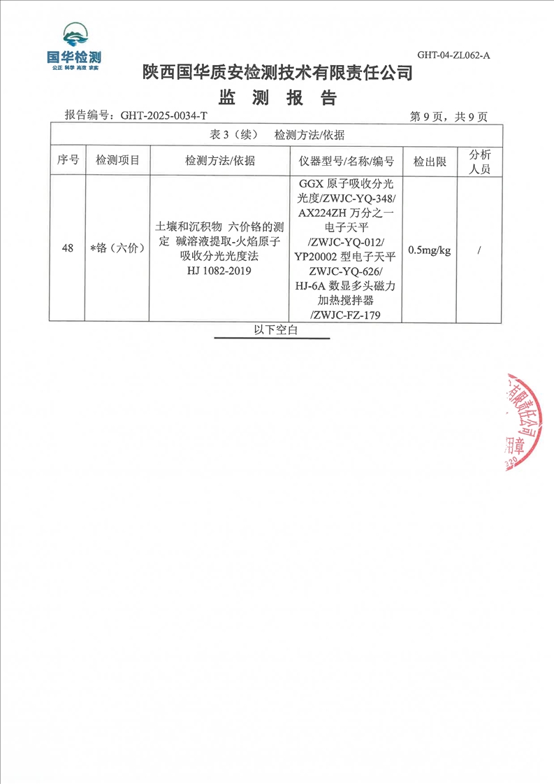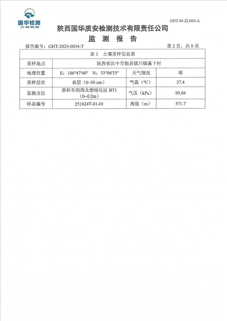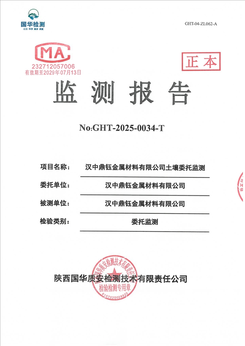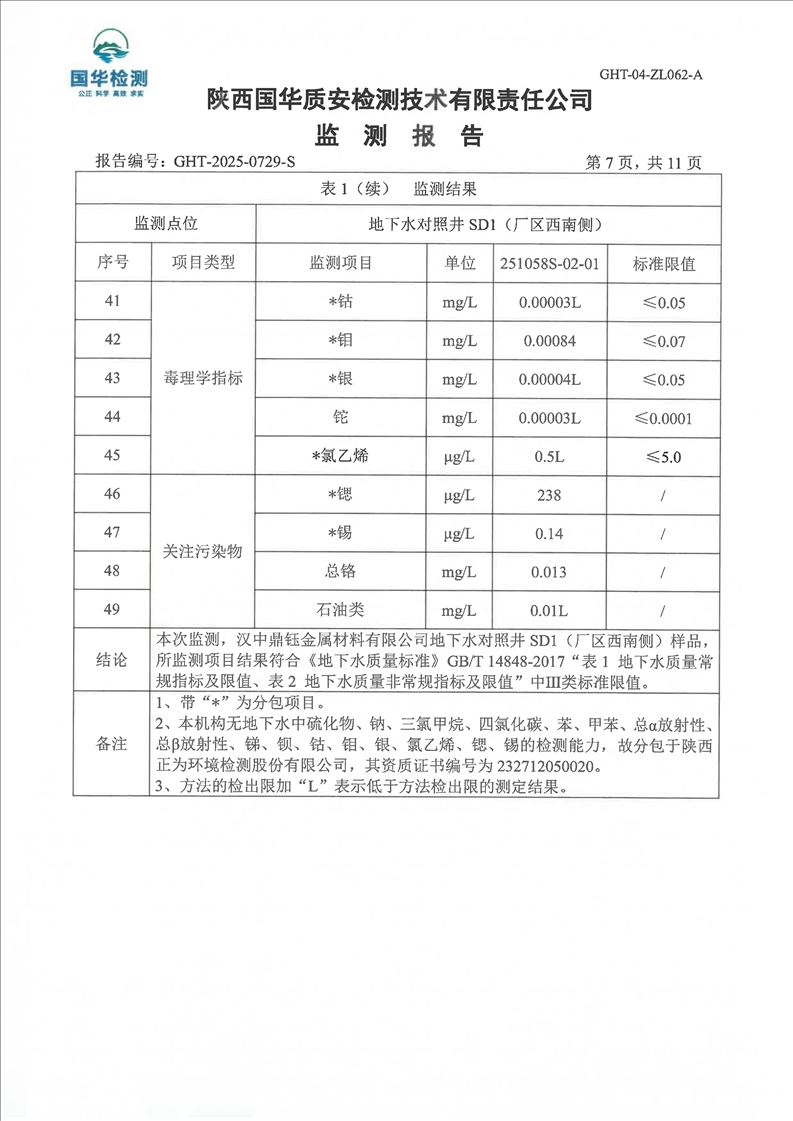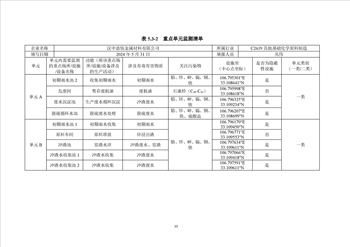 汉中鼎钰金属材料有限公司2025年度地下水和土壤自行监测报告(2025年)