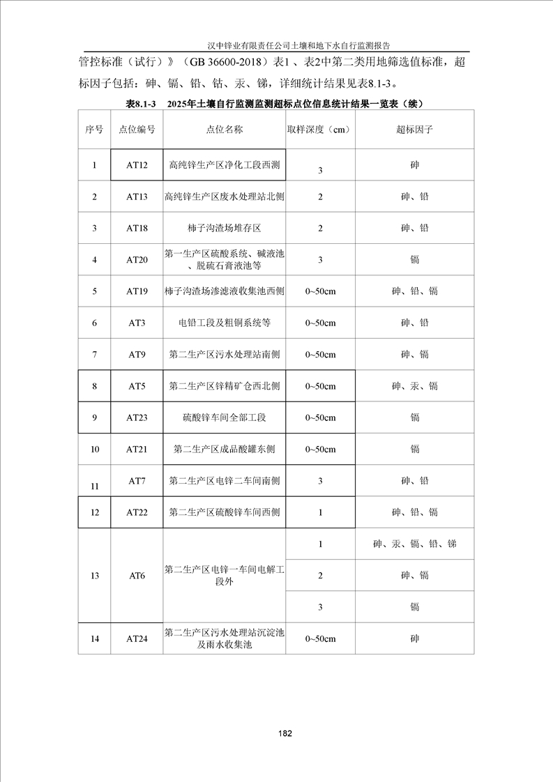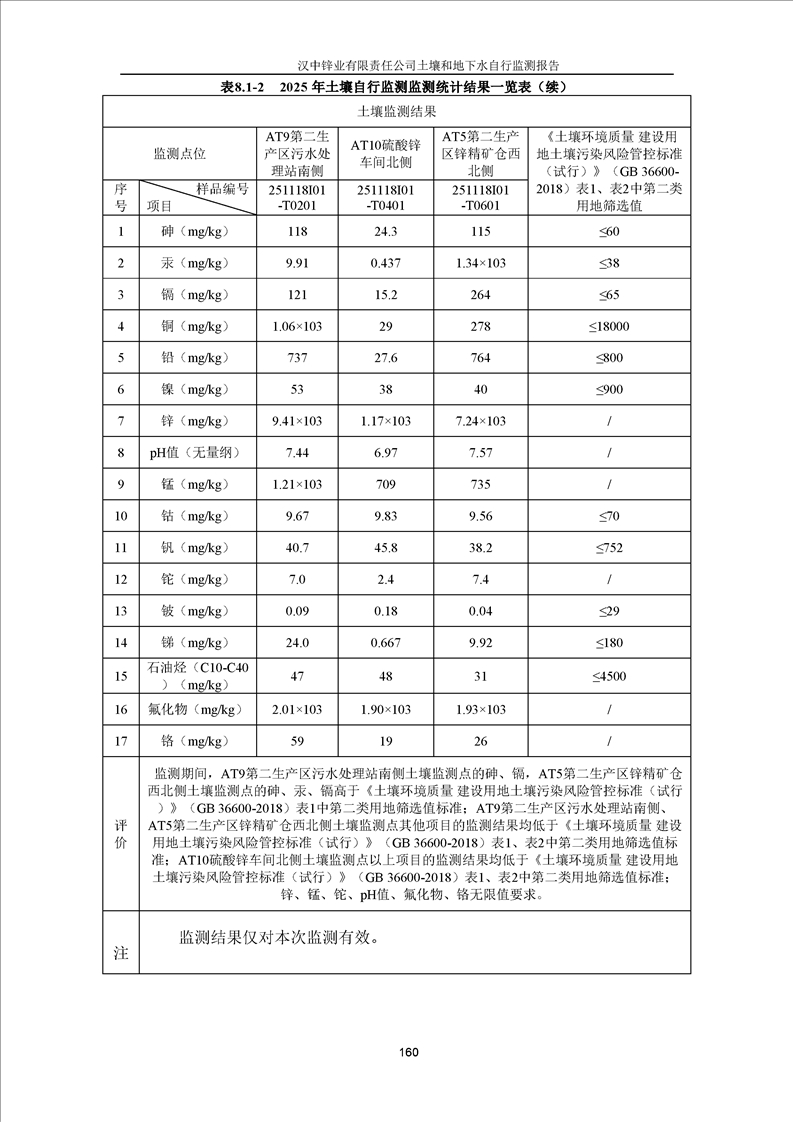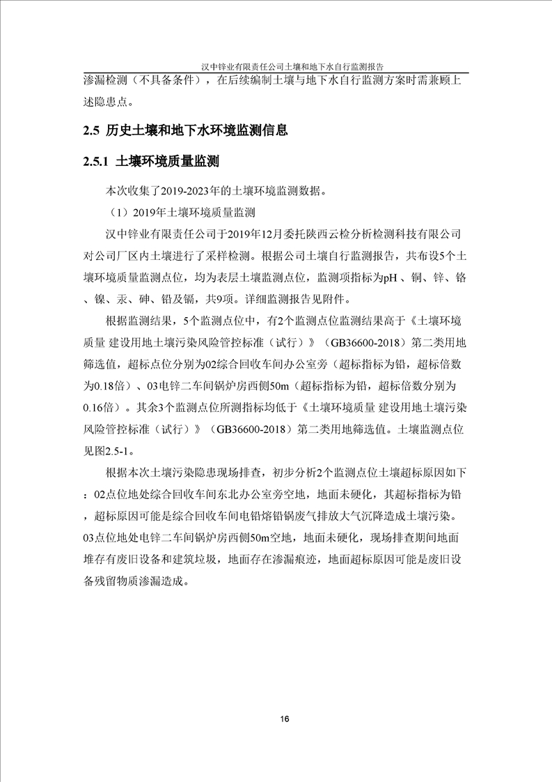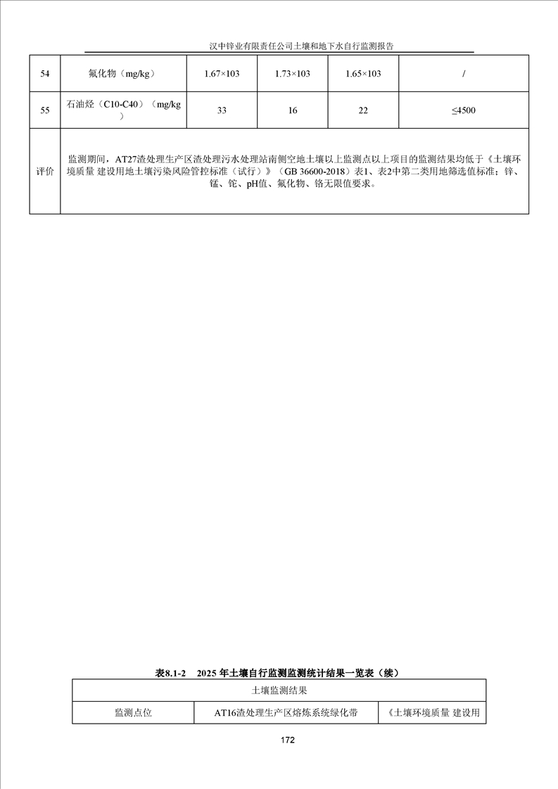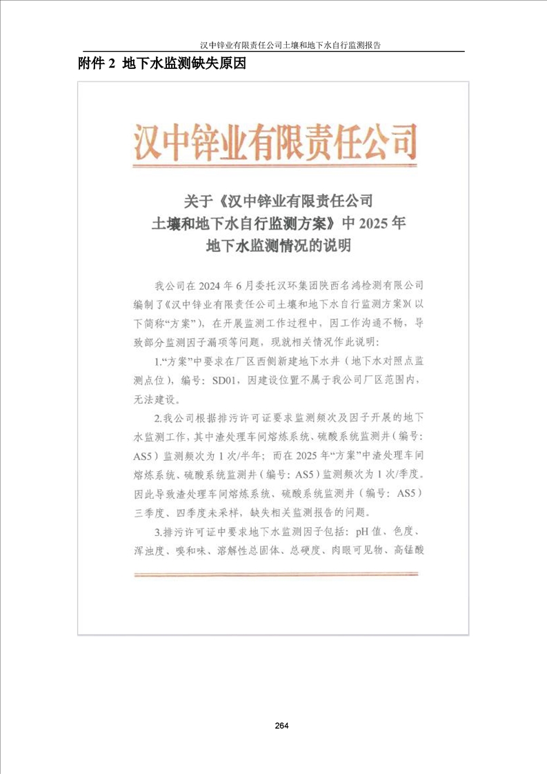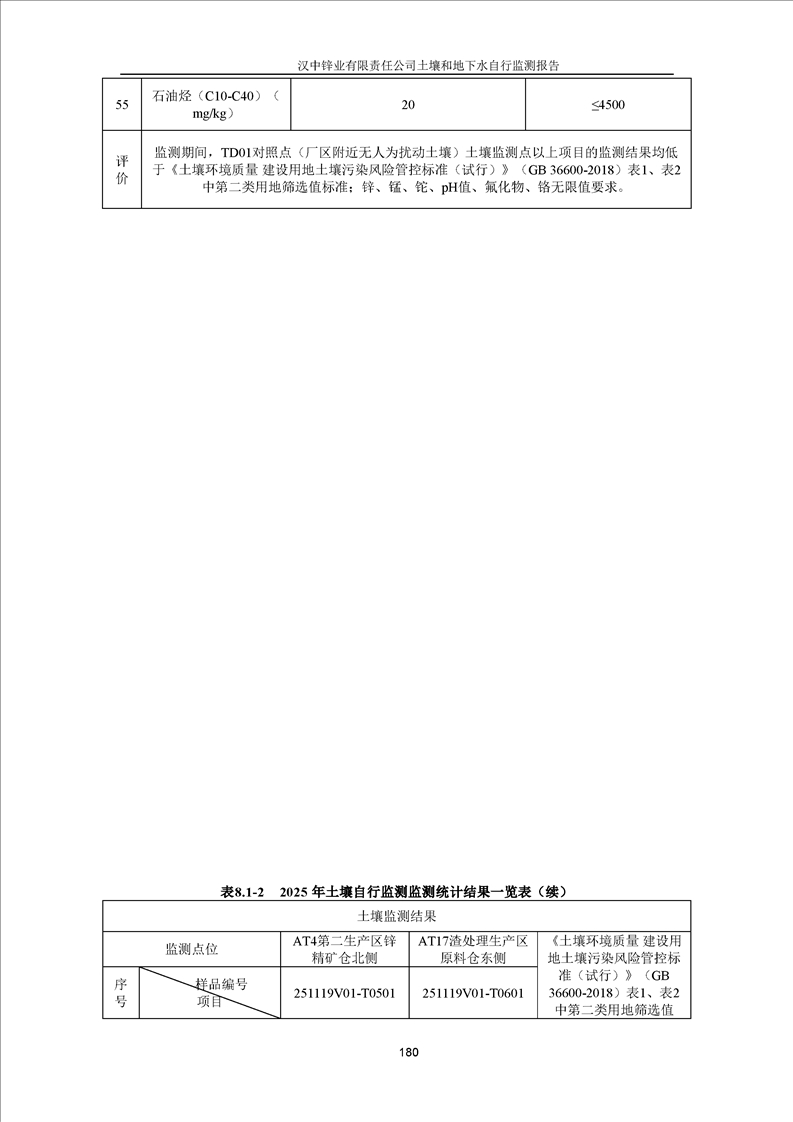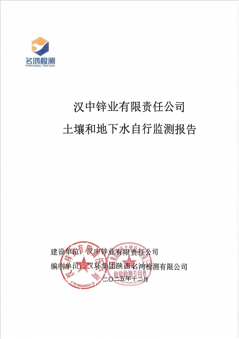 汉中锌业有限责任公司土壤和地下水自行监测报告(2025年)