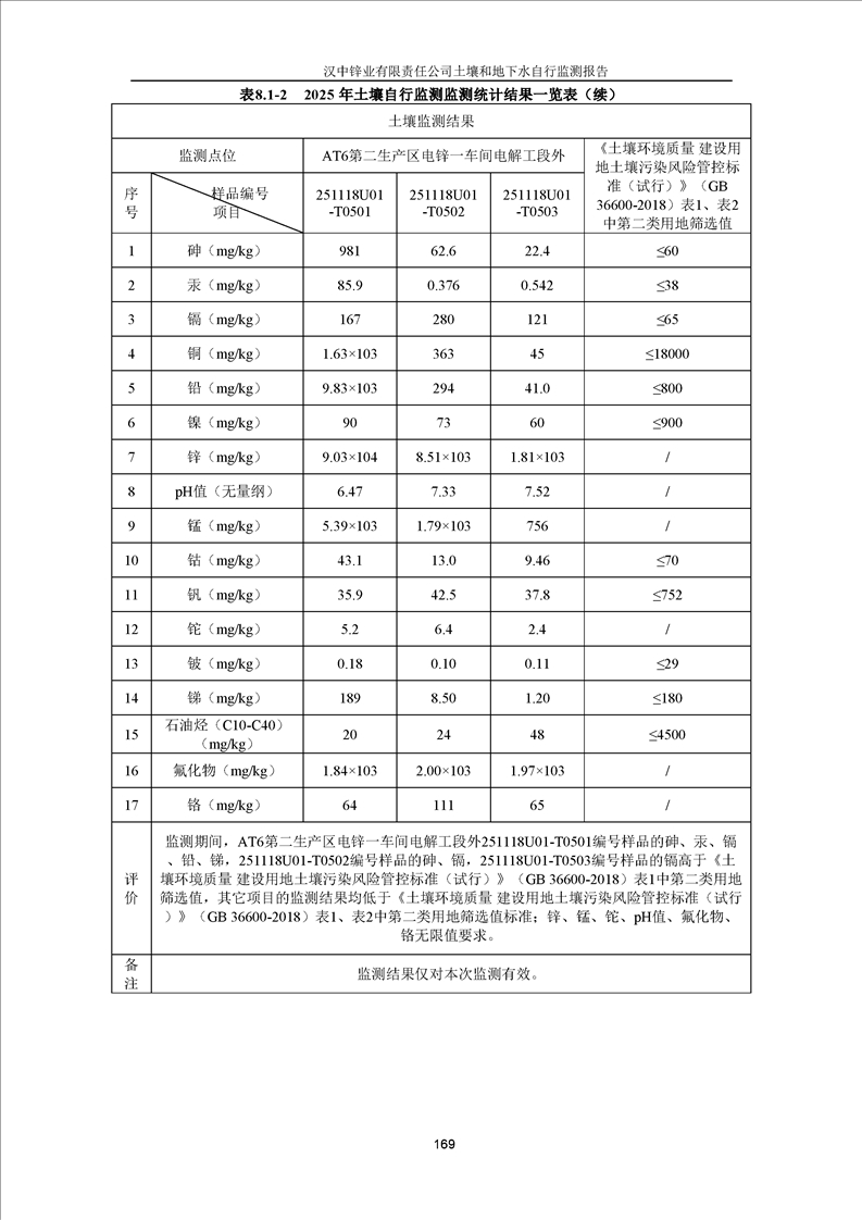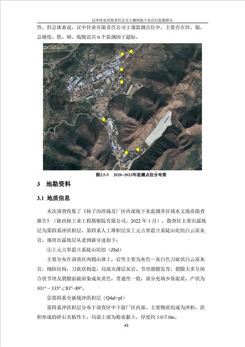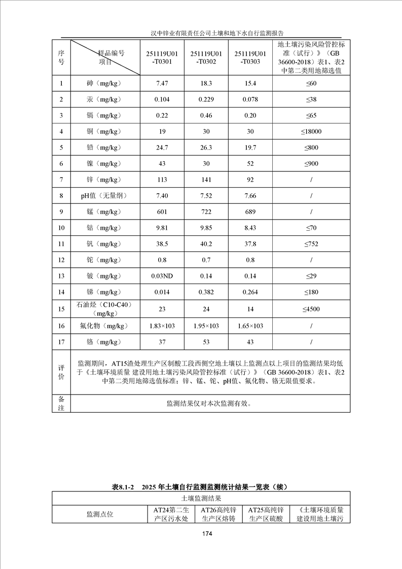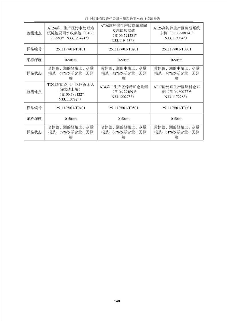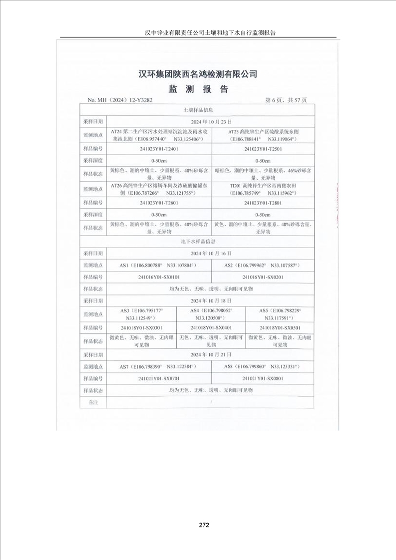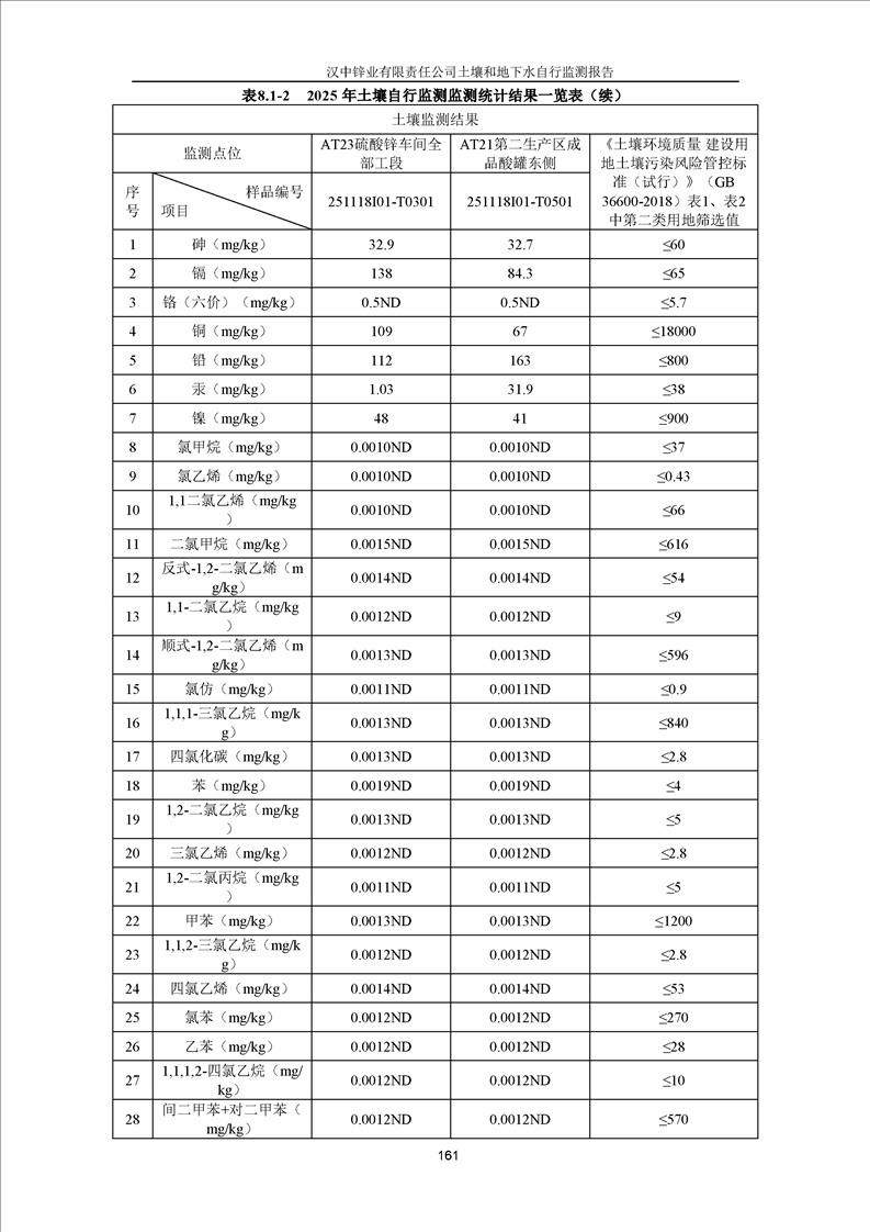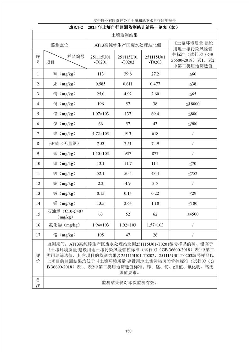 汉中锌业有限责任公司土壤和地下水自行监测报告(2025年)