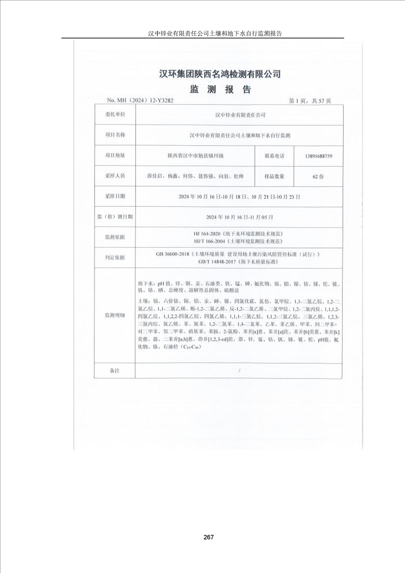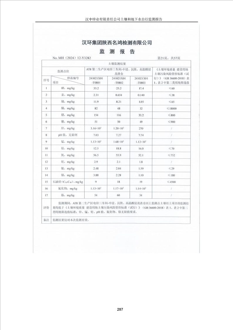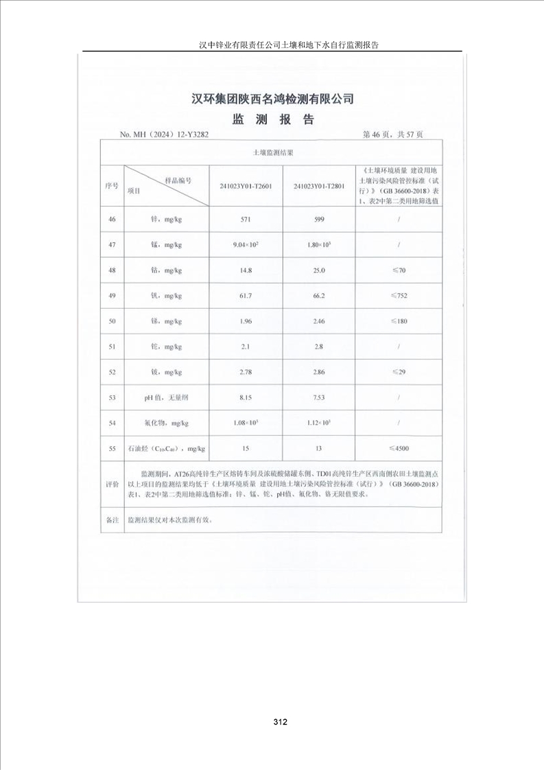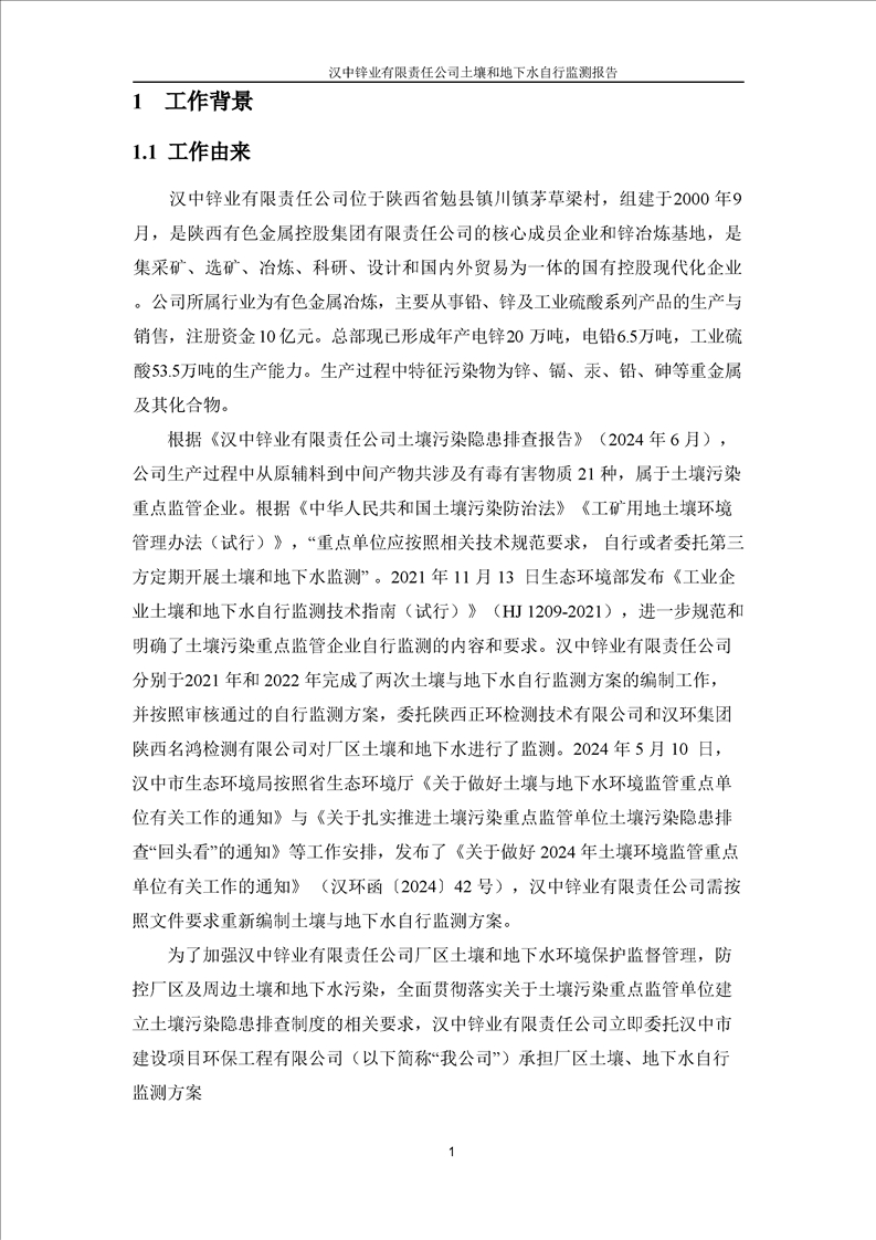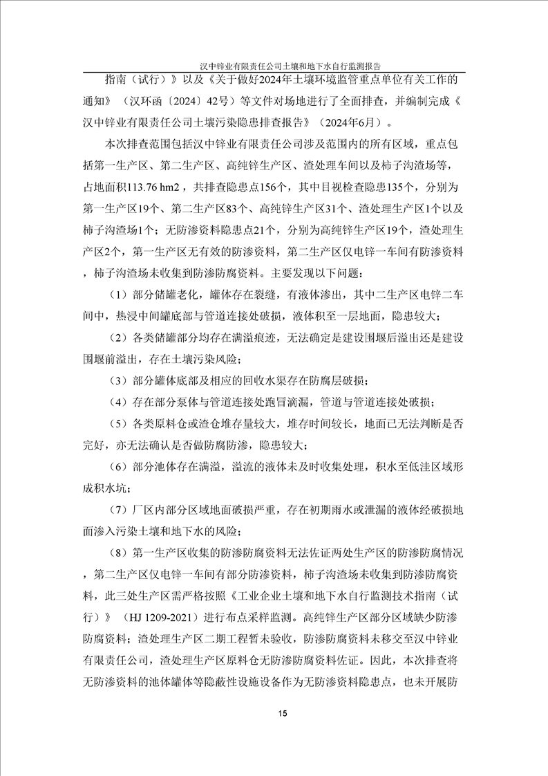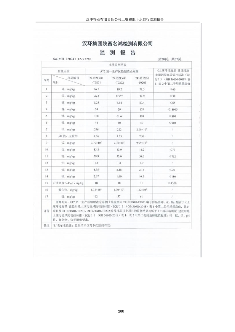 汉中锌业有限责任公司土壤和地下水自行监测报告(2025年)