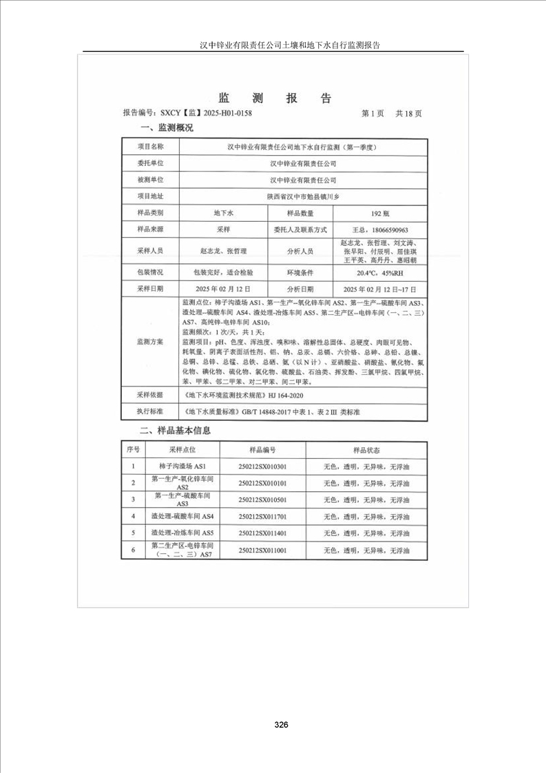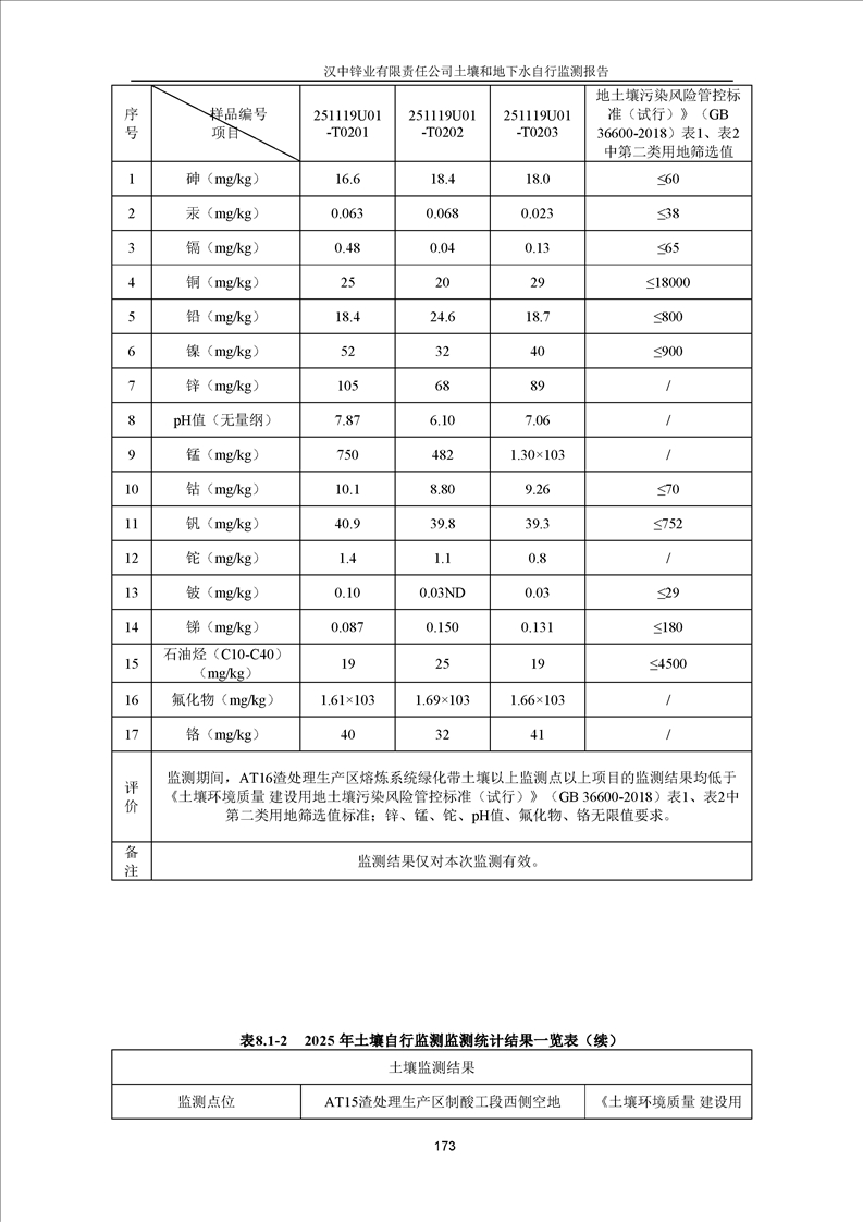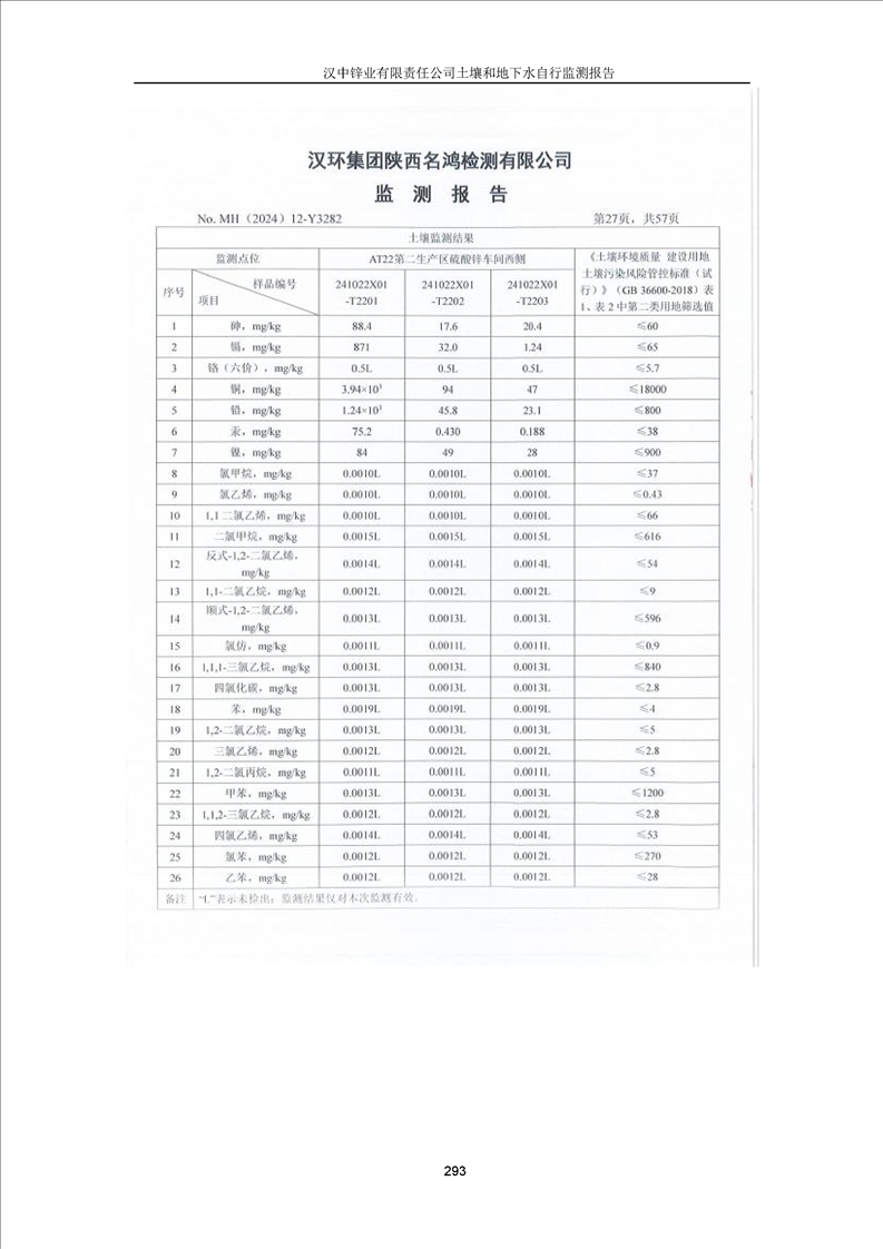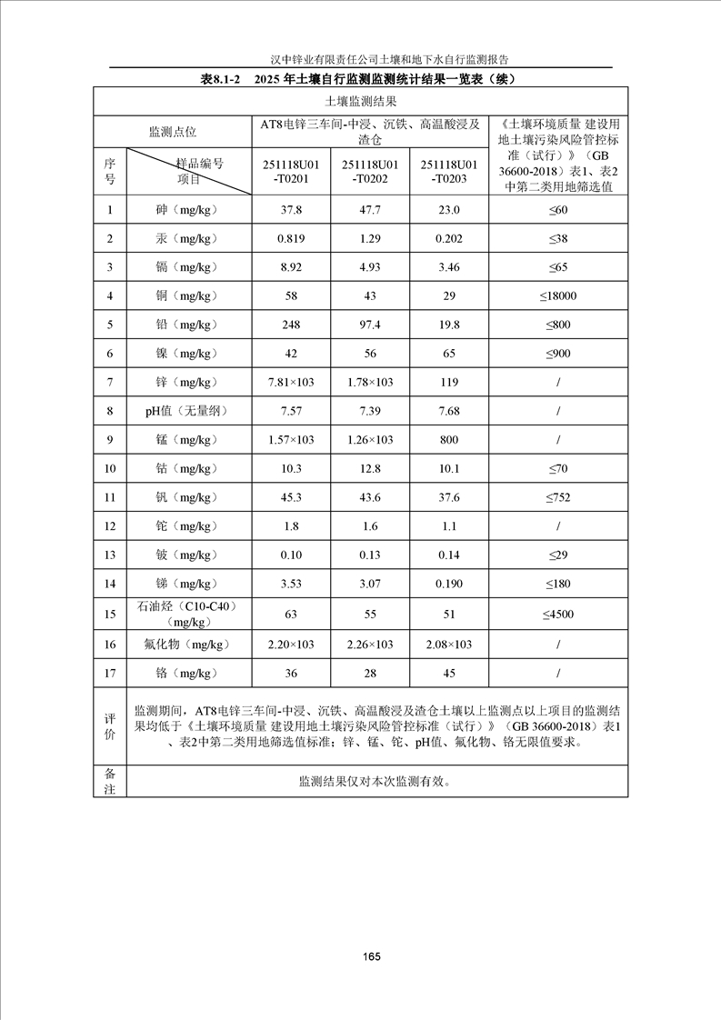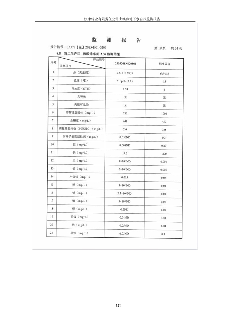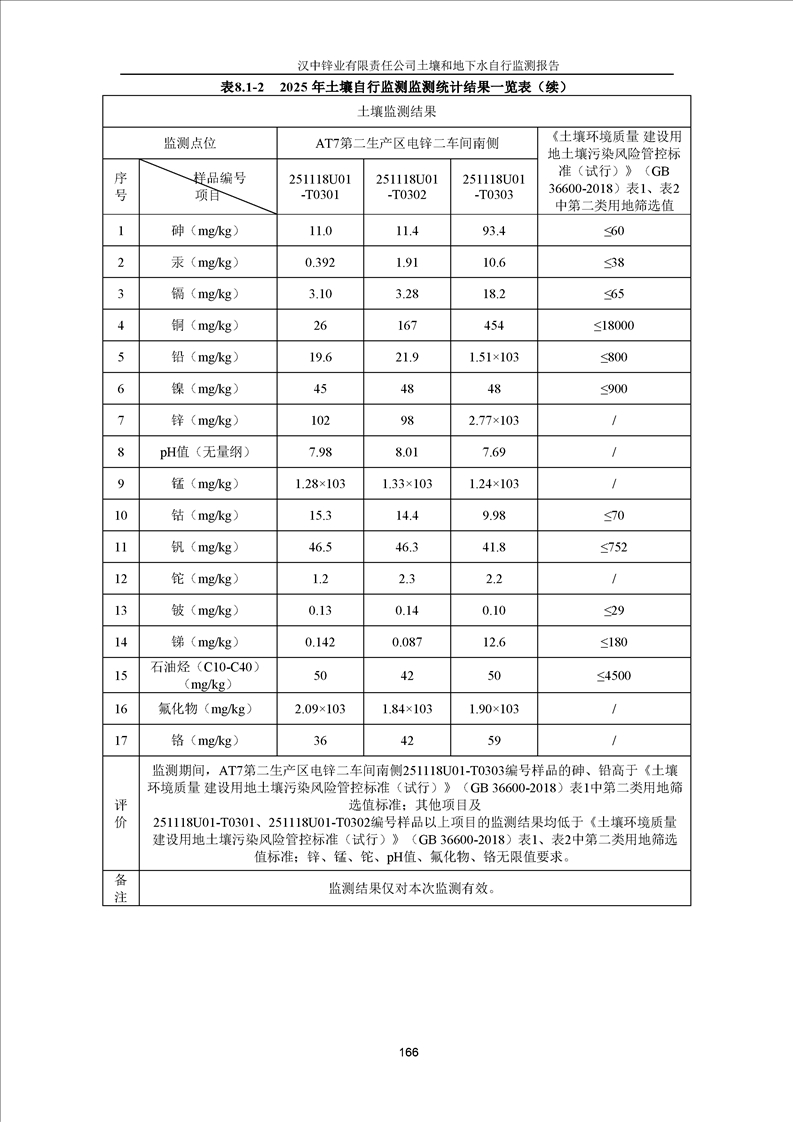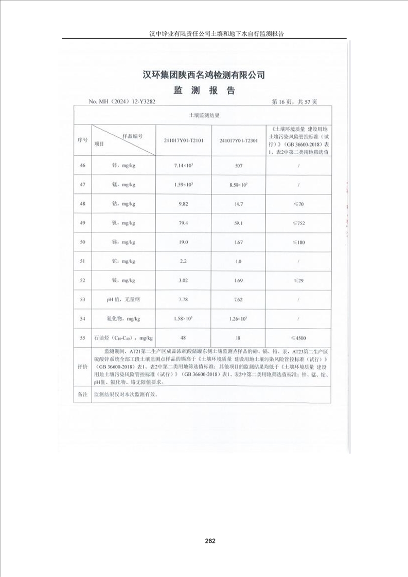汉中锌业有限责任公司土壤和地下水自行监测报告(2025年)