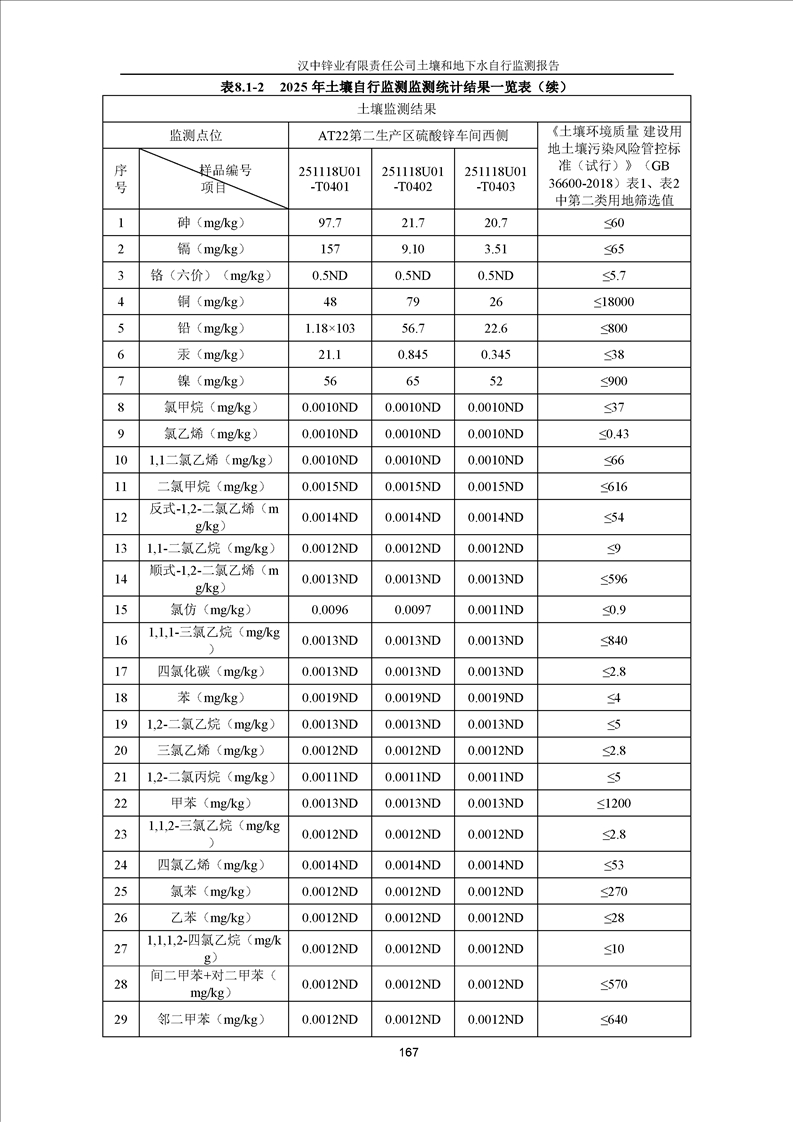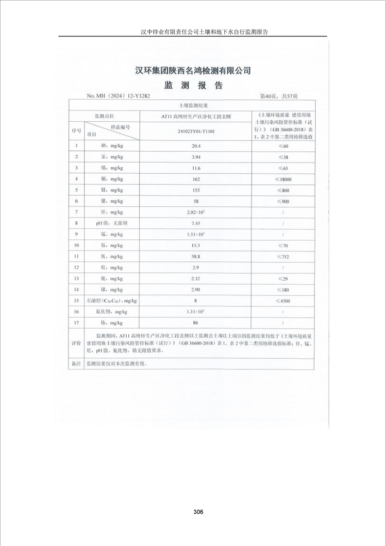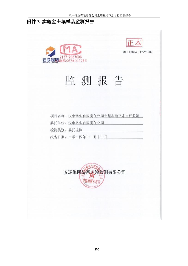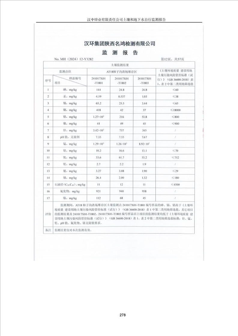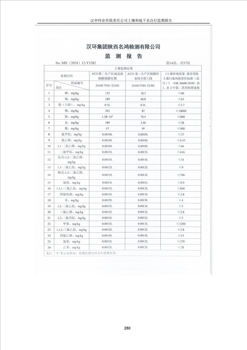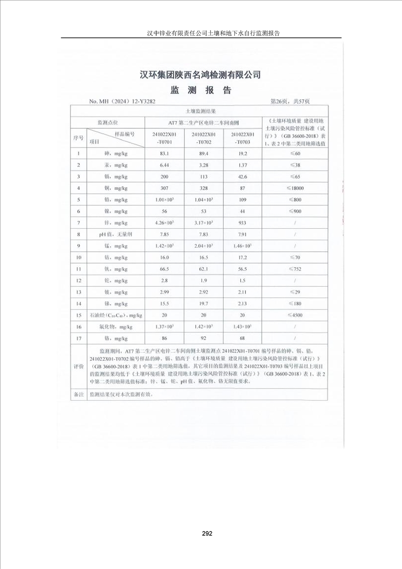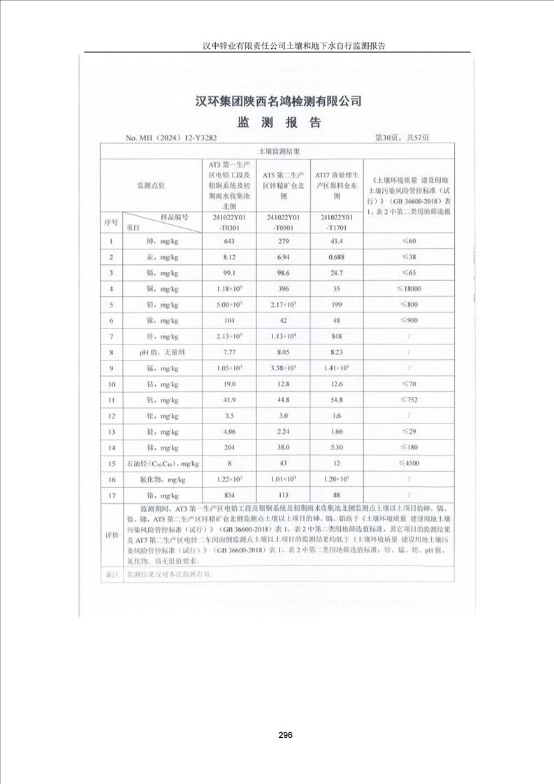 汉中锌业有限责任公司土壤和地下水自行监测报告(2025年)