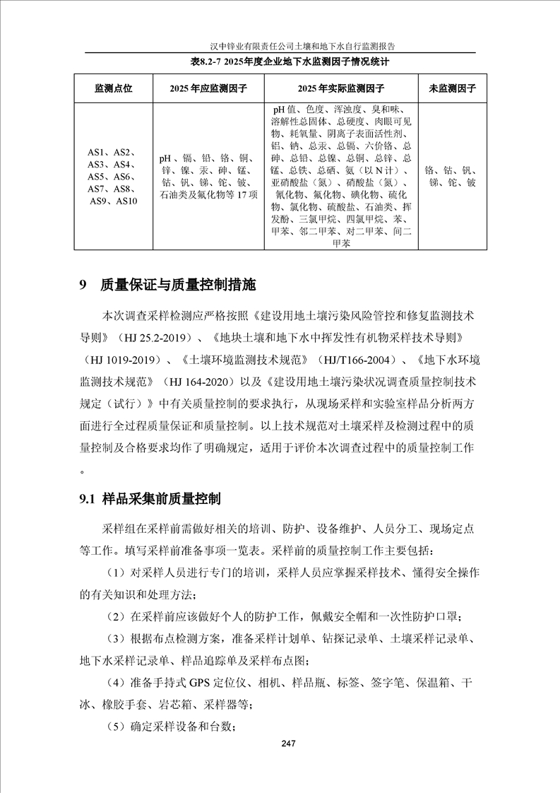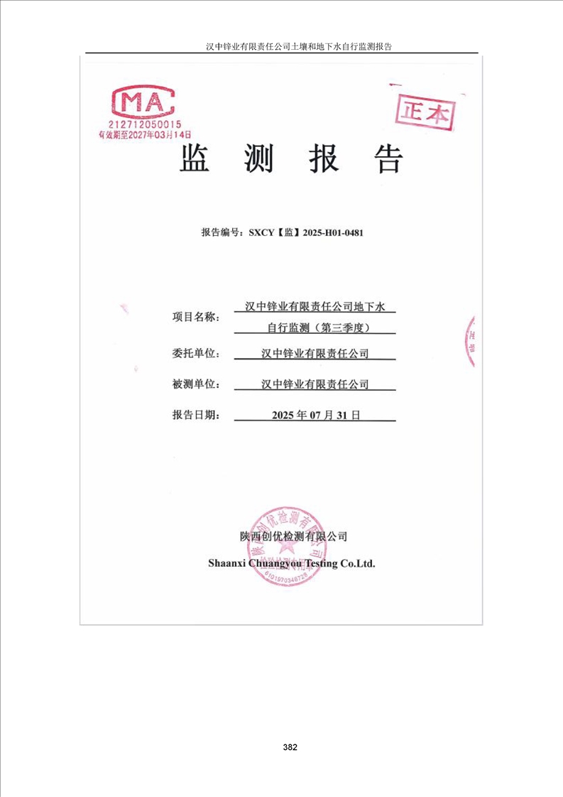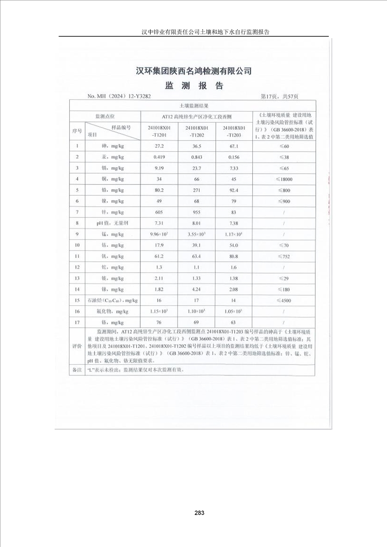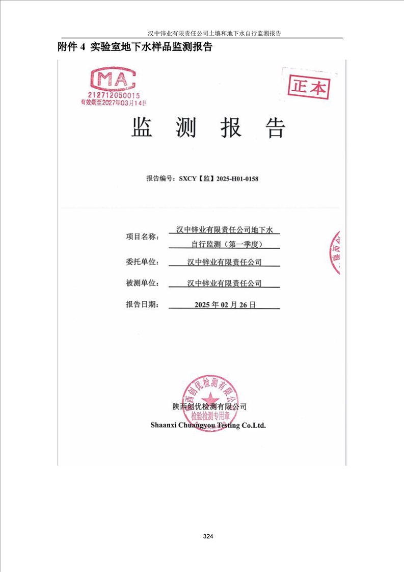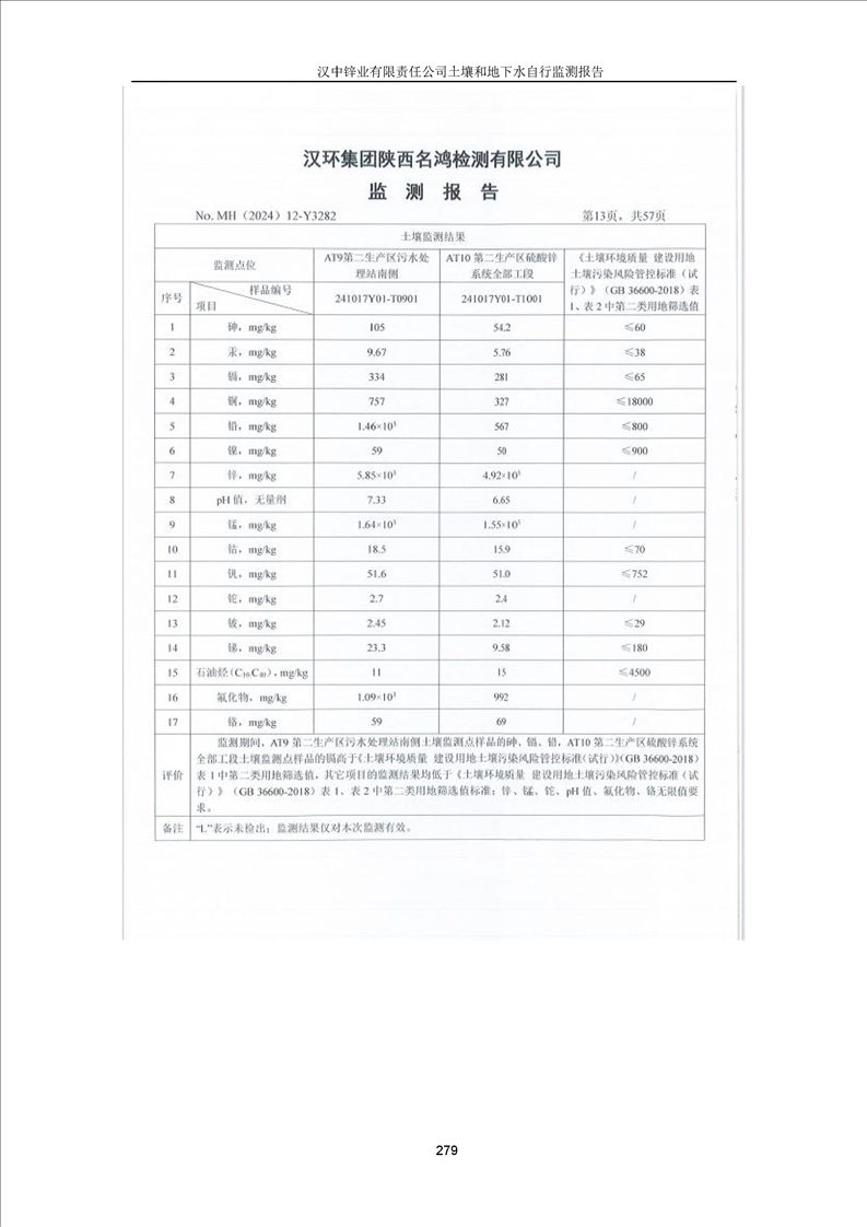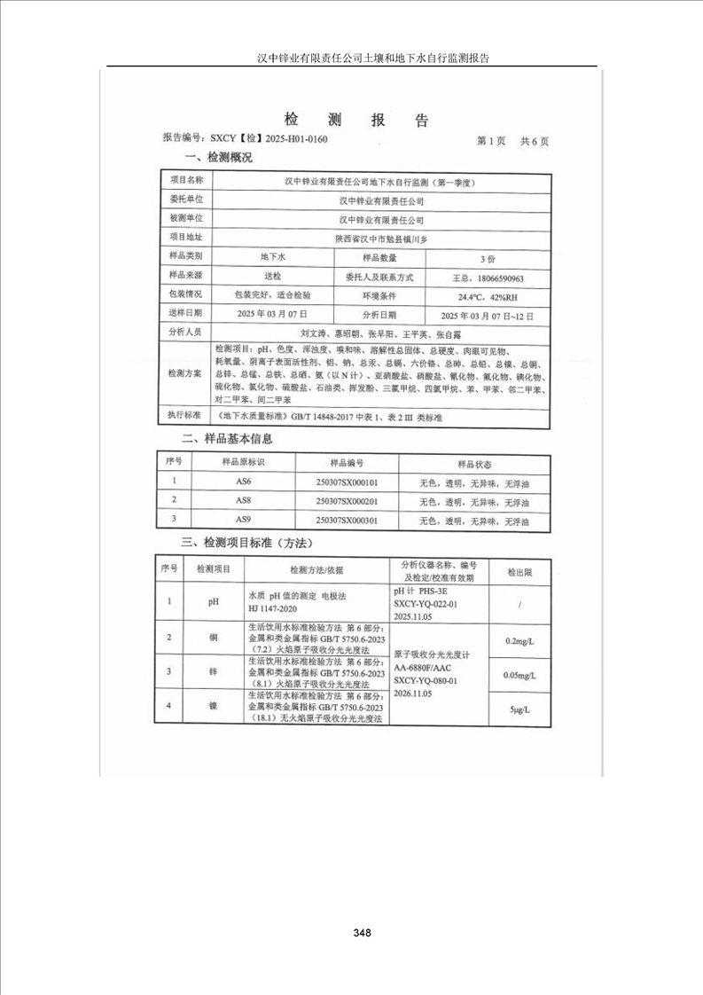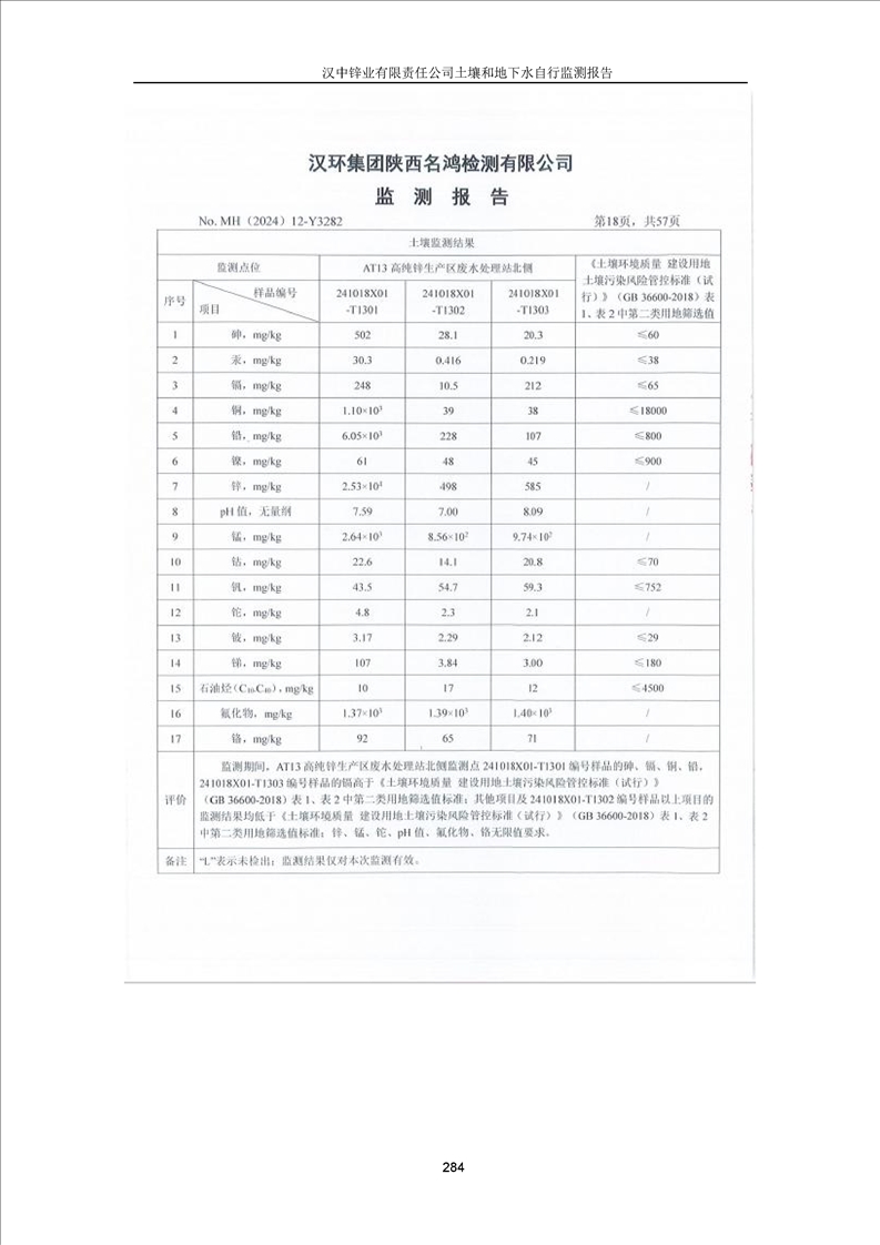 汉中锌业有限责任公司土壤和地下水自行监测报告(2025年)