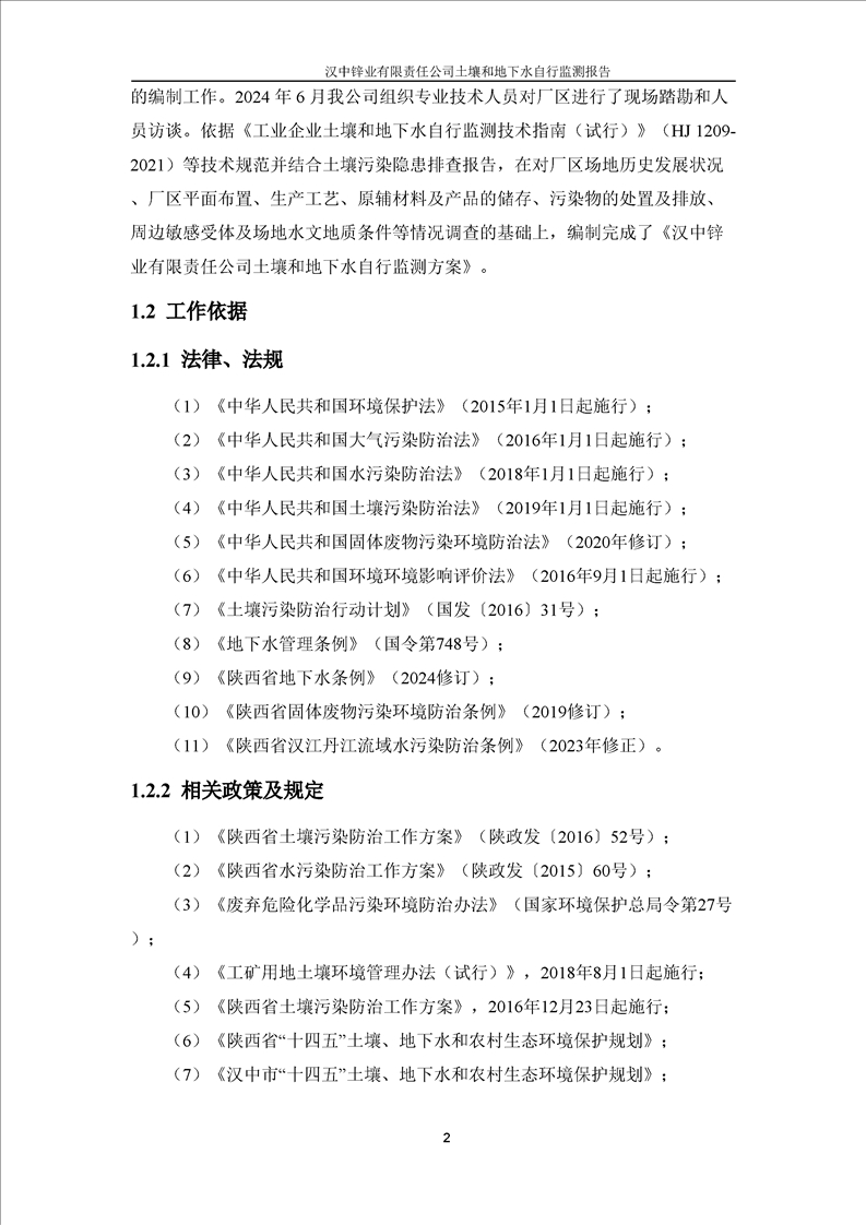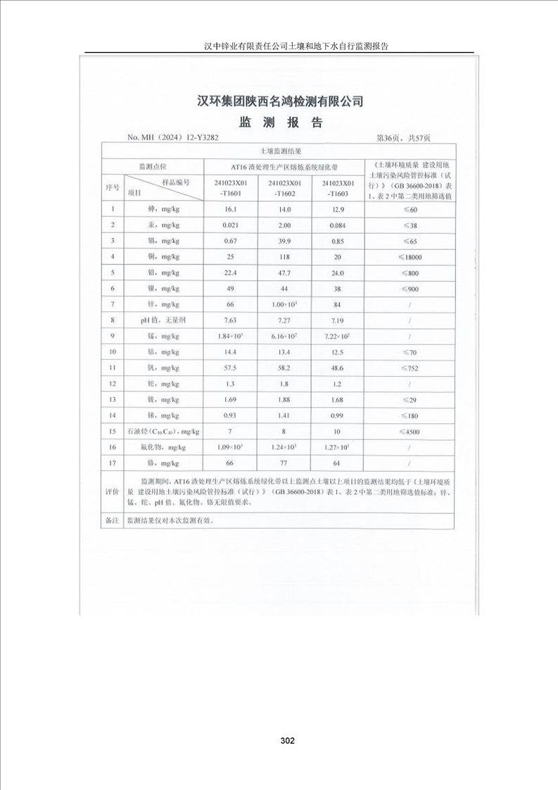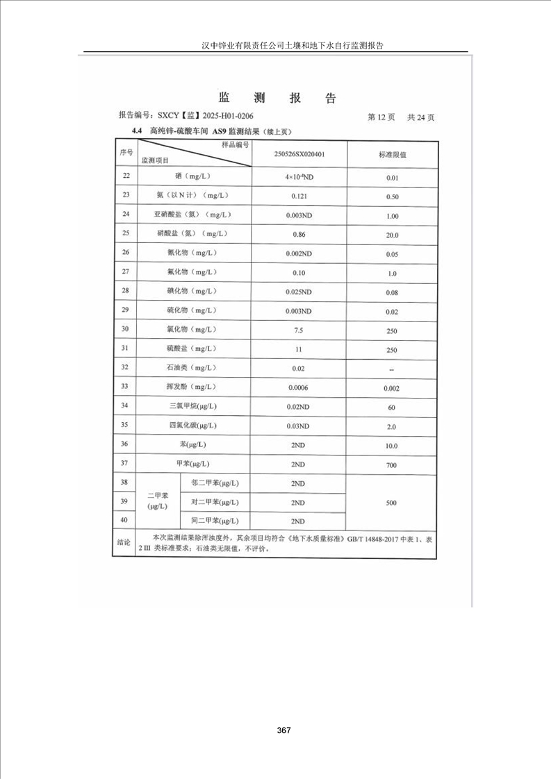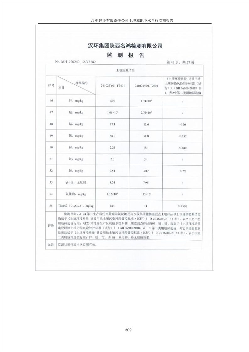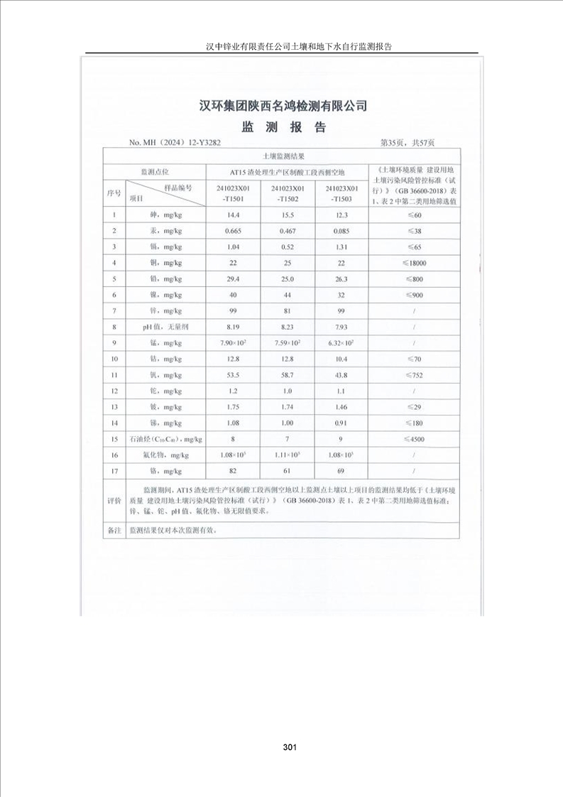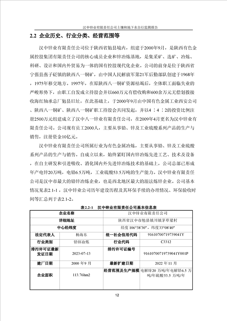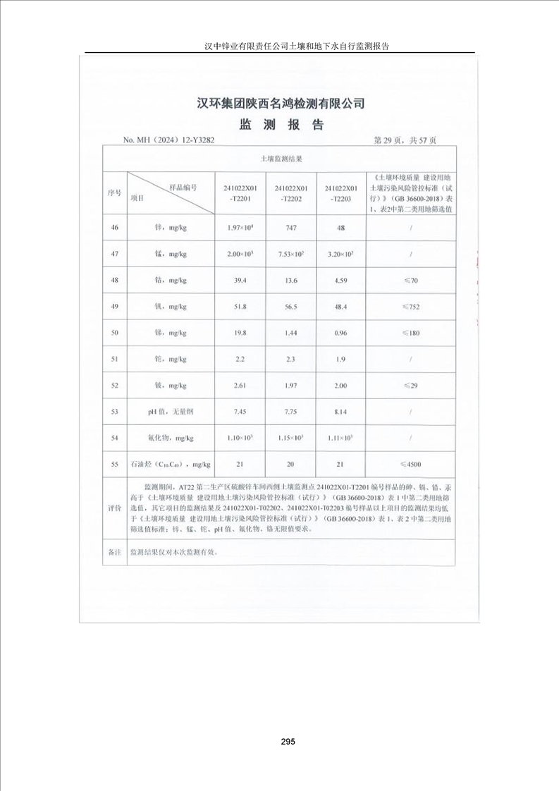 汉中锌业有限责任公司土壤和地下水自行监测报告(2025年)