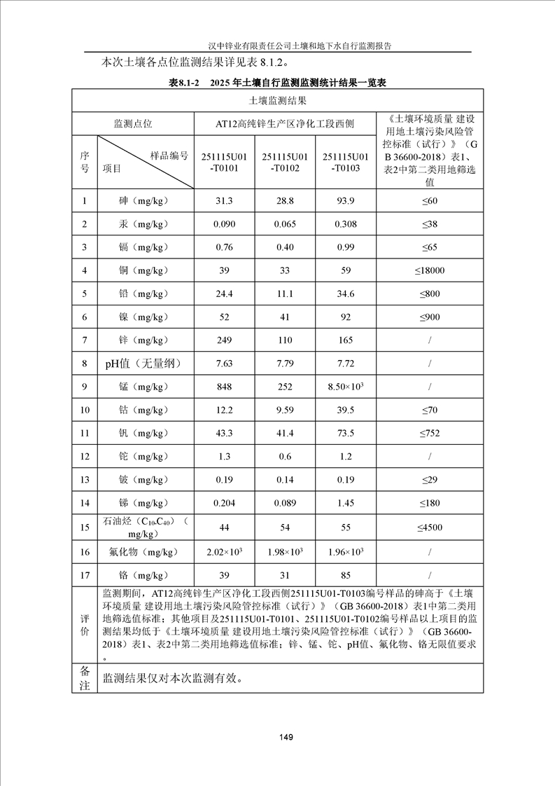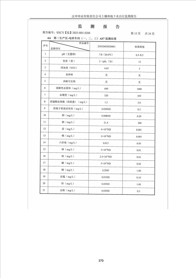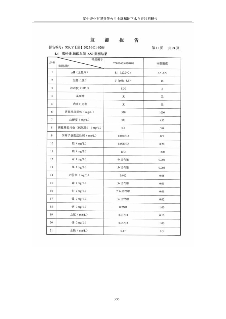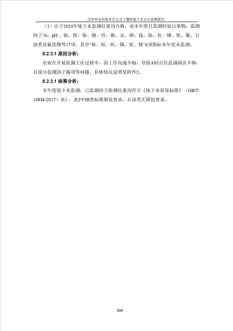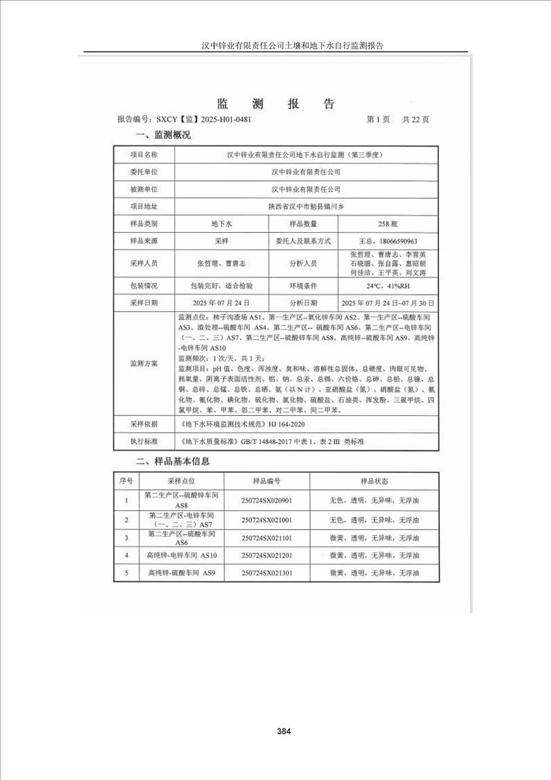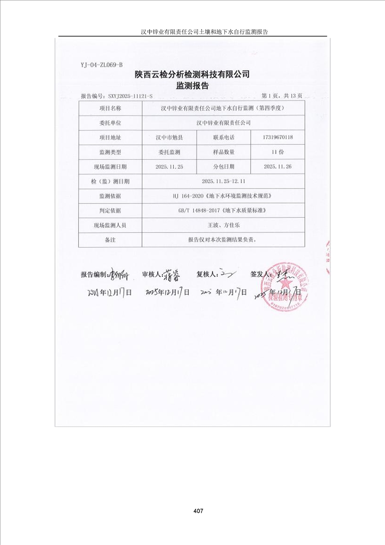 汉中锌业有限责任公司土壤和地下水自行监测报告(2025年)