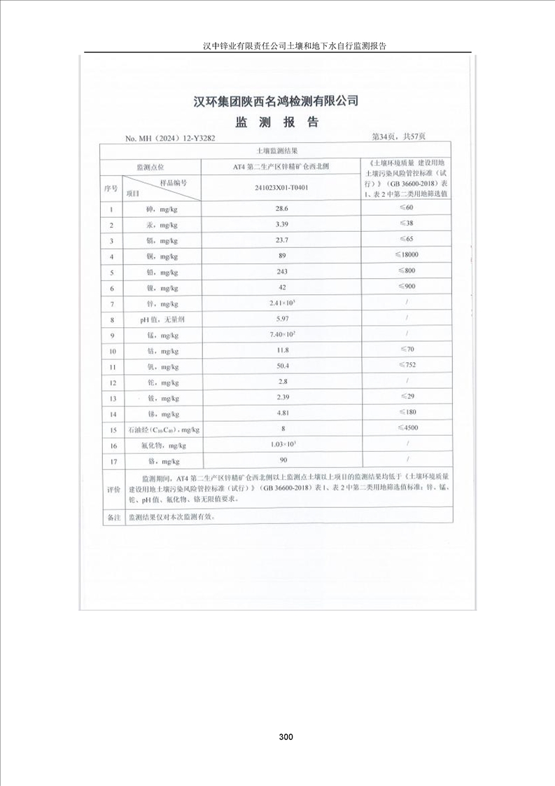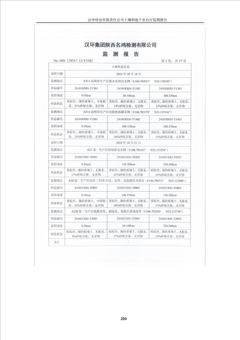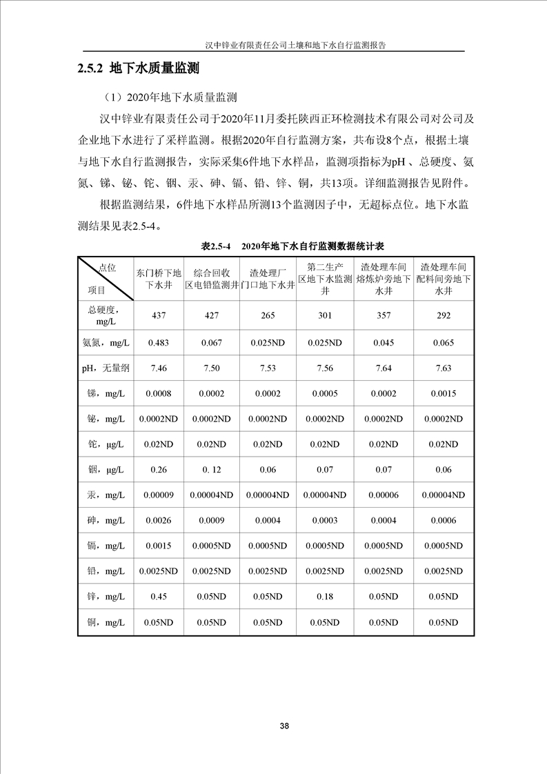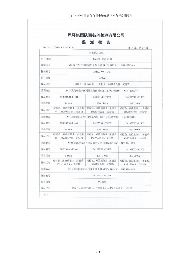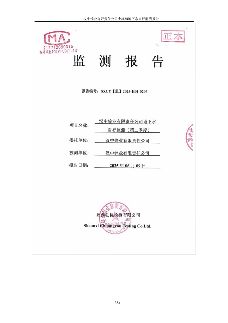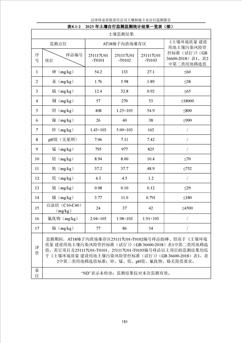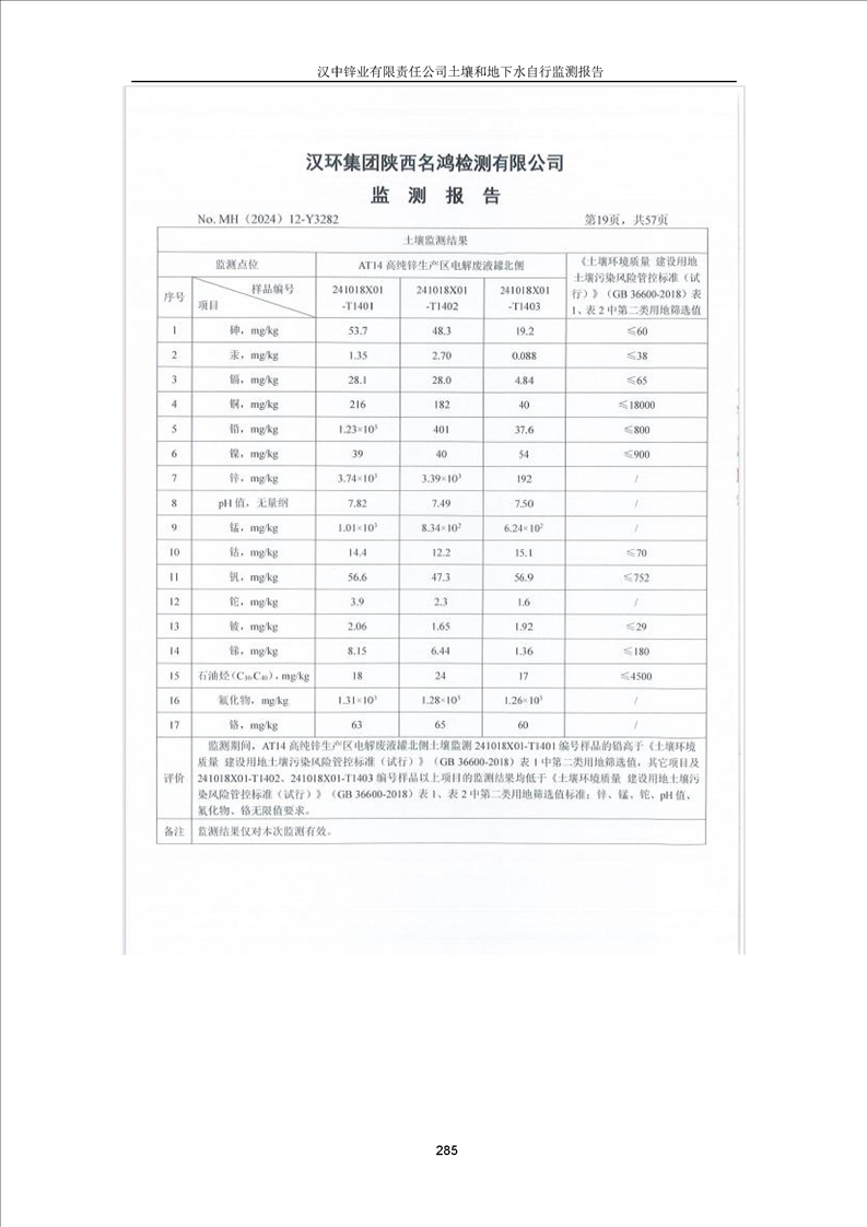 汉中锌业有限责任公司土壤和地下水自行监测报告(2025年)