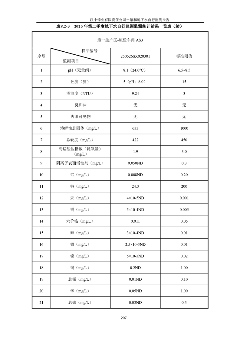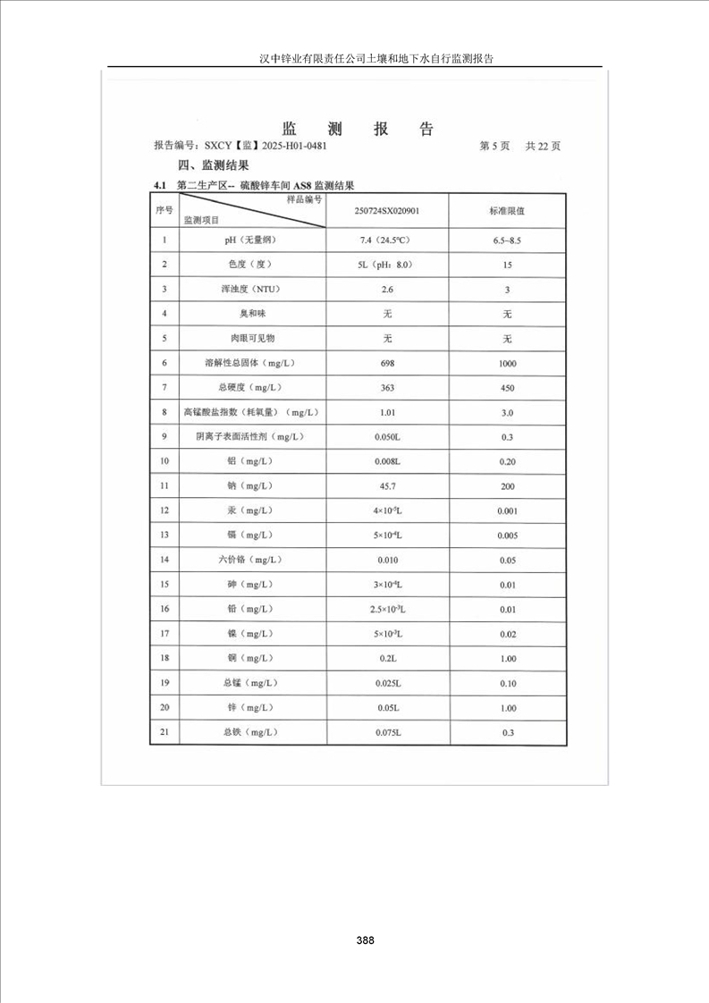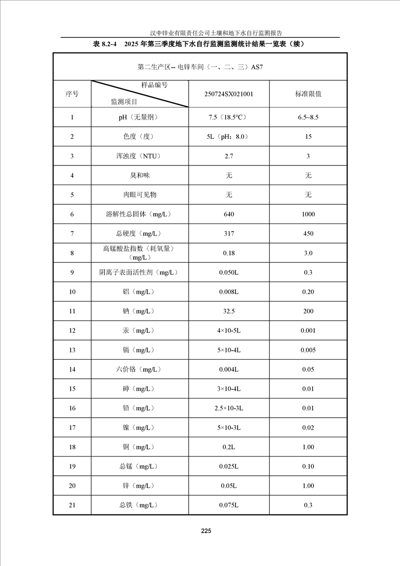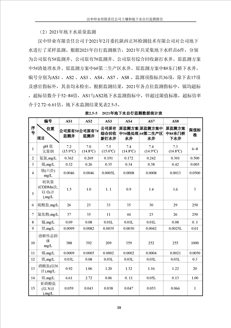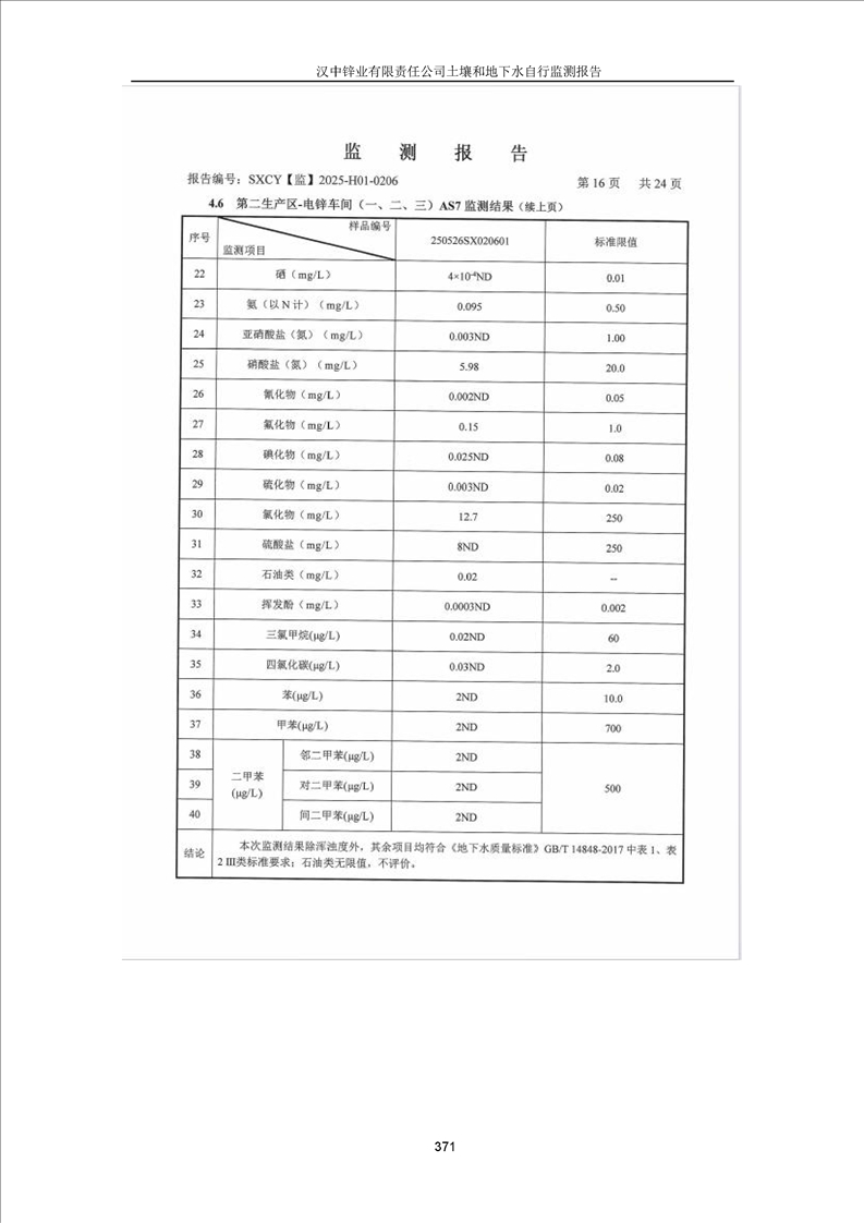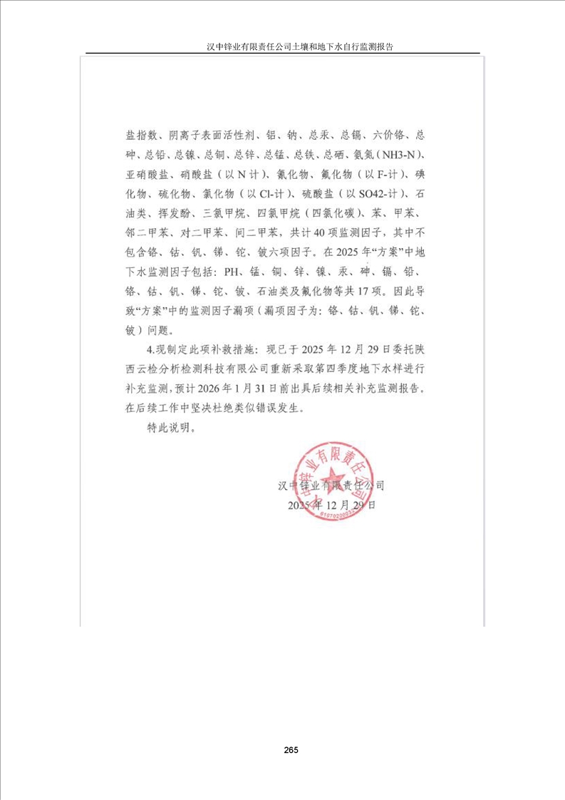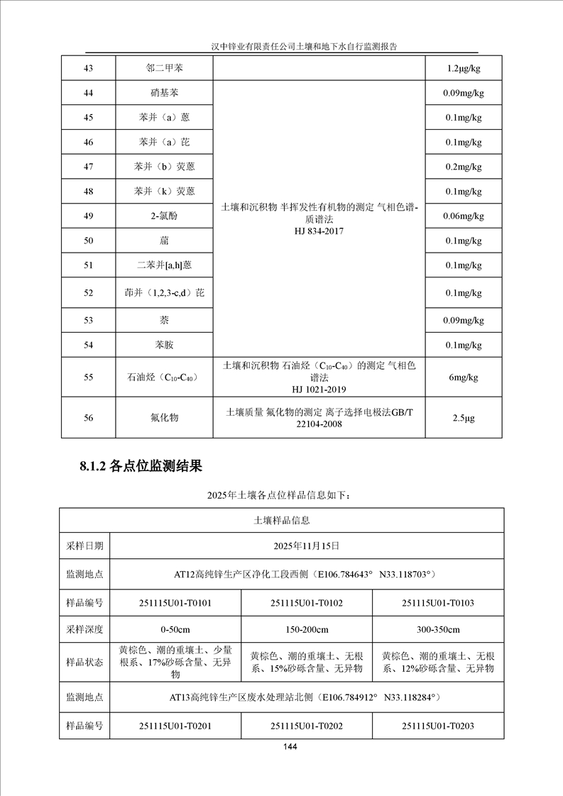 汉中锌业有限责任公司土壤和地下水自行监测报告(2025年)