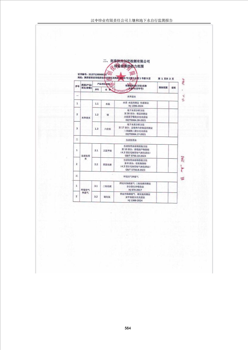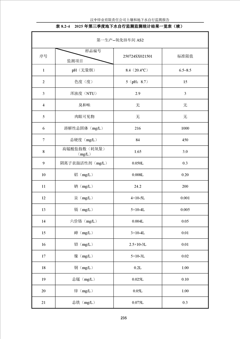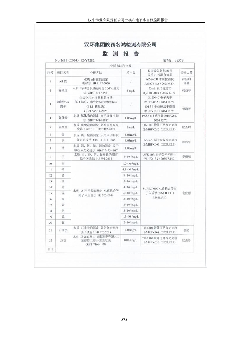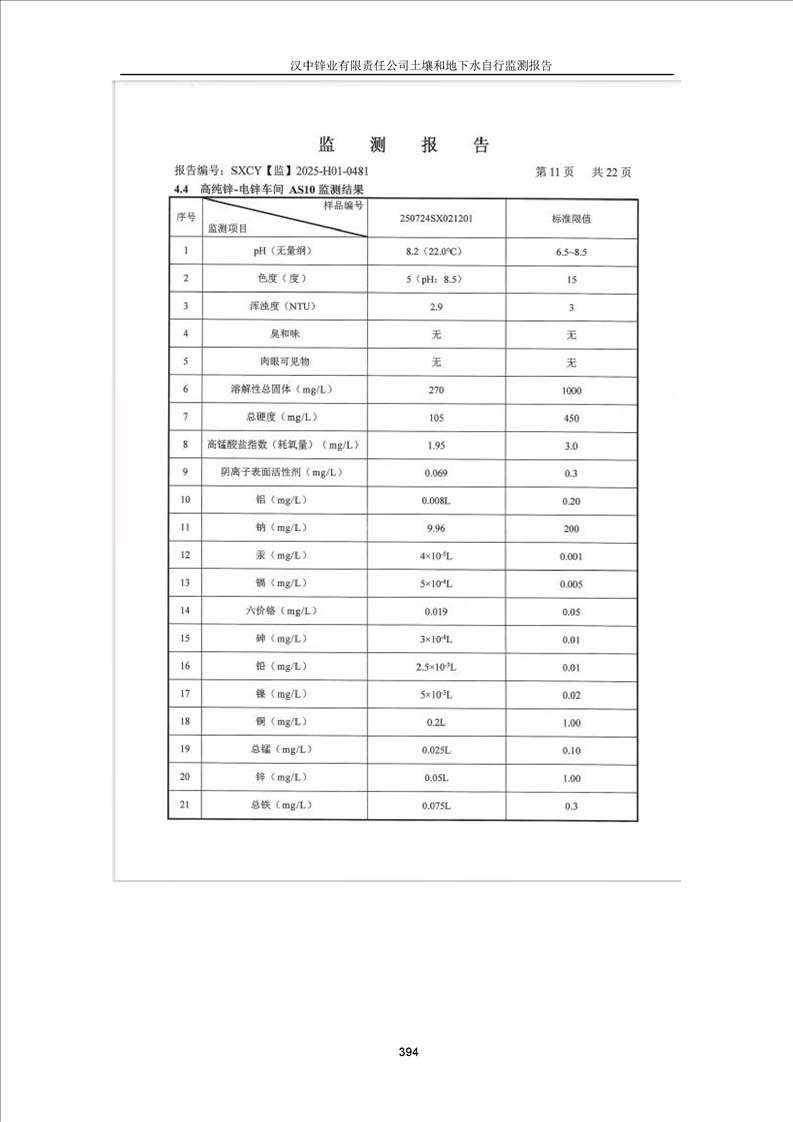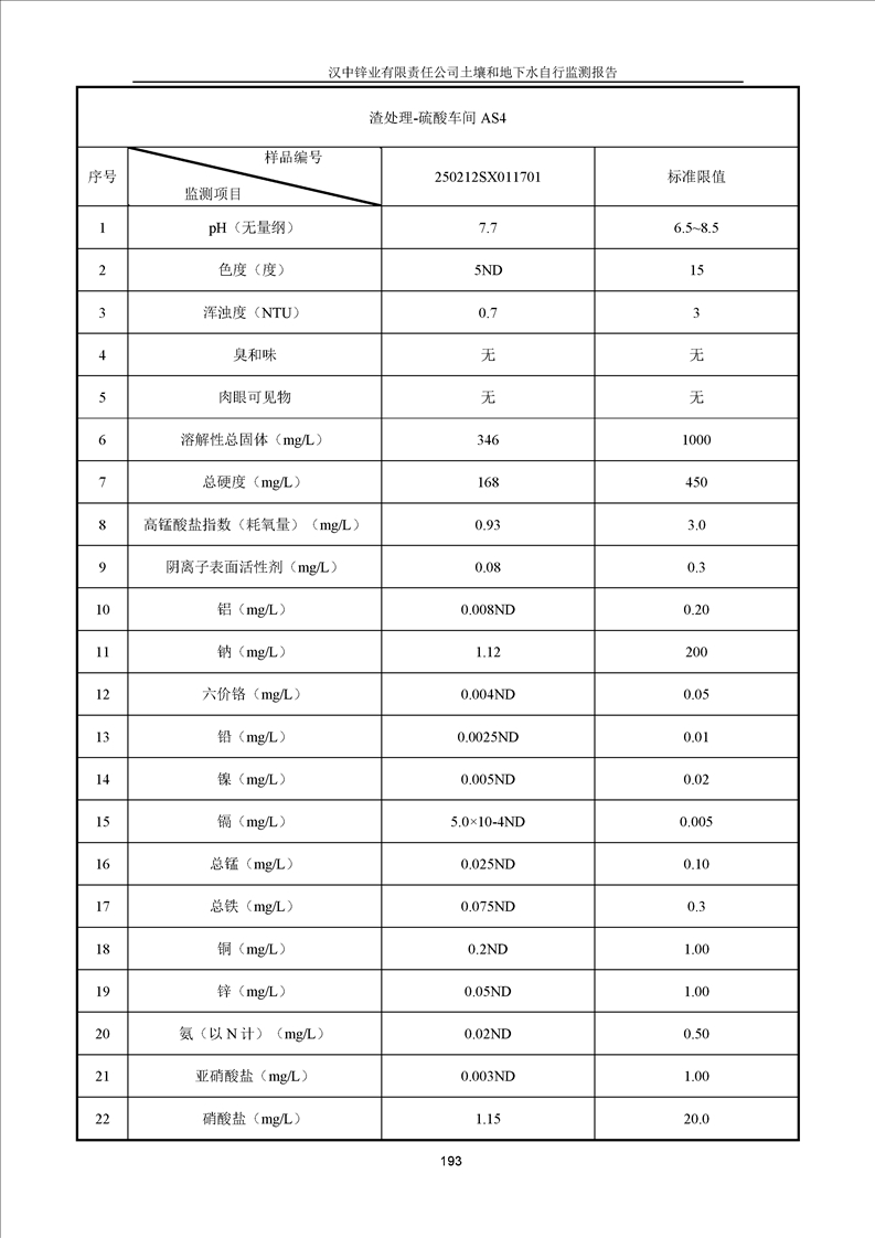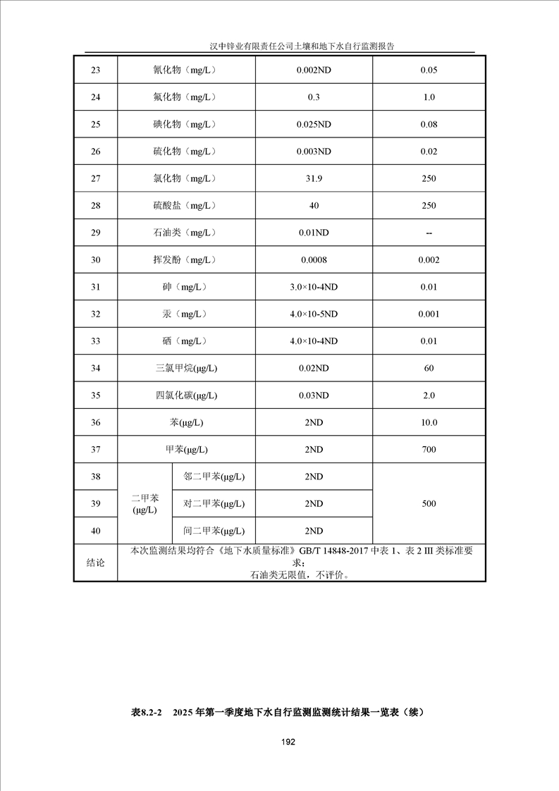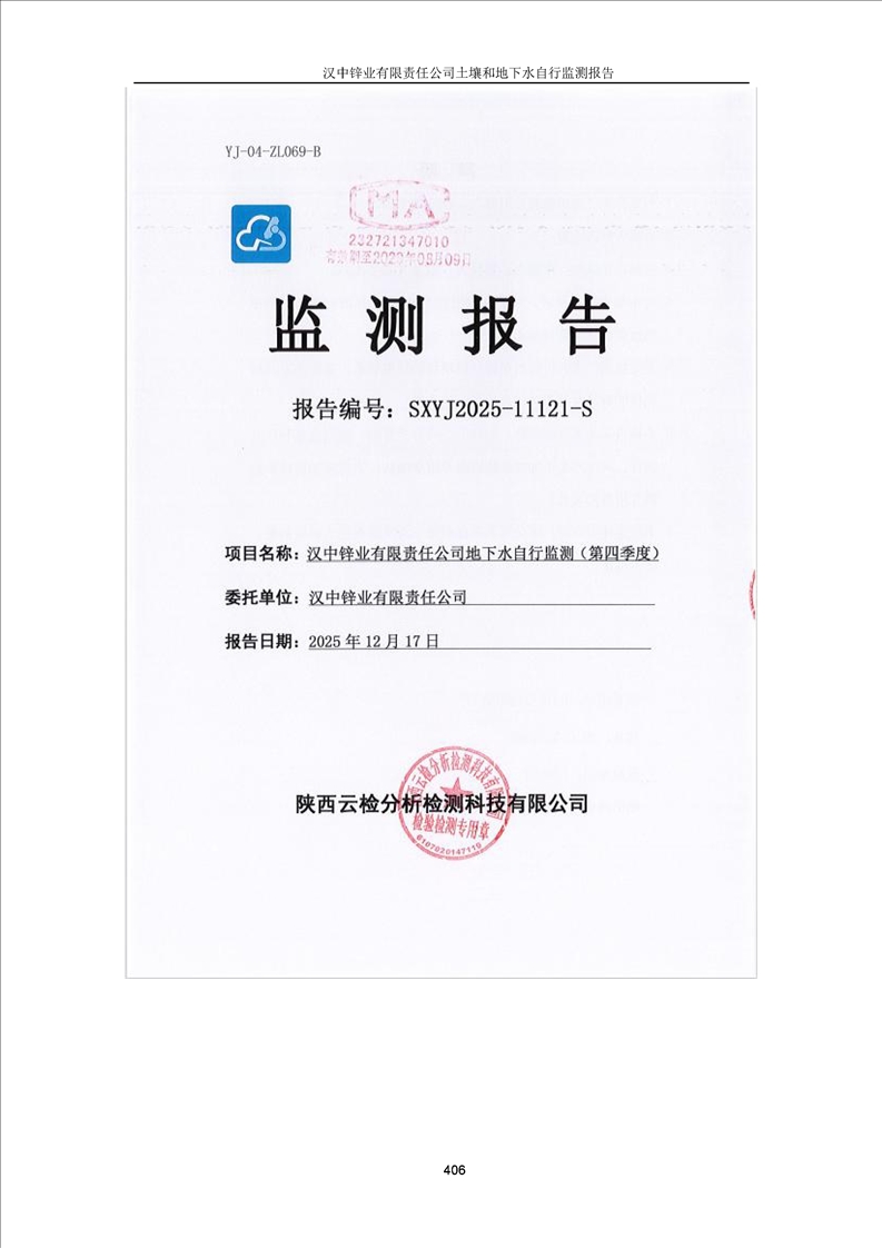 汉中锌业有限责任公司土壤和地下水自行监测报告(2025年)