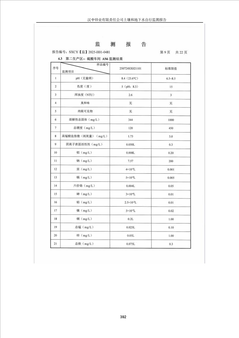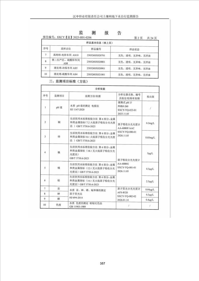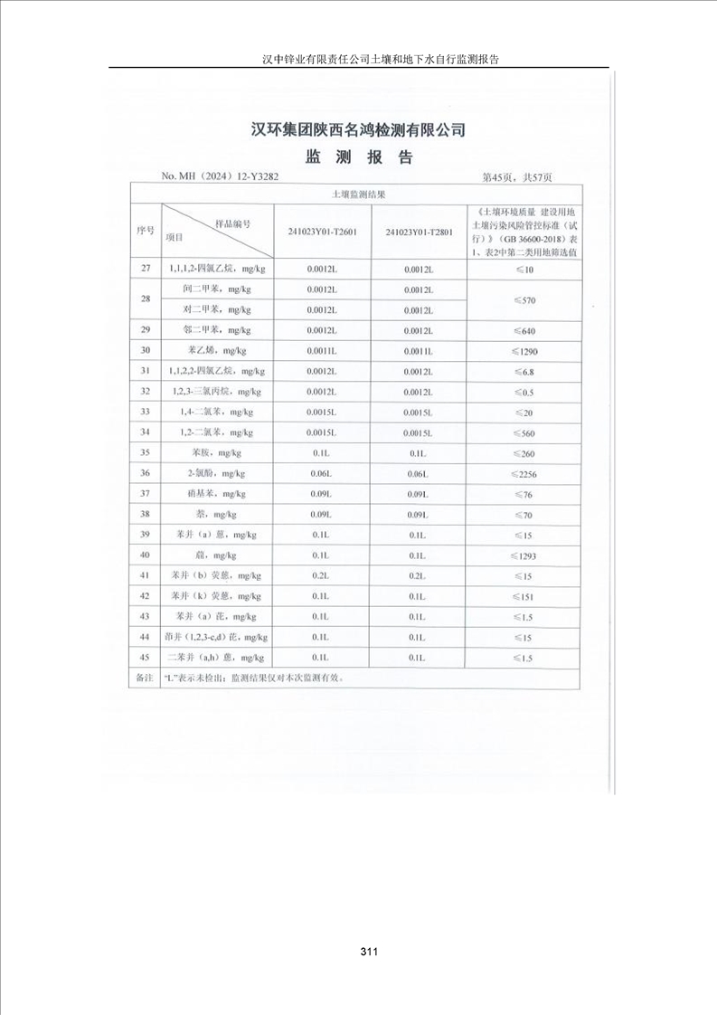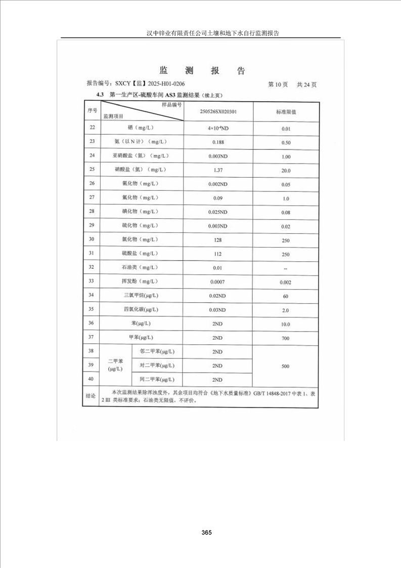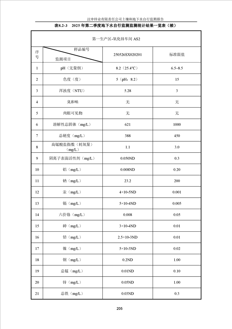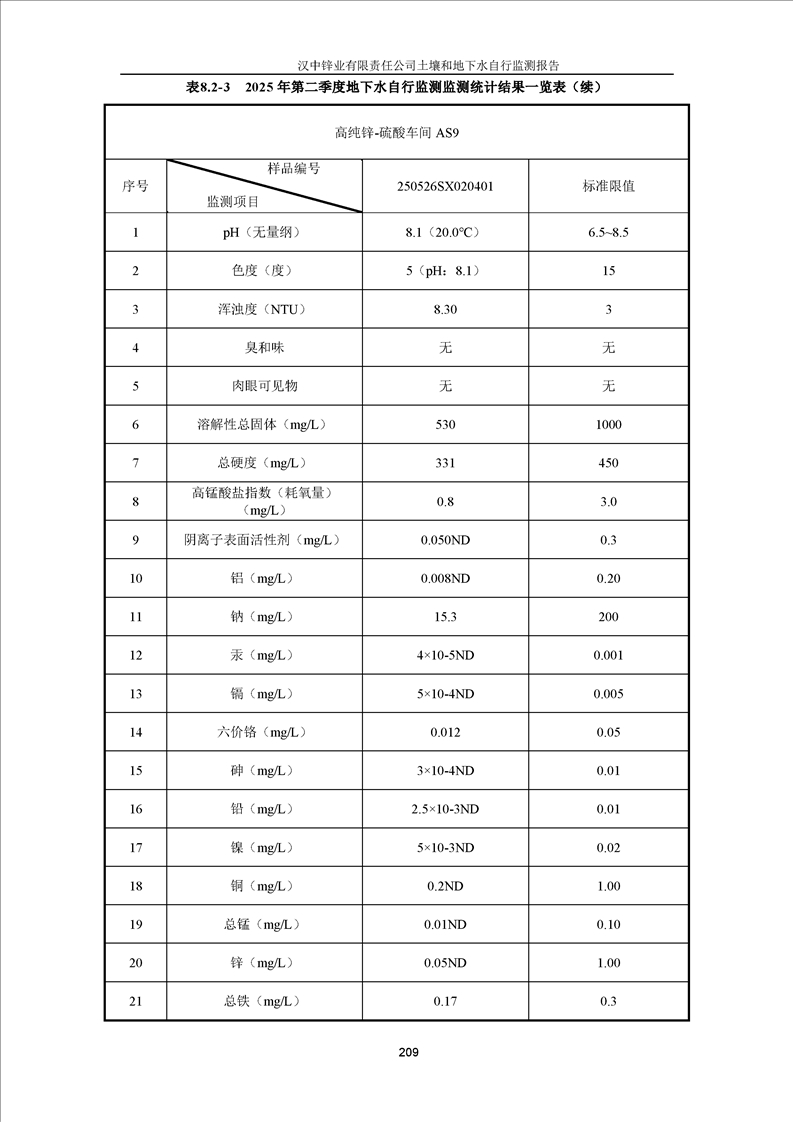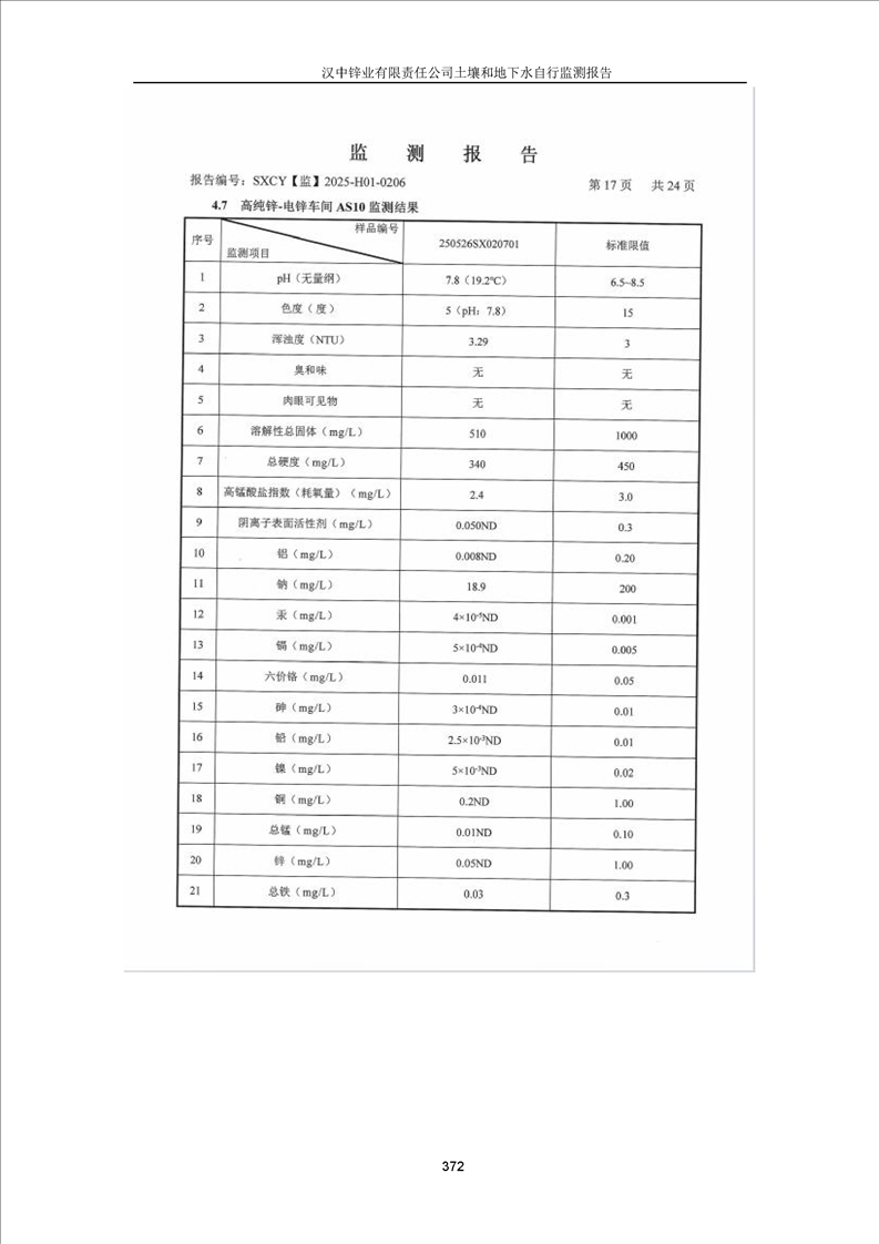 汉中锌业有限责任公司土壤和地下水自行监测报告(2025年)