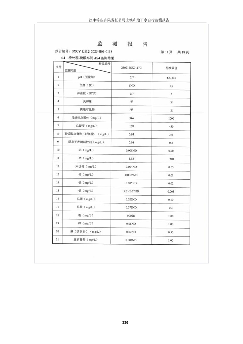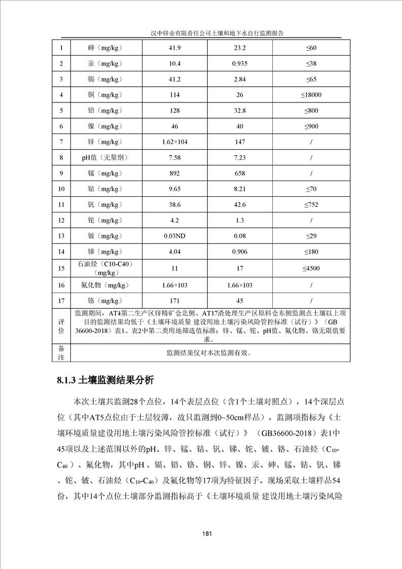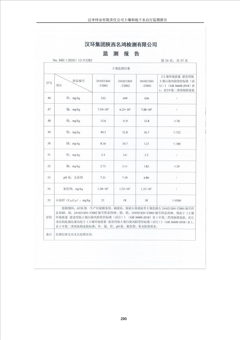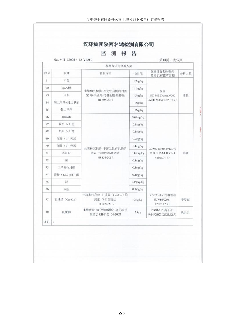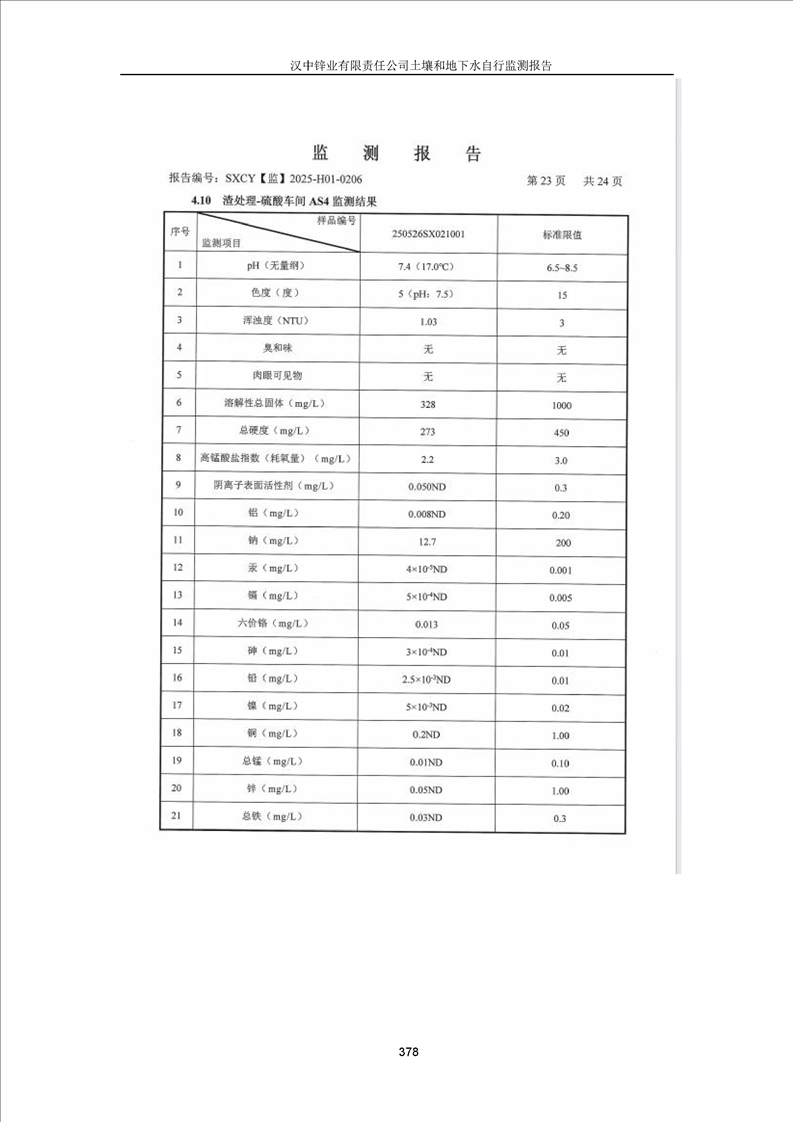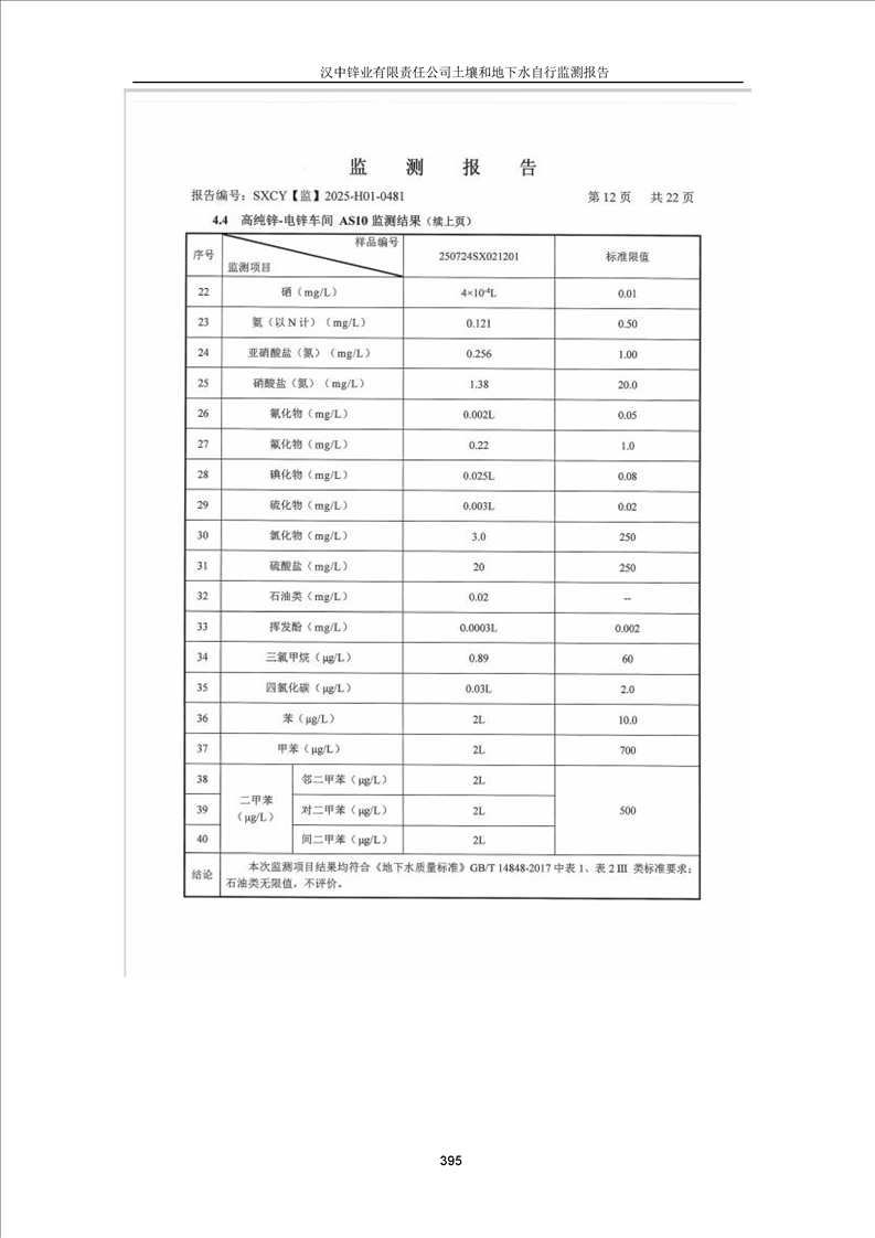 汉中锌业有限责任公司土壤和地下水自行监测报告(2025年)