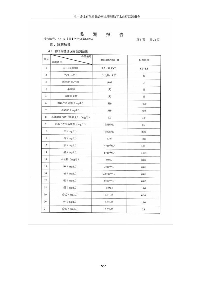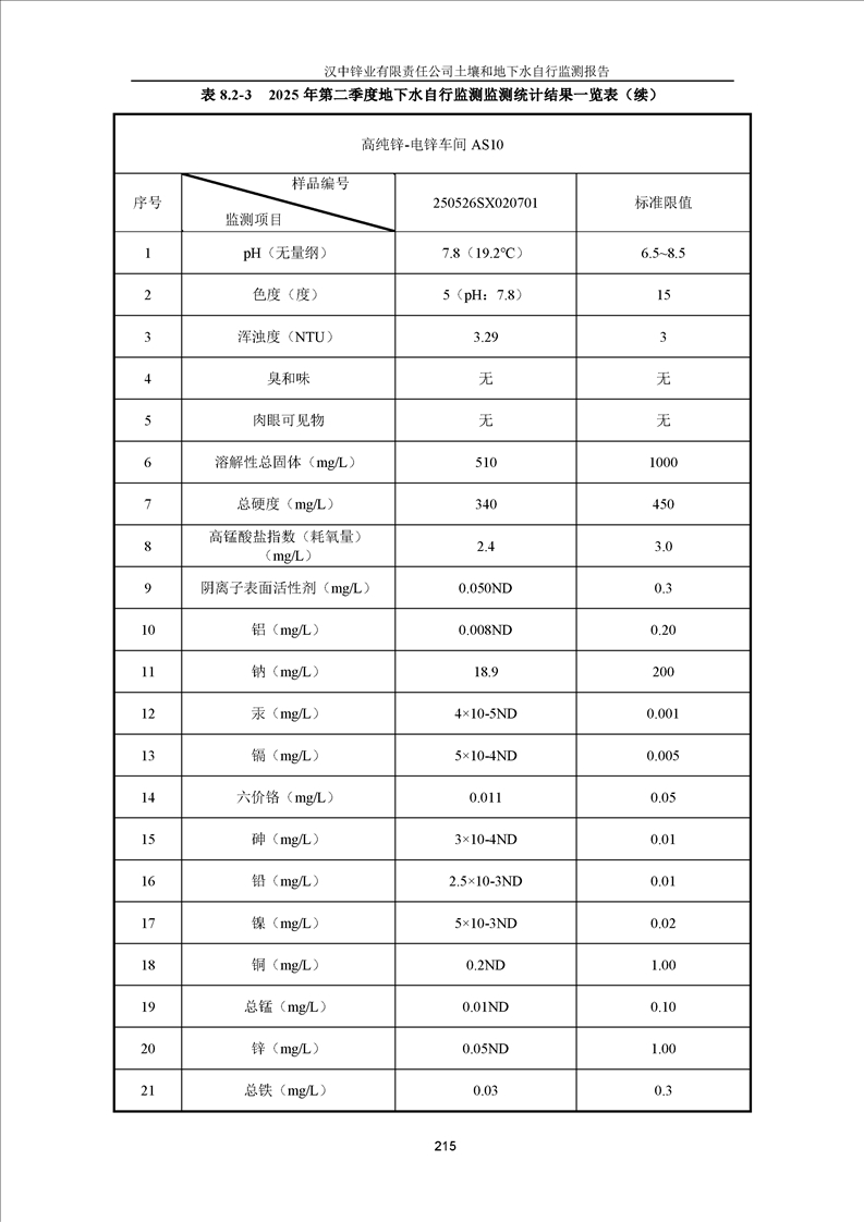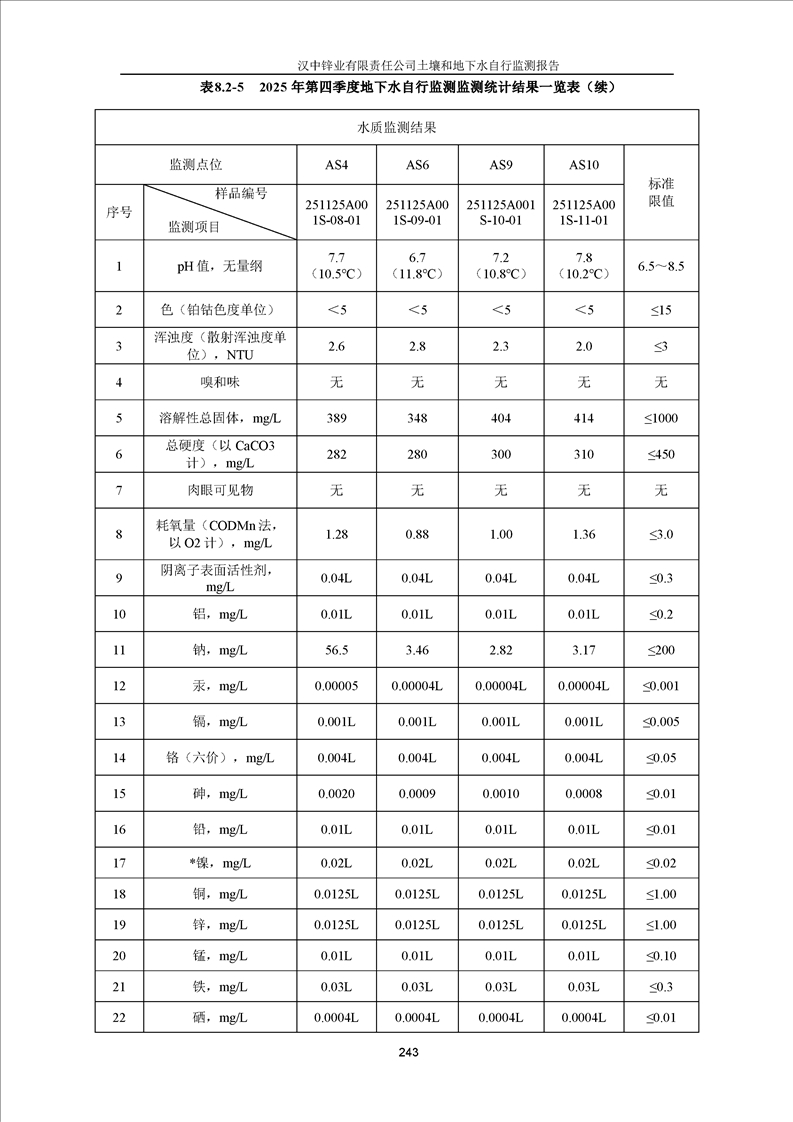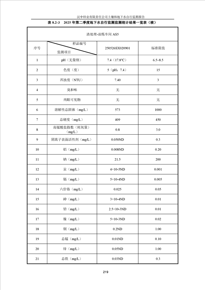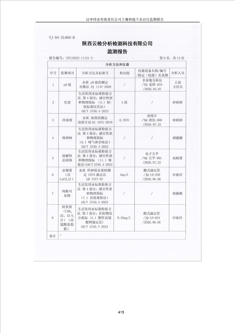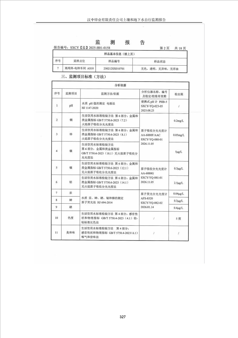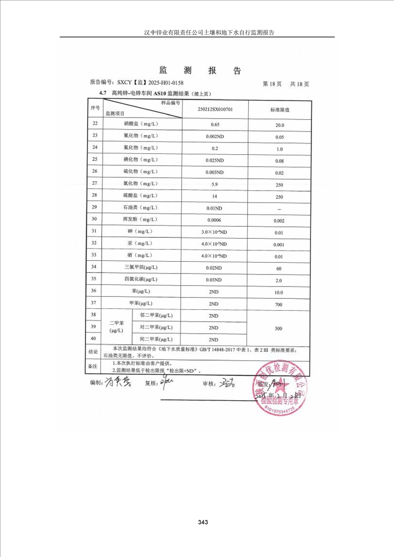 汉中锌业有限责任公司土壤和地下水自行监测报告(2025年)