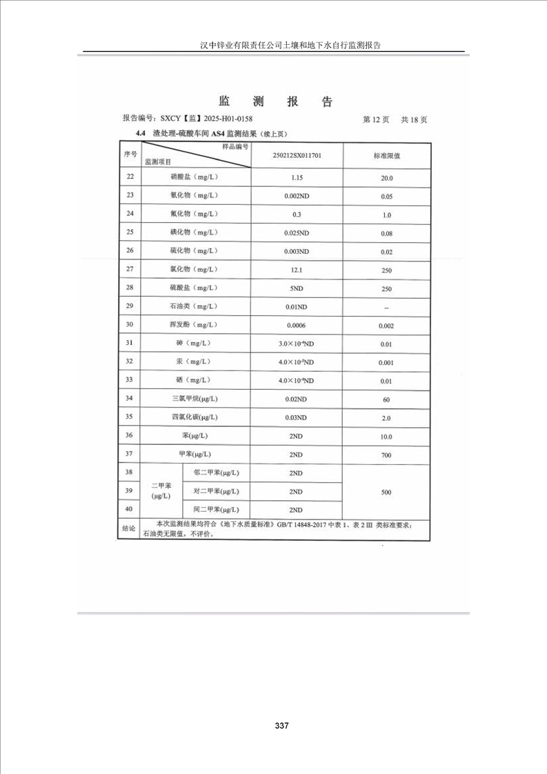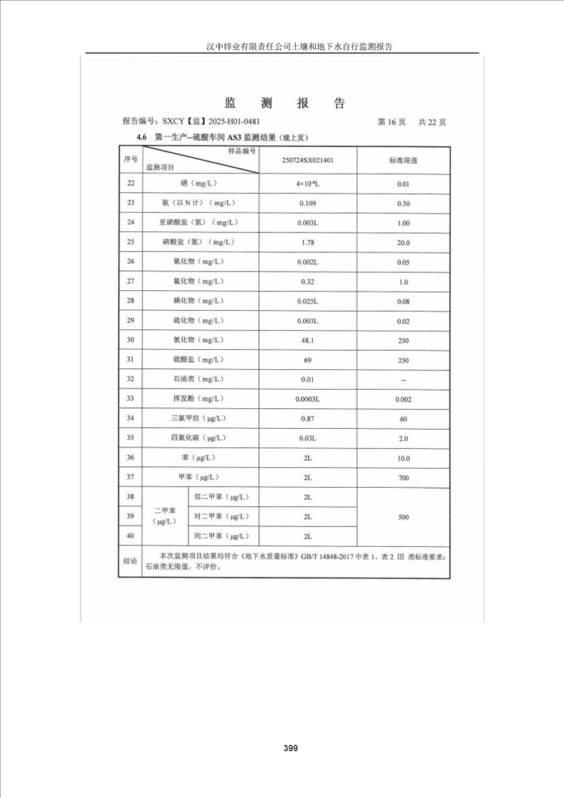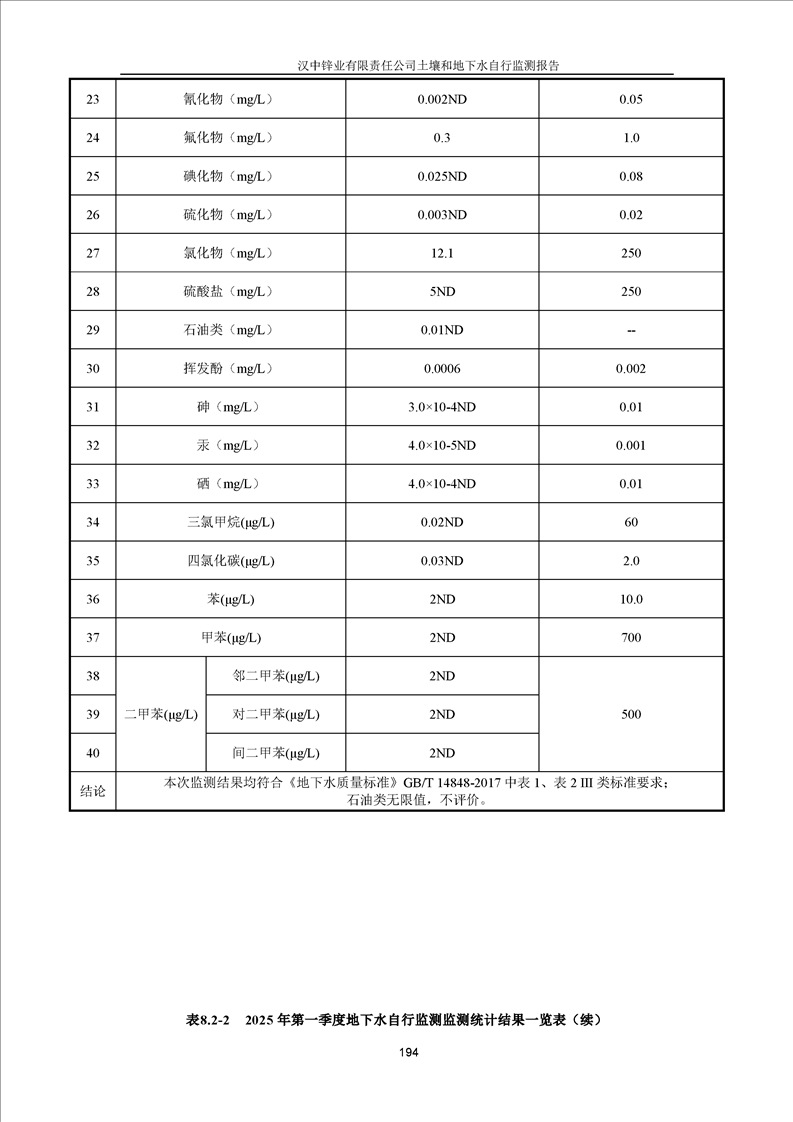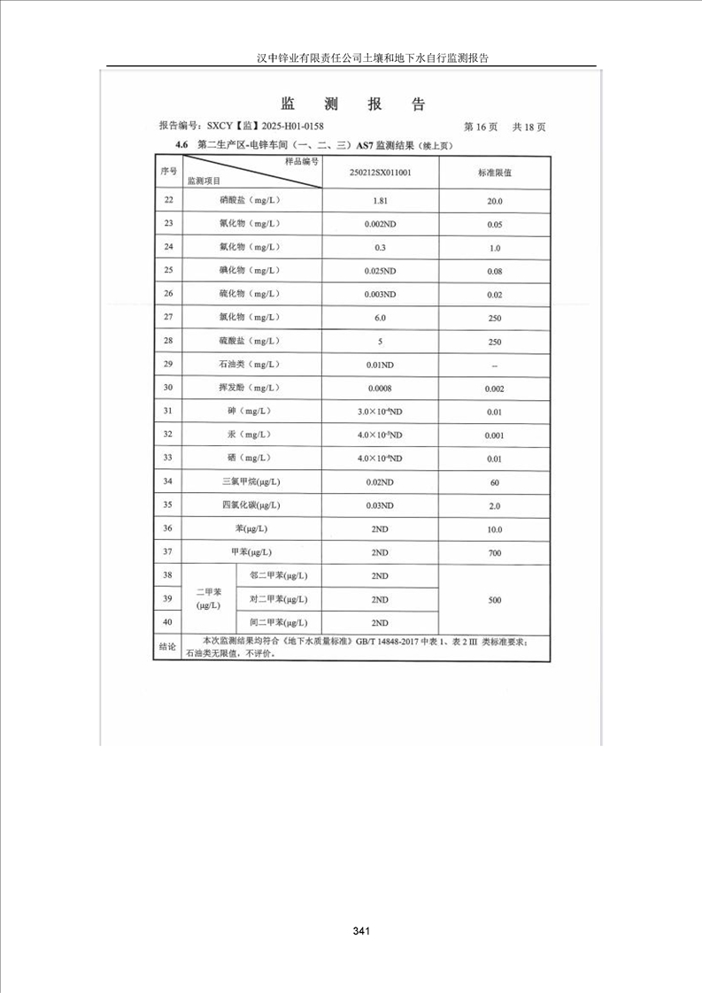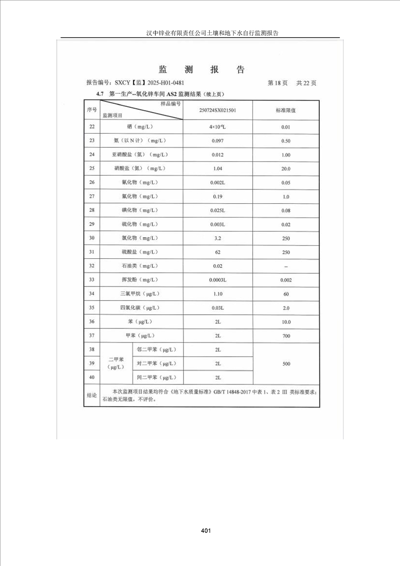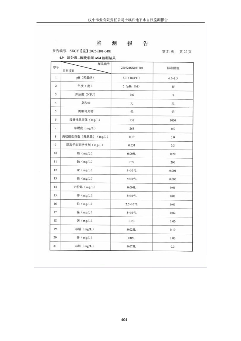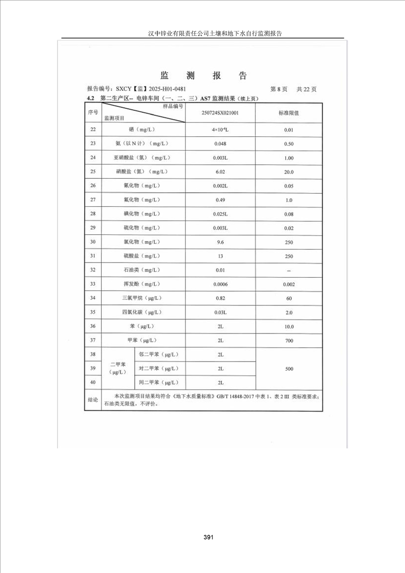 汉中锌业有限责任公司土壤和地下水自行监测报告(2025年)