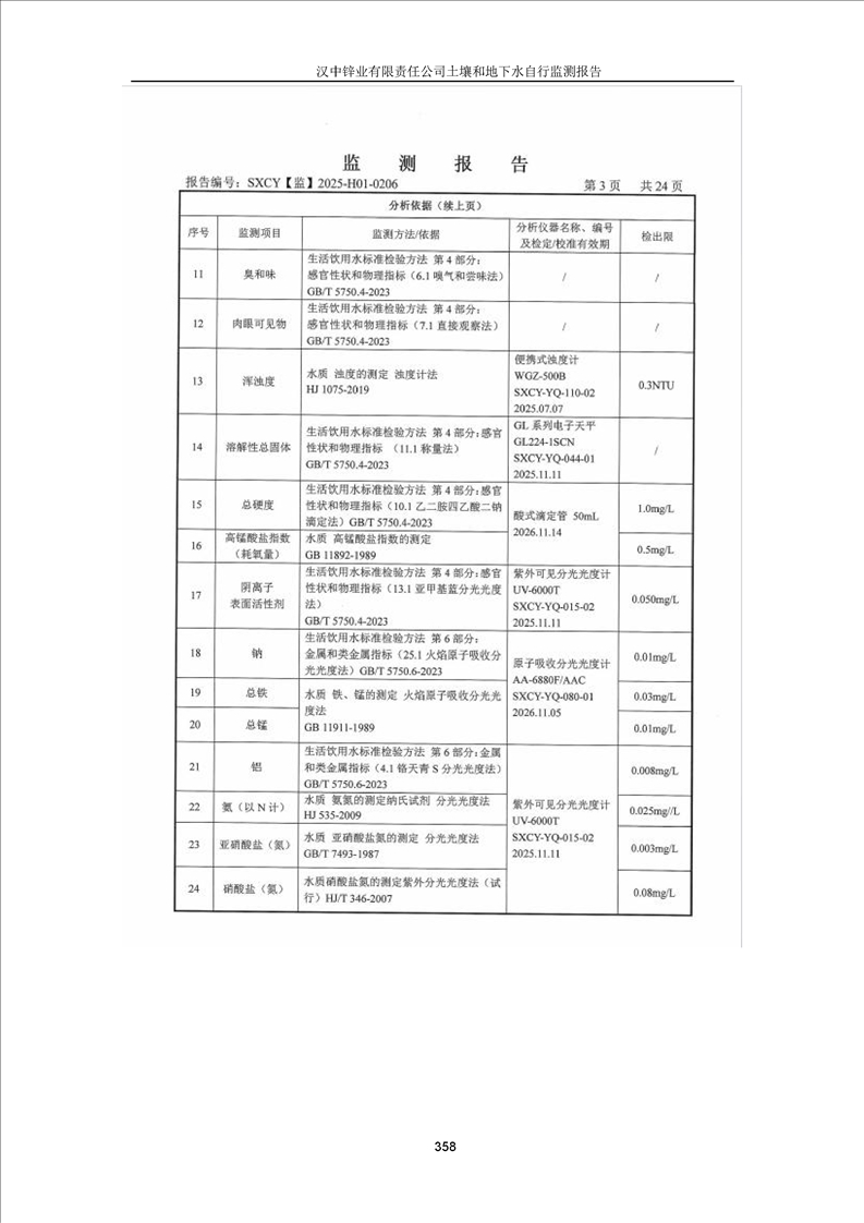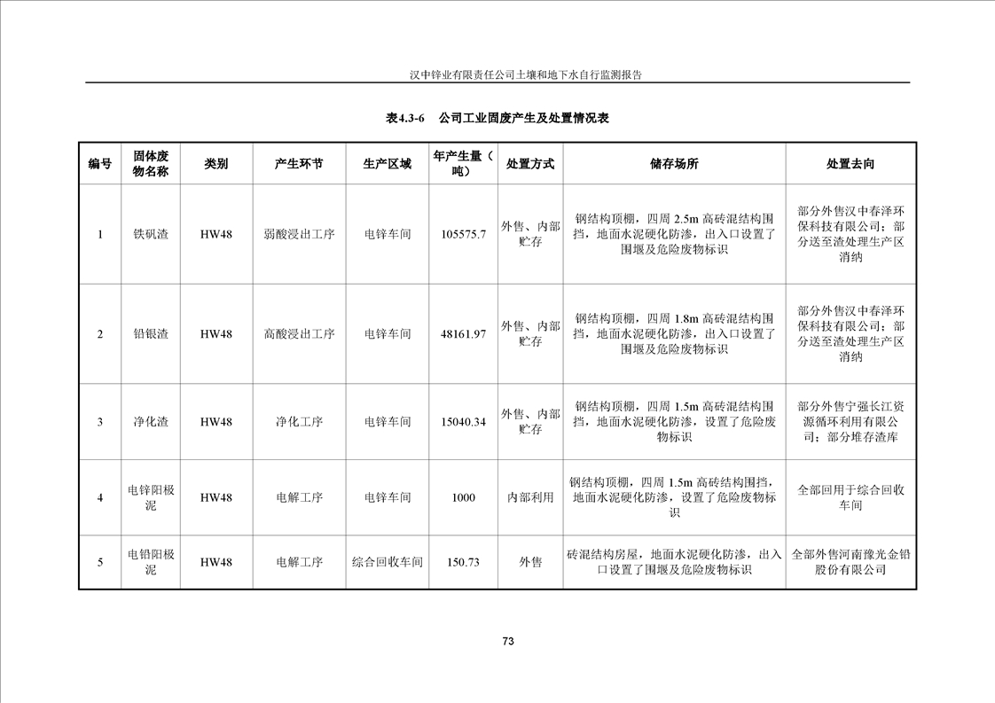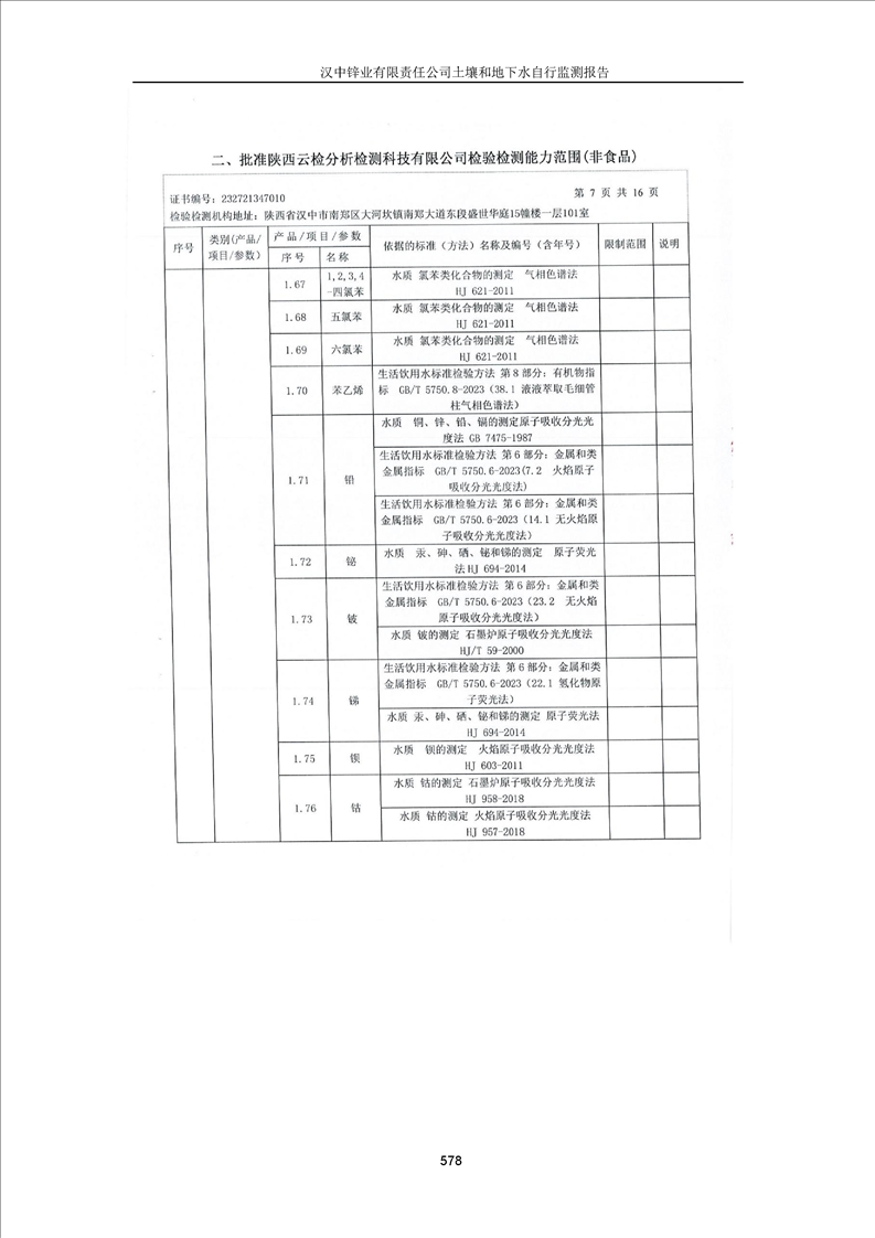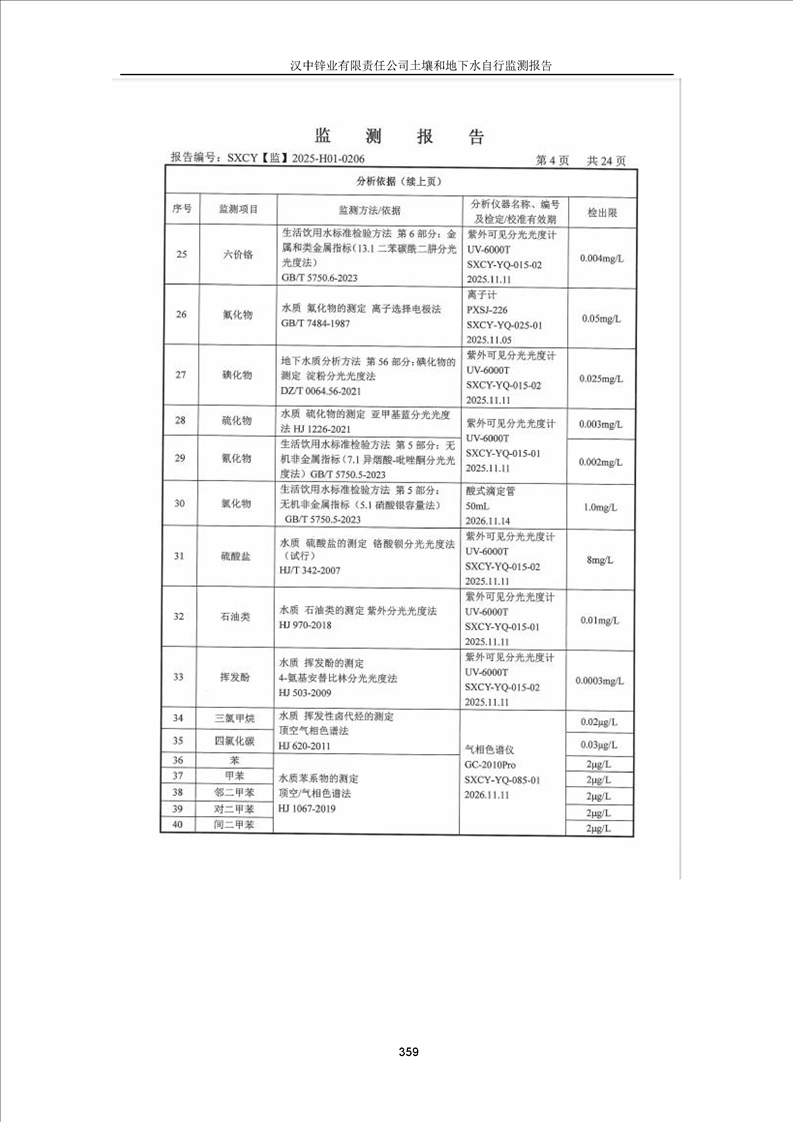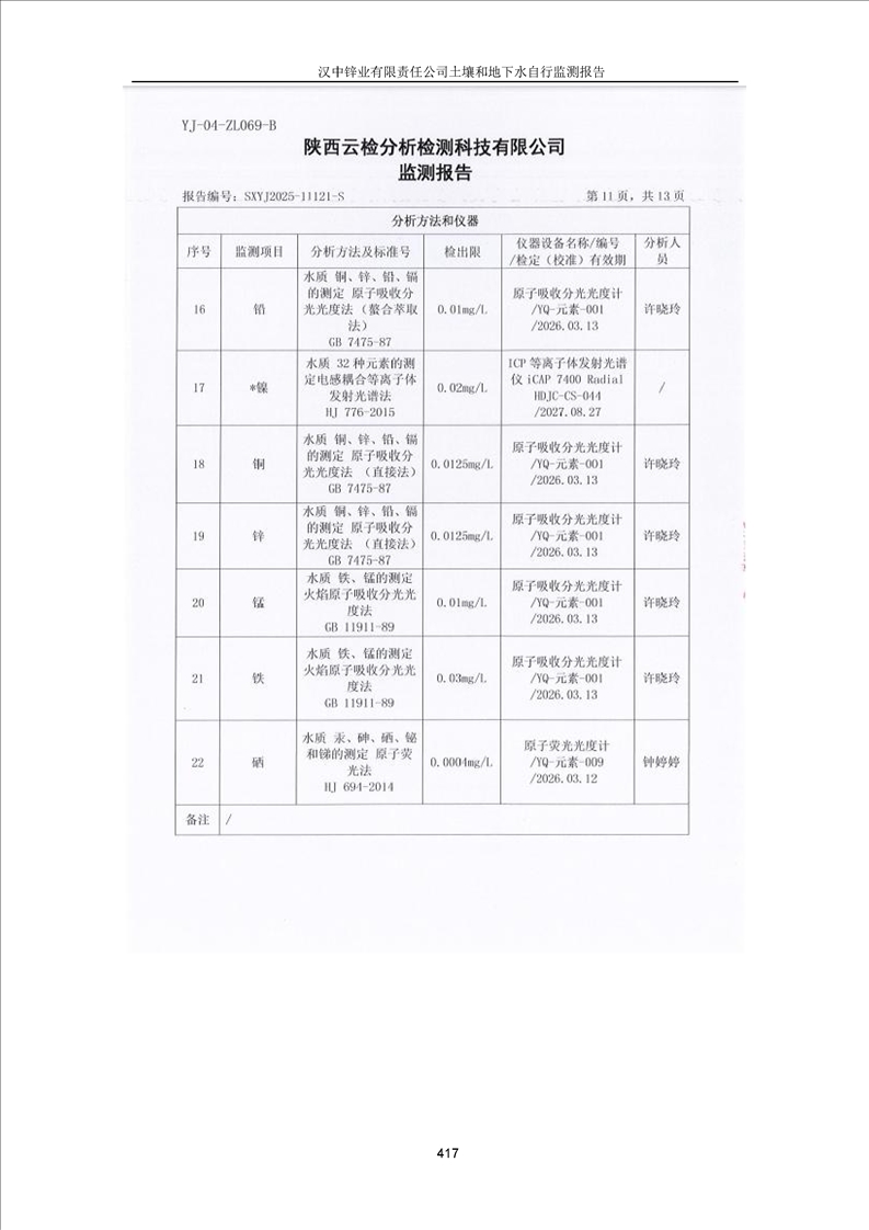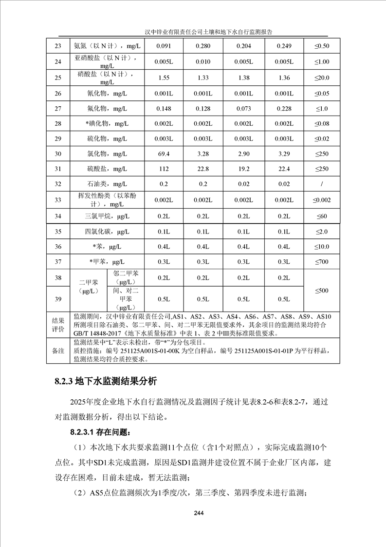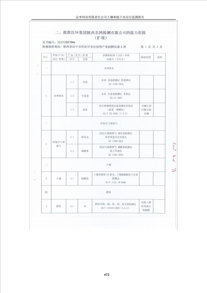 汉中锌业有限责任公司土壤和地下水自行监测报告(2025年)