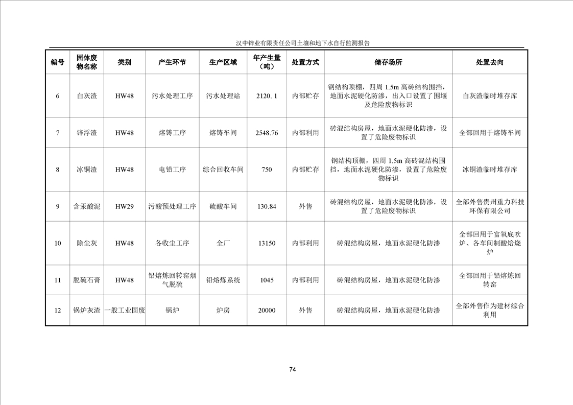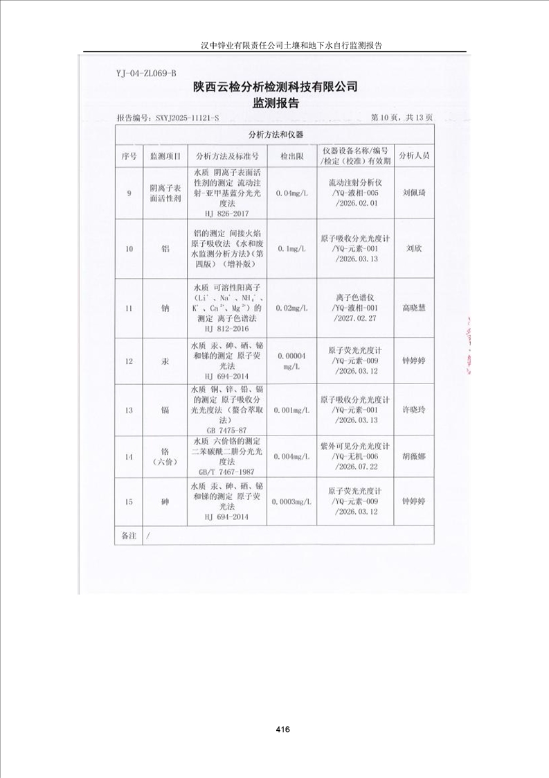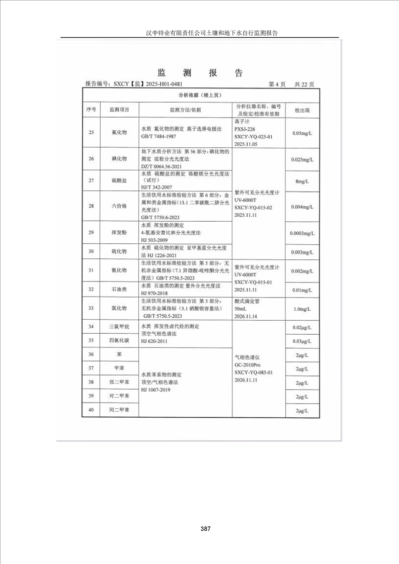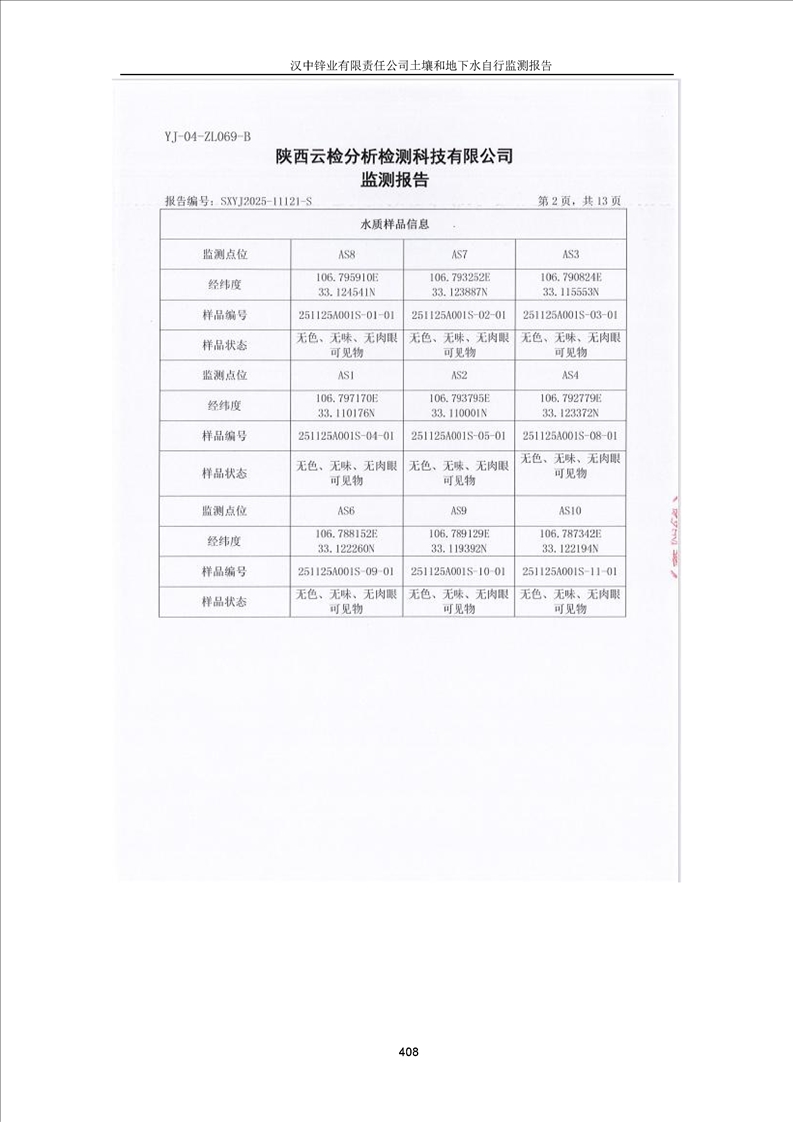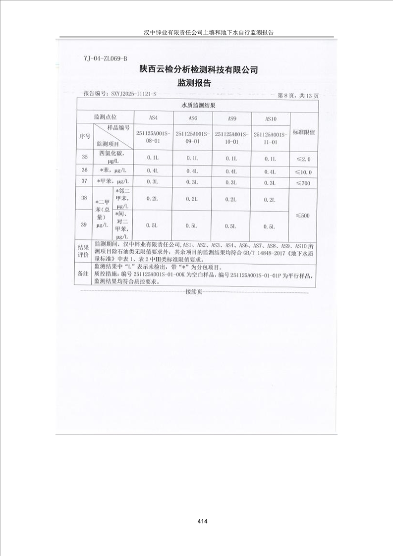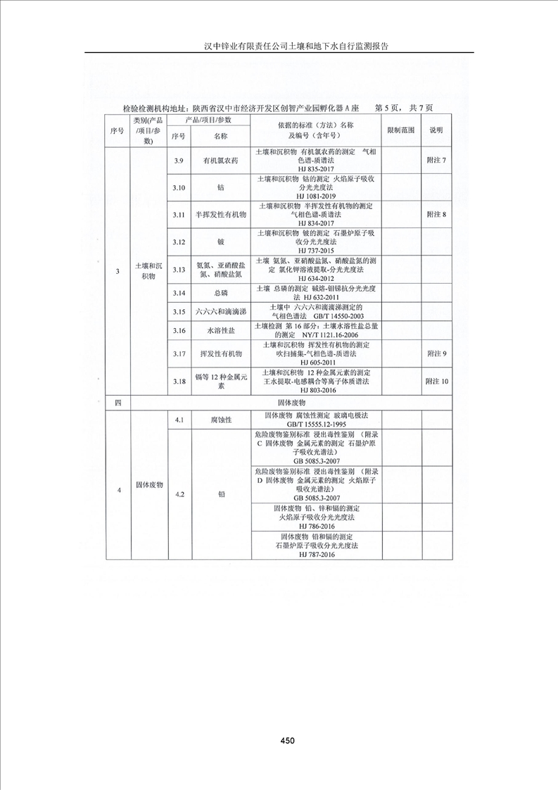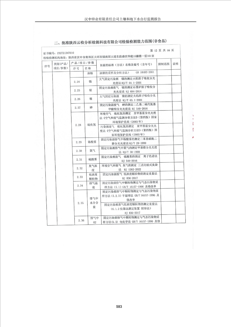 汉中锌业有限责任公司土壤和地下水自行监测报告(2025年)