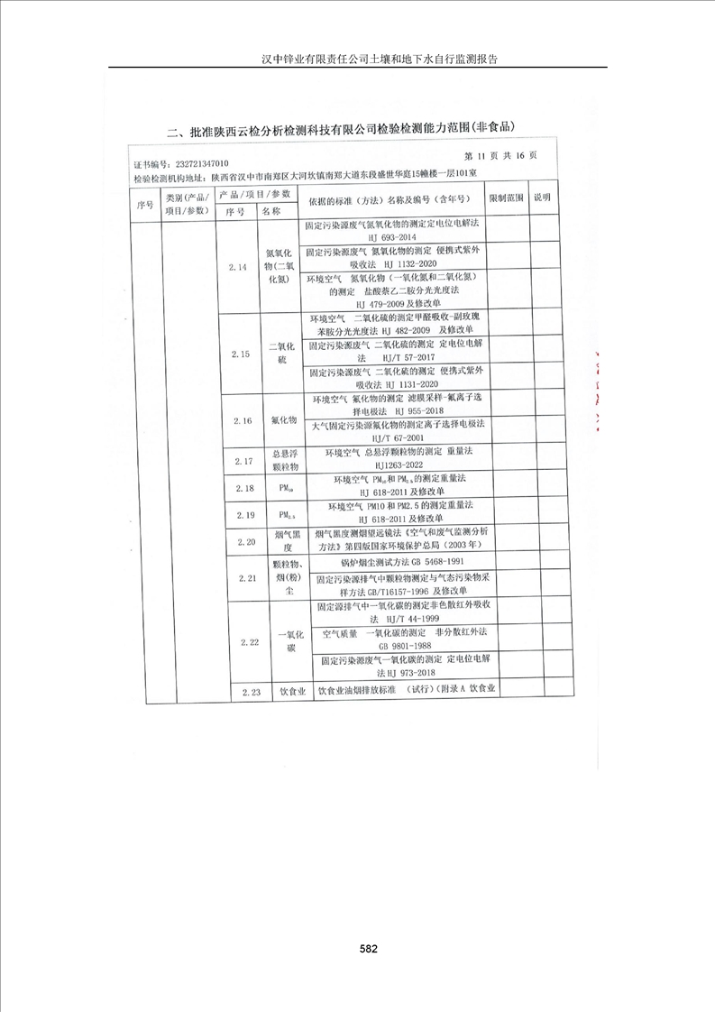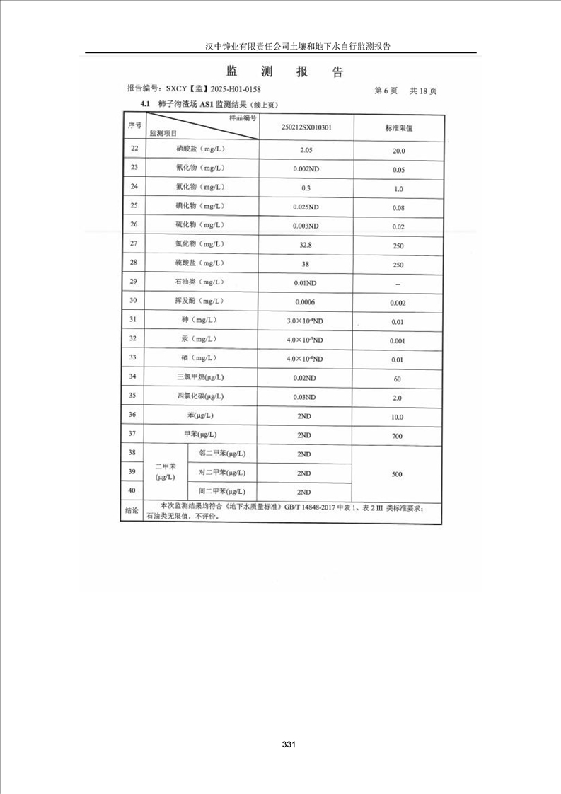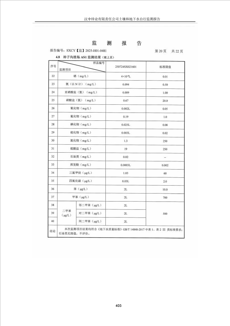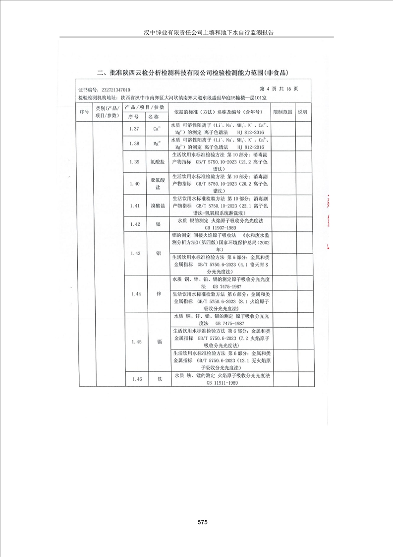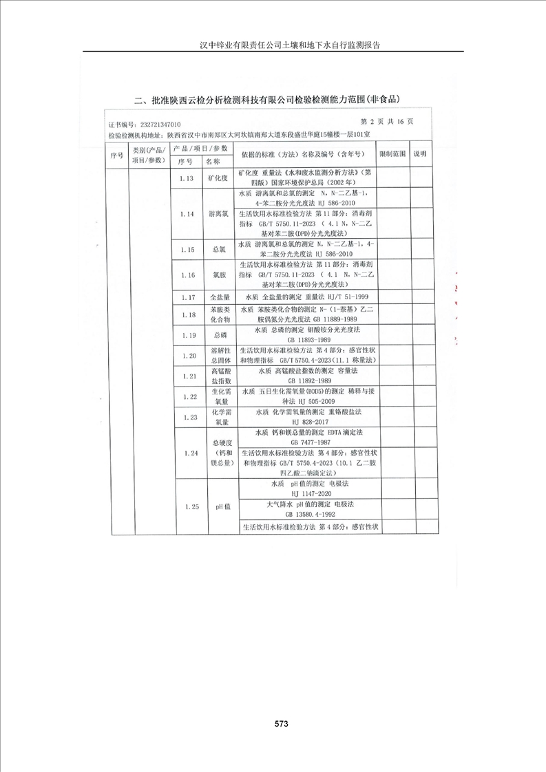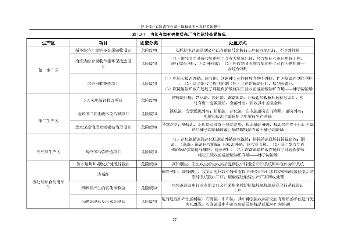 汉中锌业有限责任公司土壤和地下水自行监测报告(2025年)