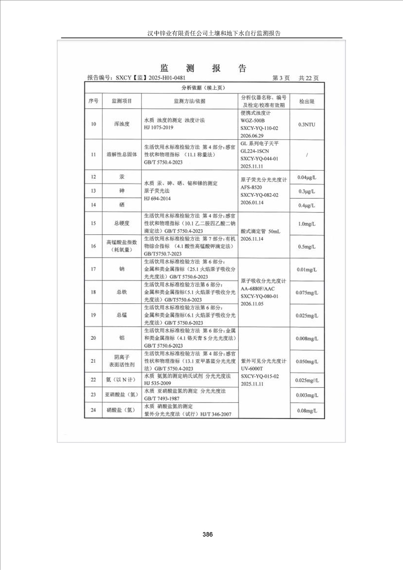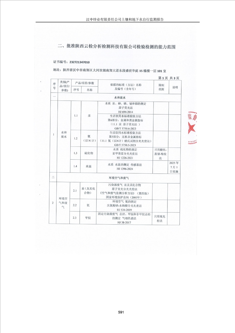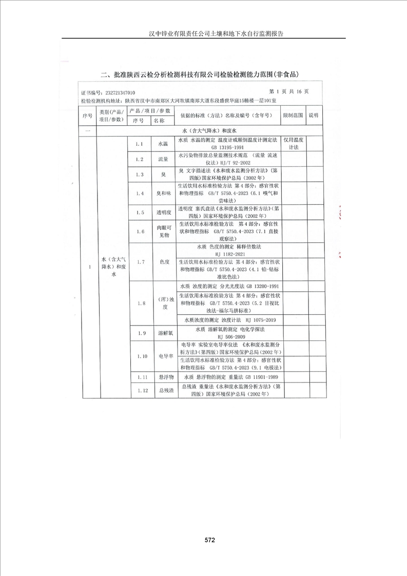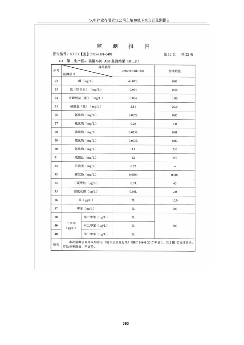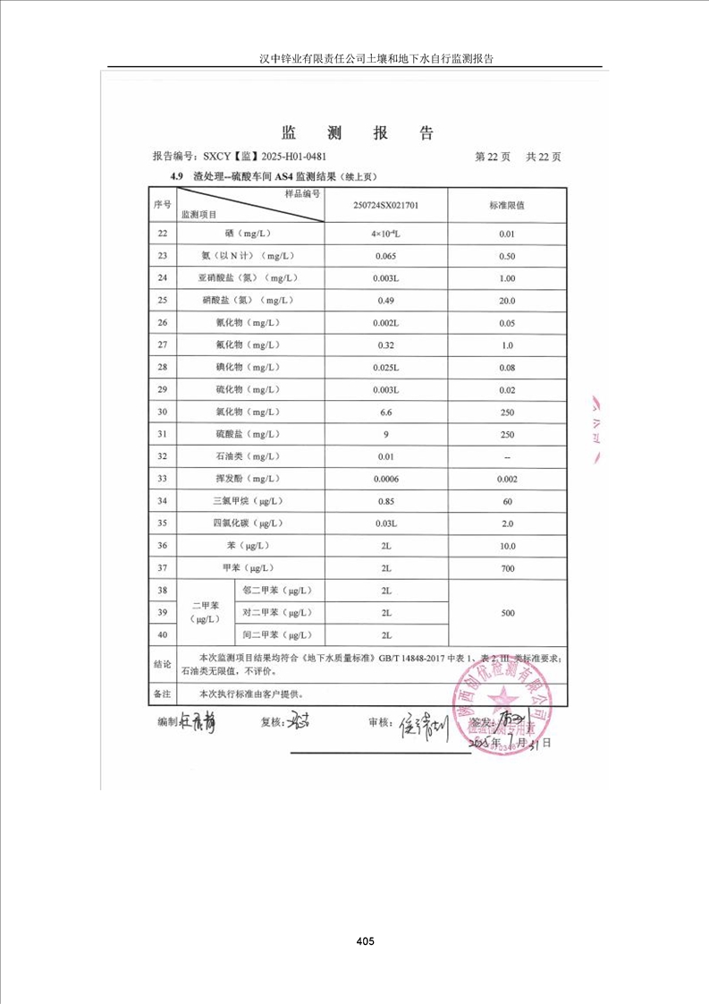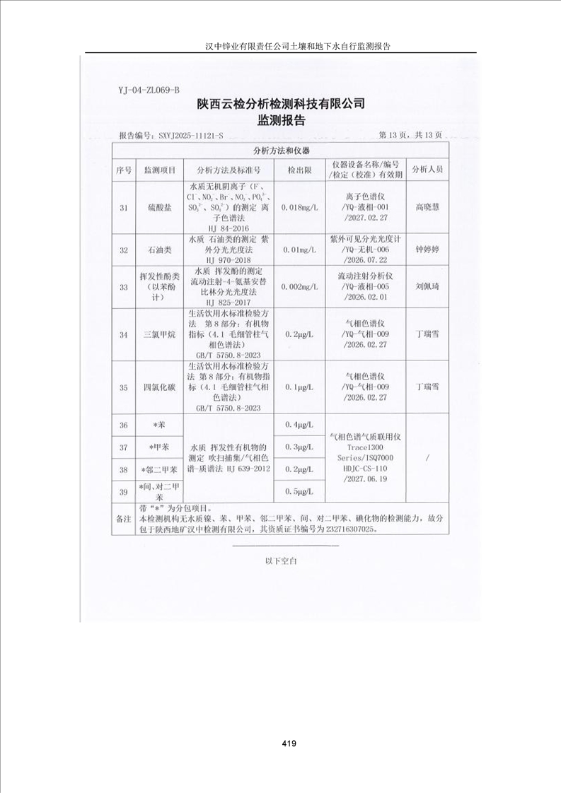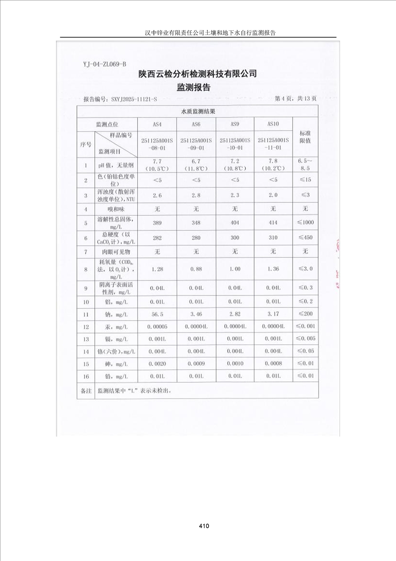 汉中锌业有限责任公司土壤和地下水自行监测报告(2025年)