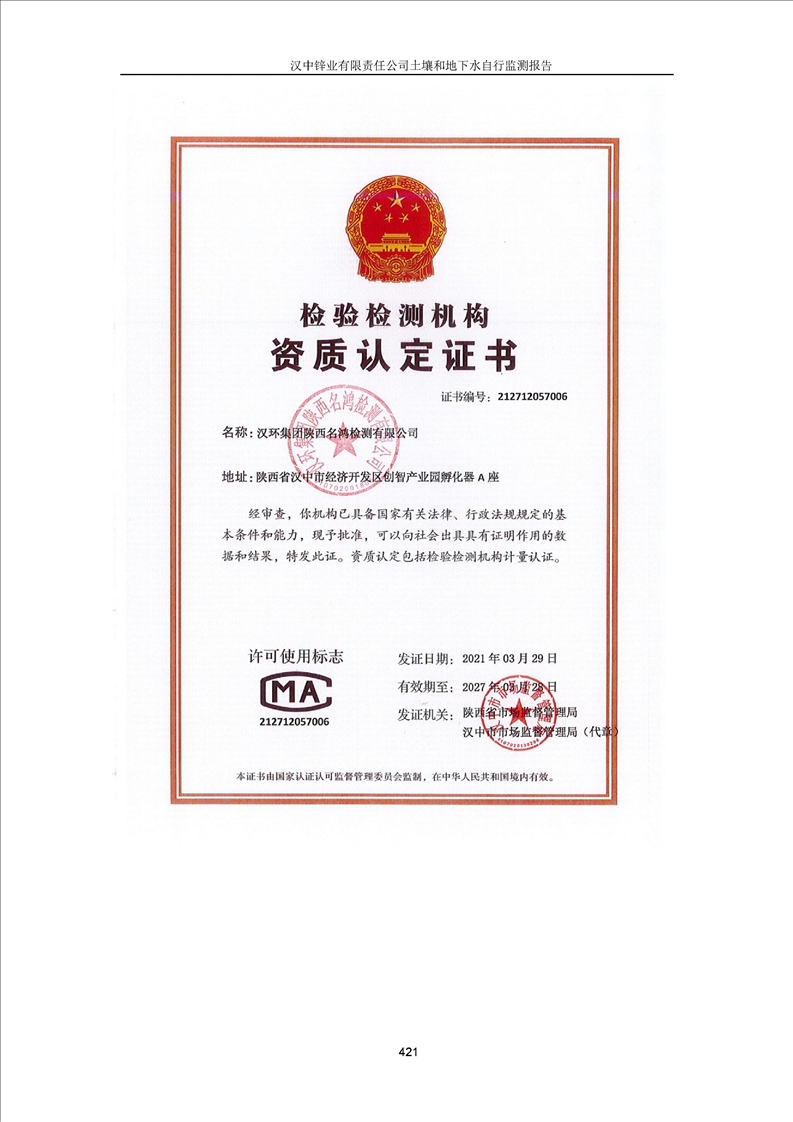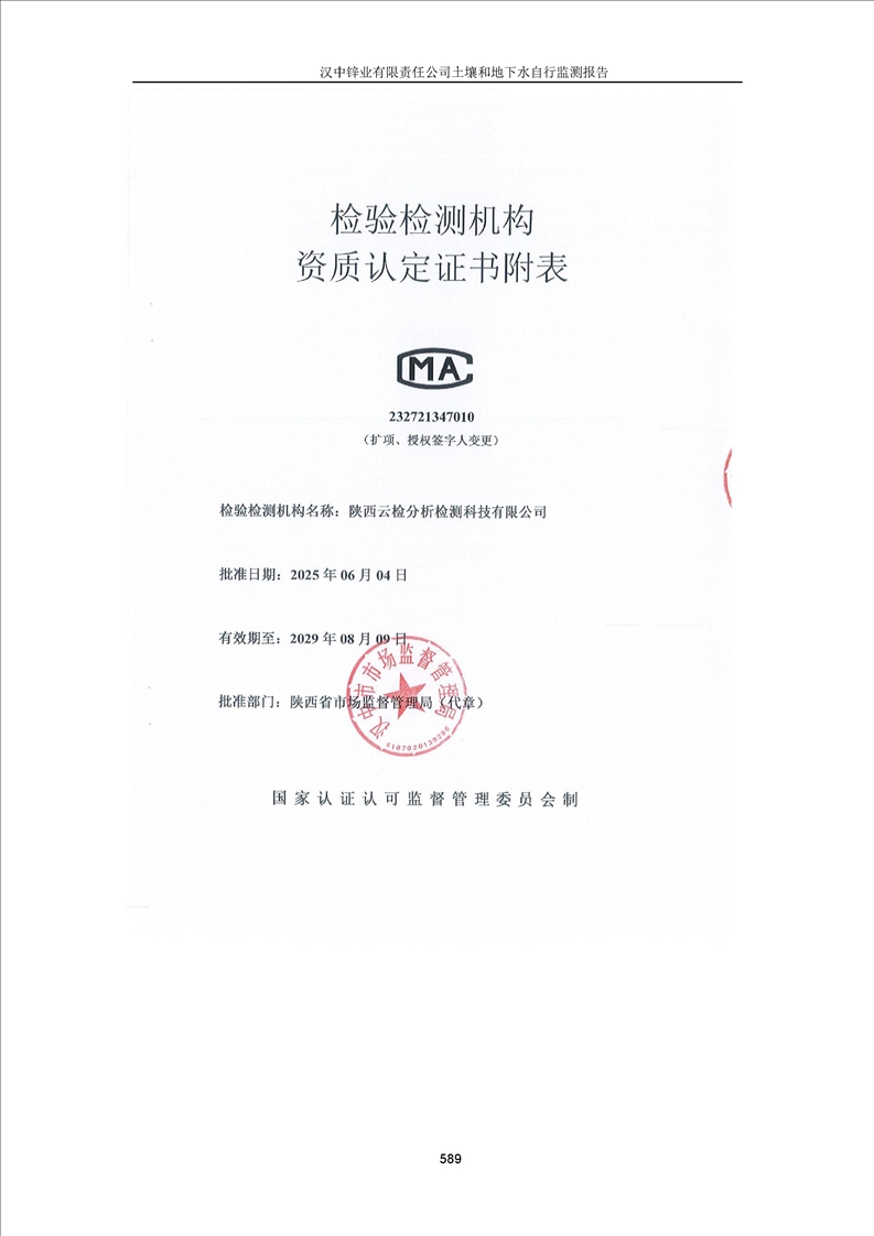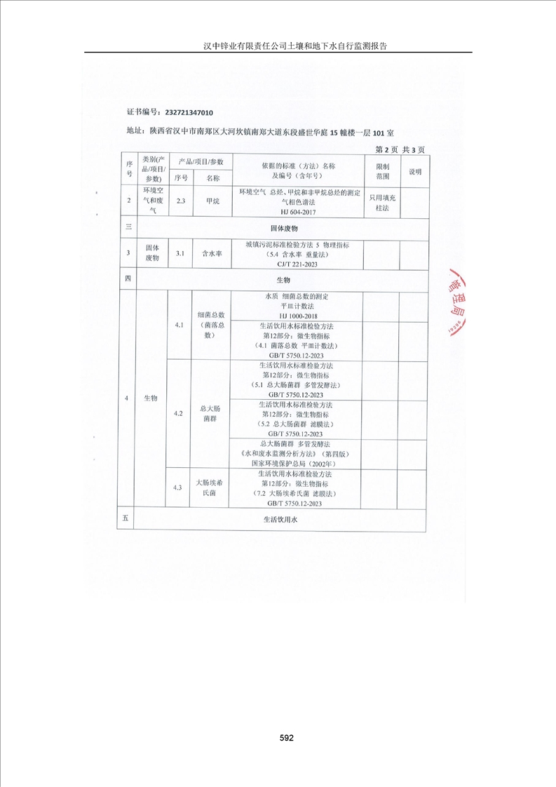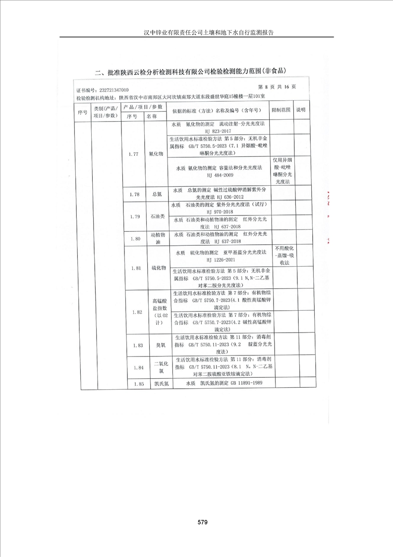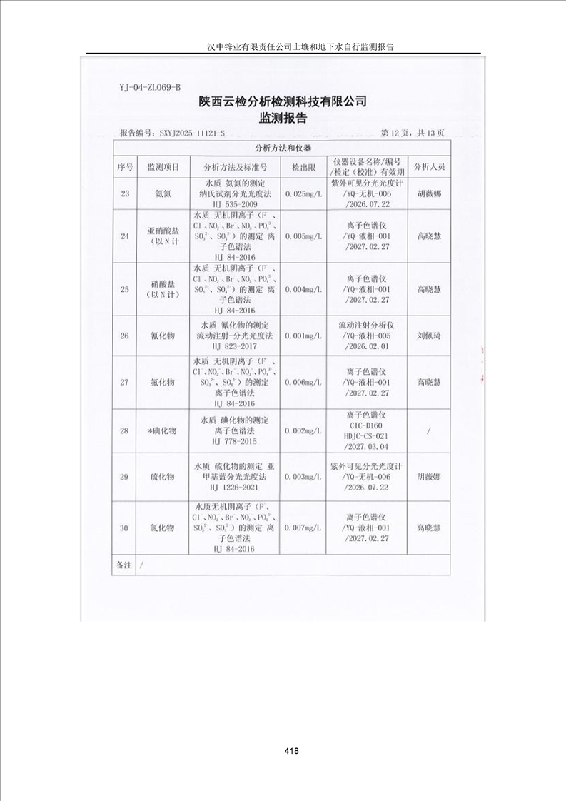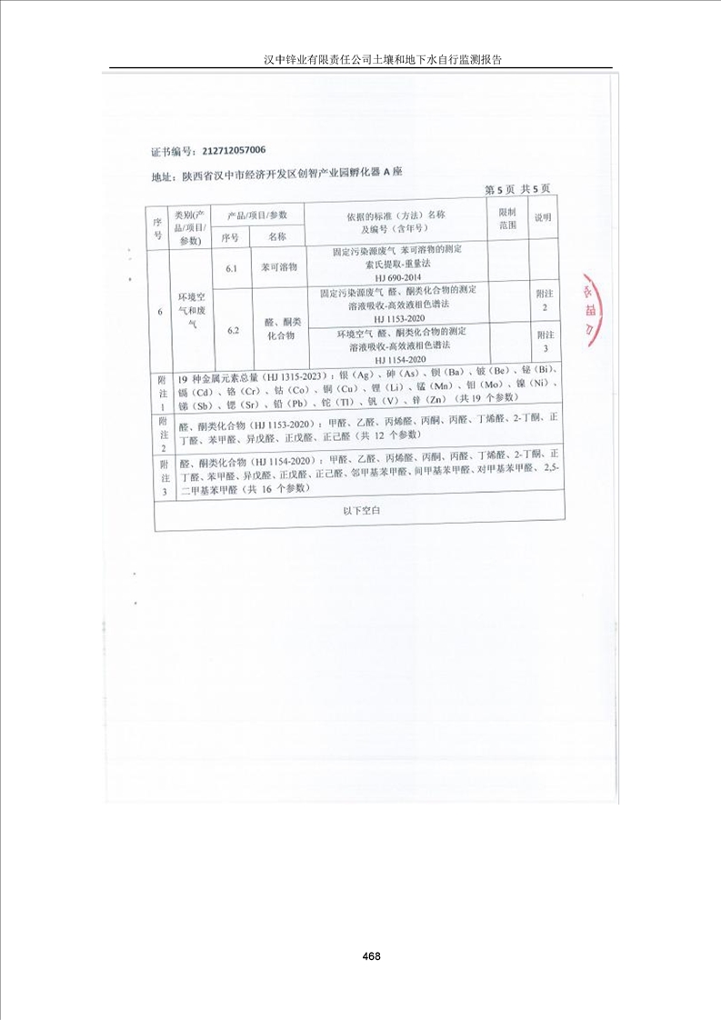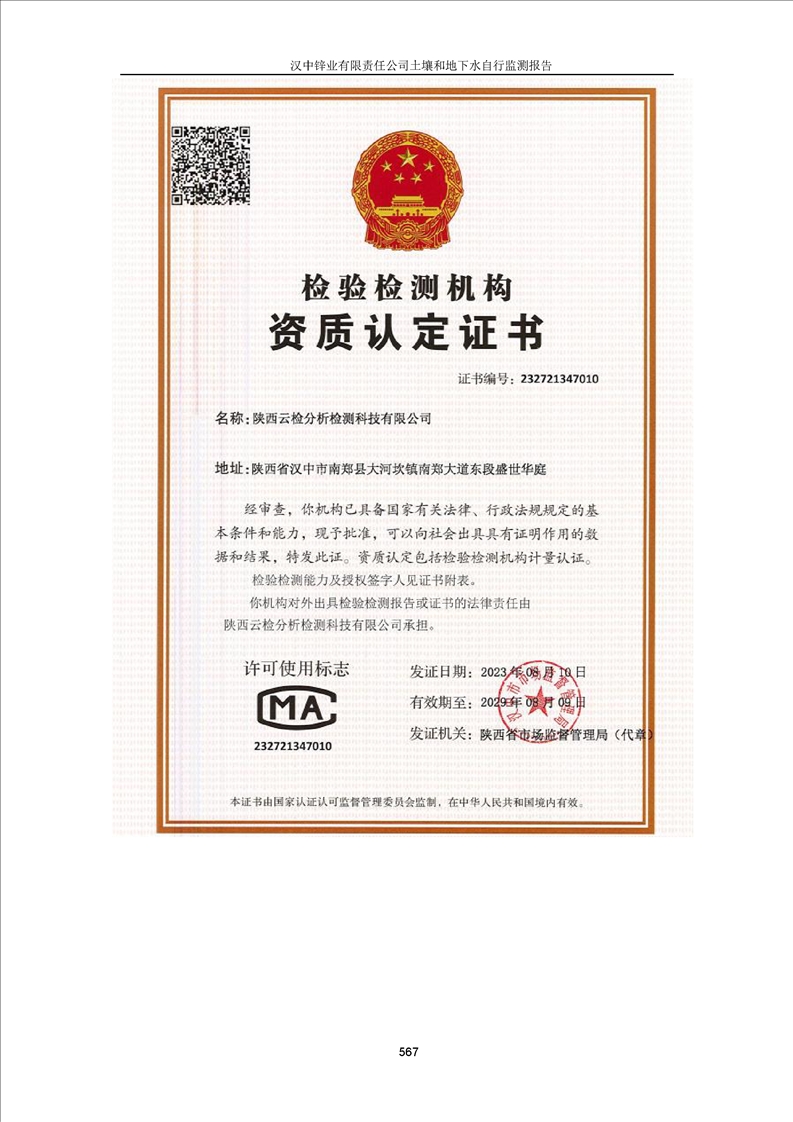 汉中锌业有限责任公司土壤和地下水自行监测报告(2025年)