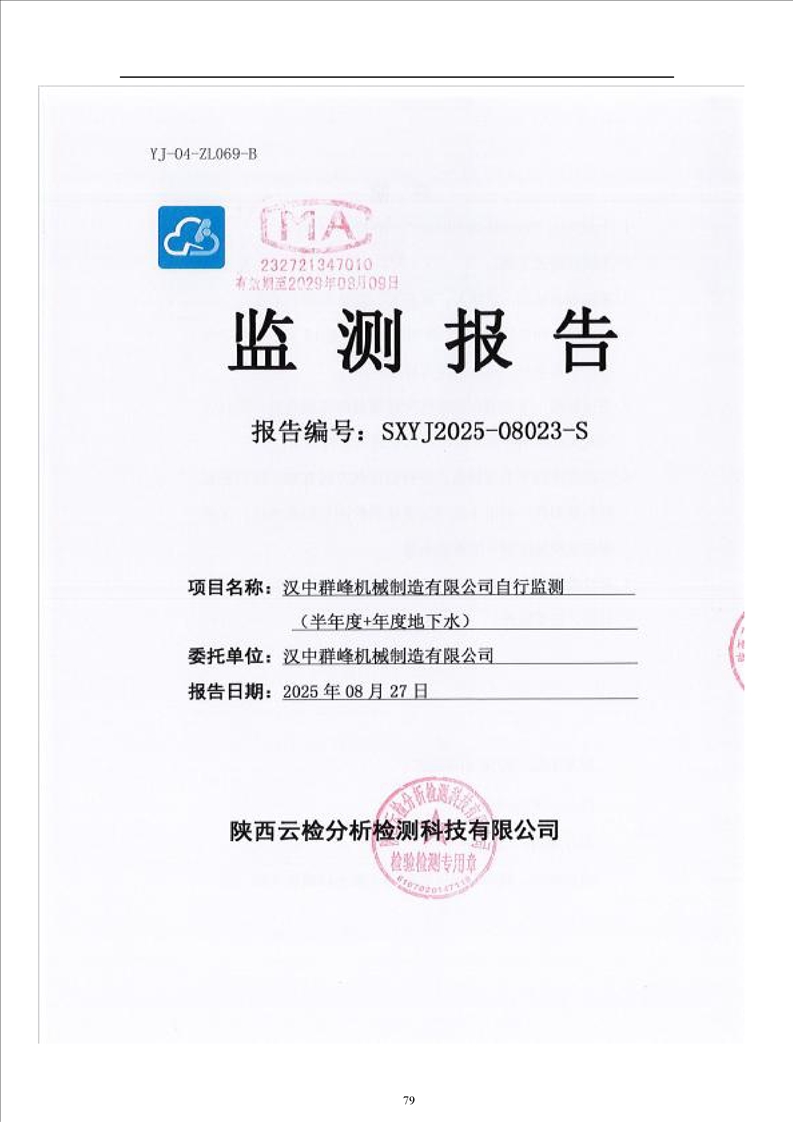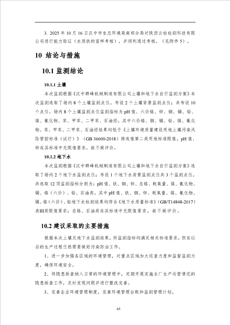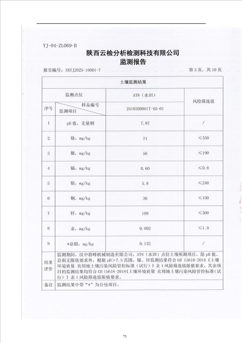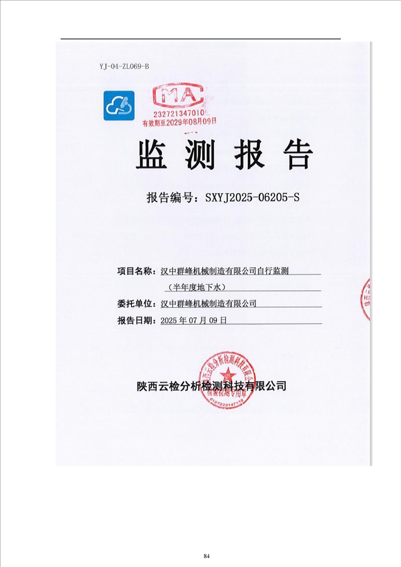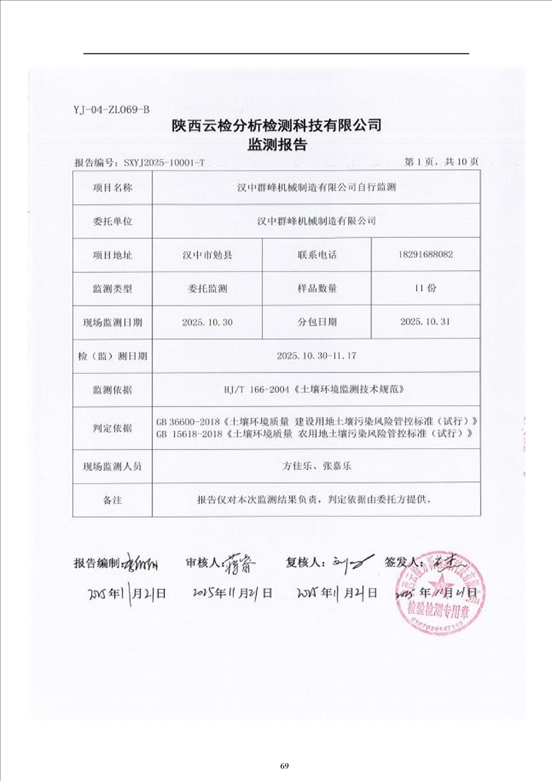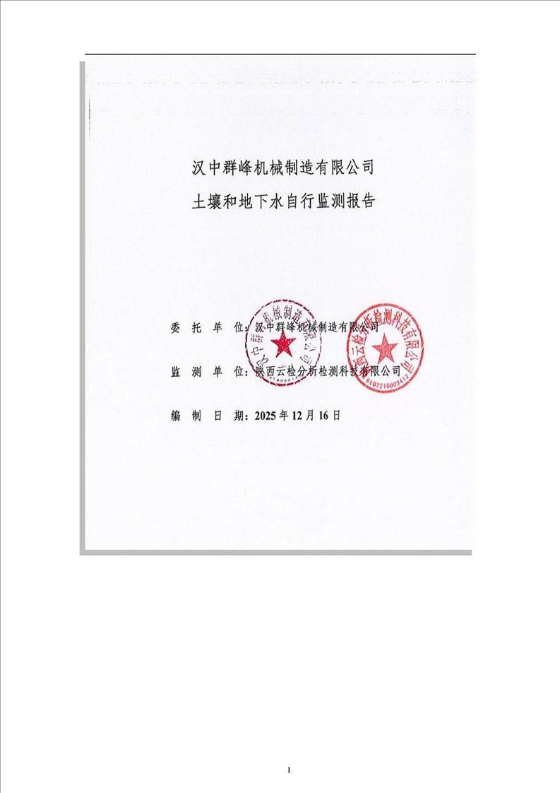 汉中群峰机械制造有限公司土壤和地下水自行监测报告(2025年)