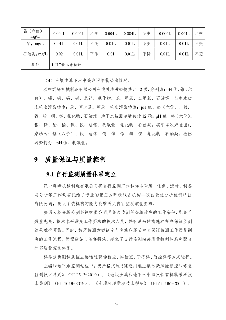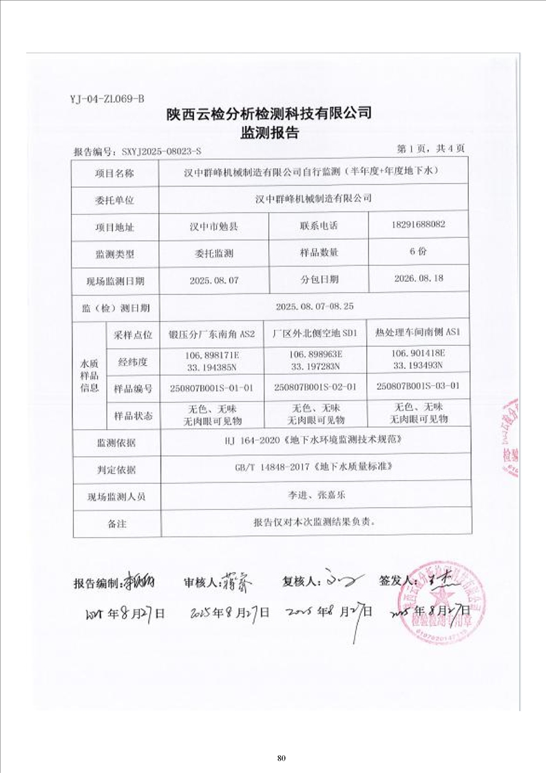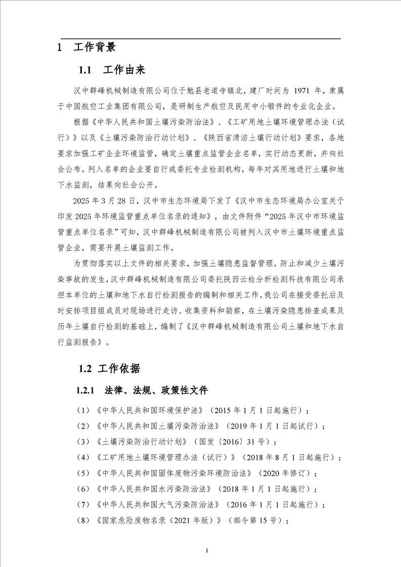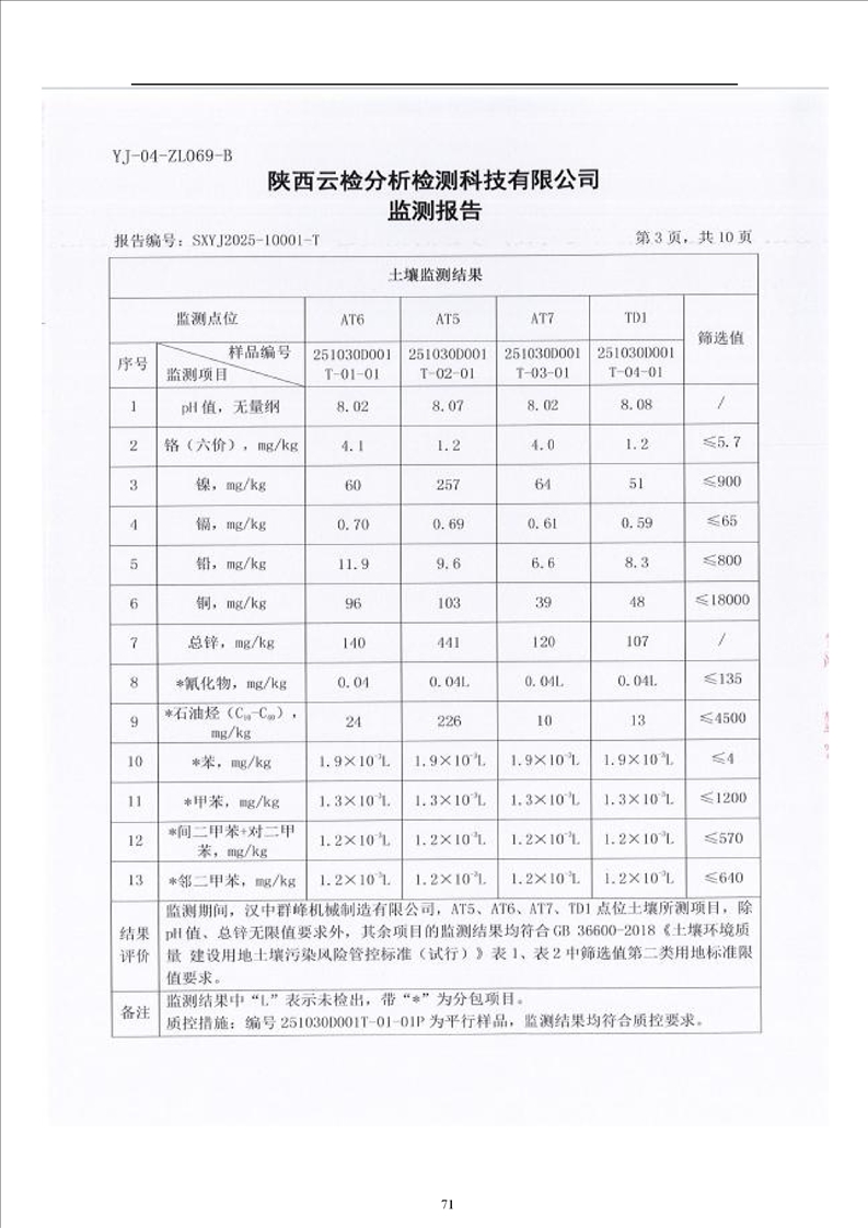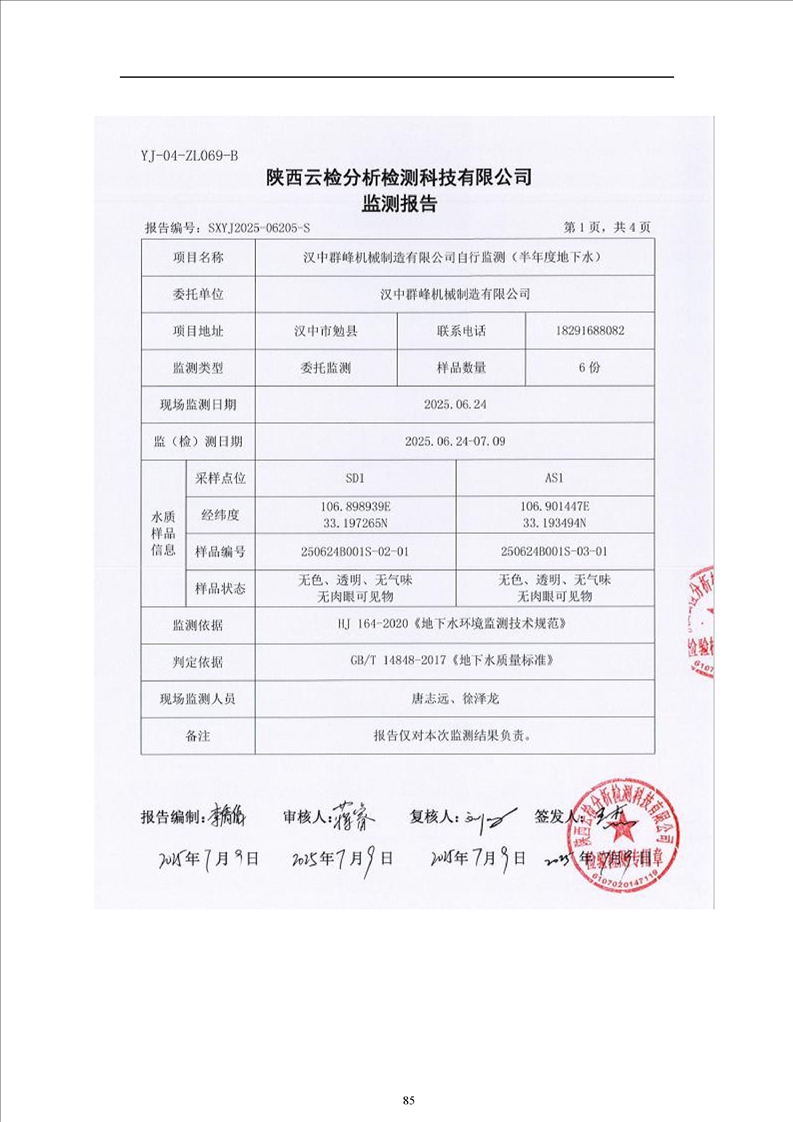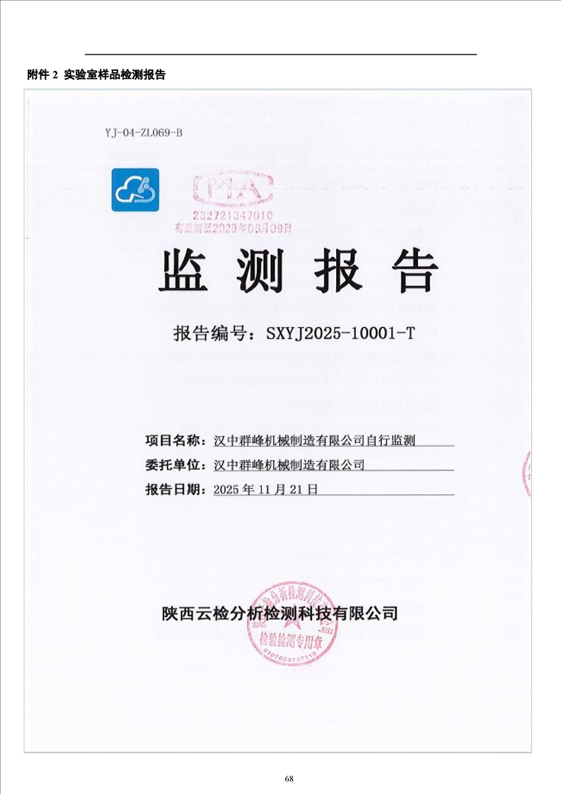 汉中群峰机械制造有限公司土壤和地下水自行监测报告(2025年)
