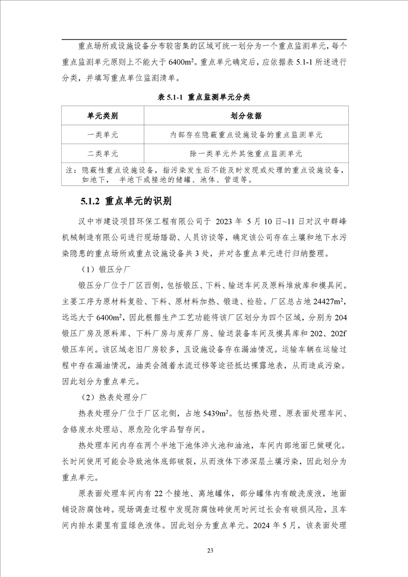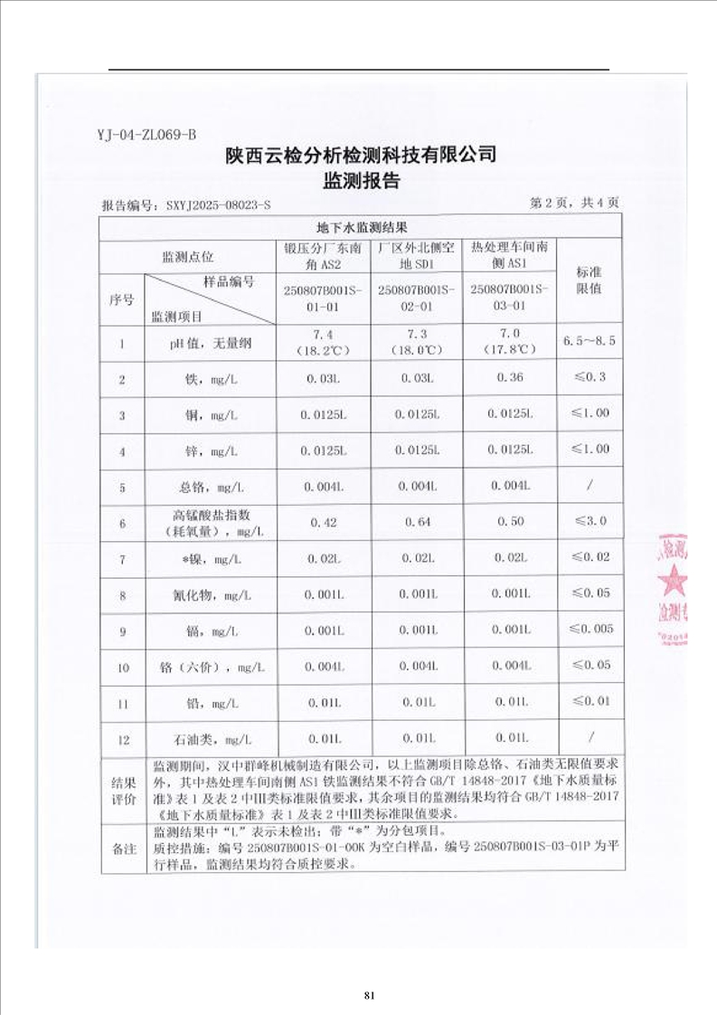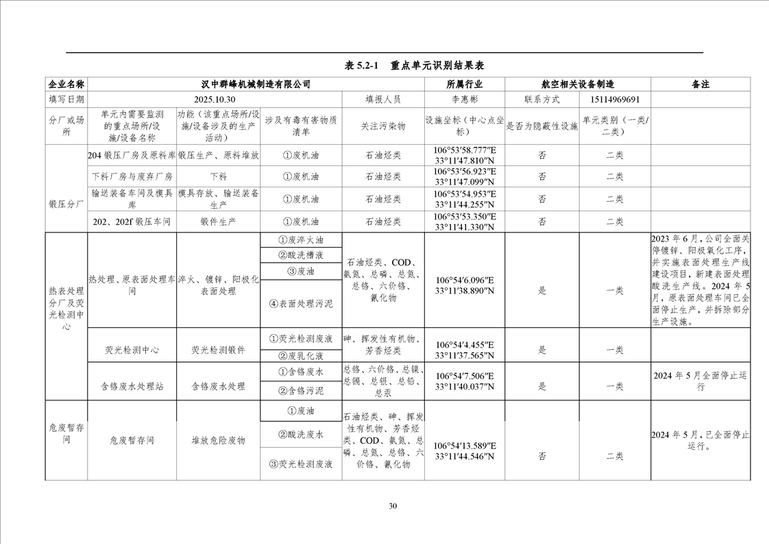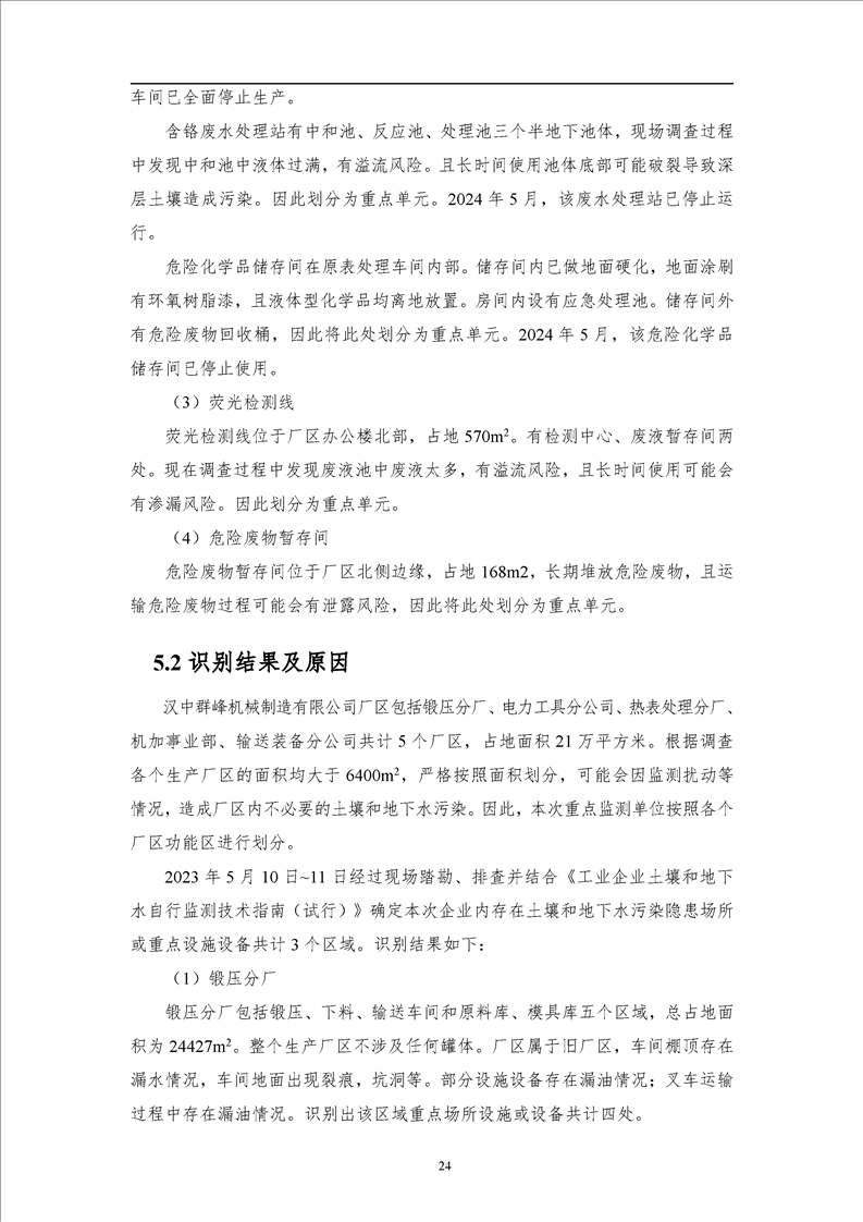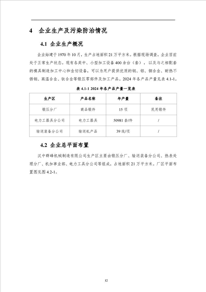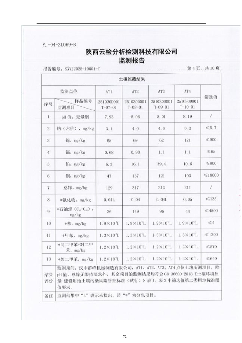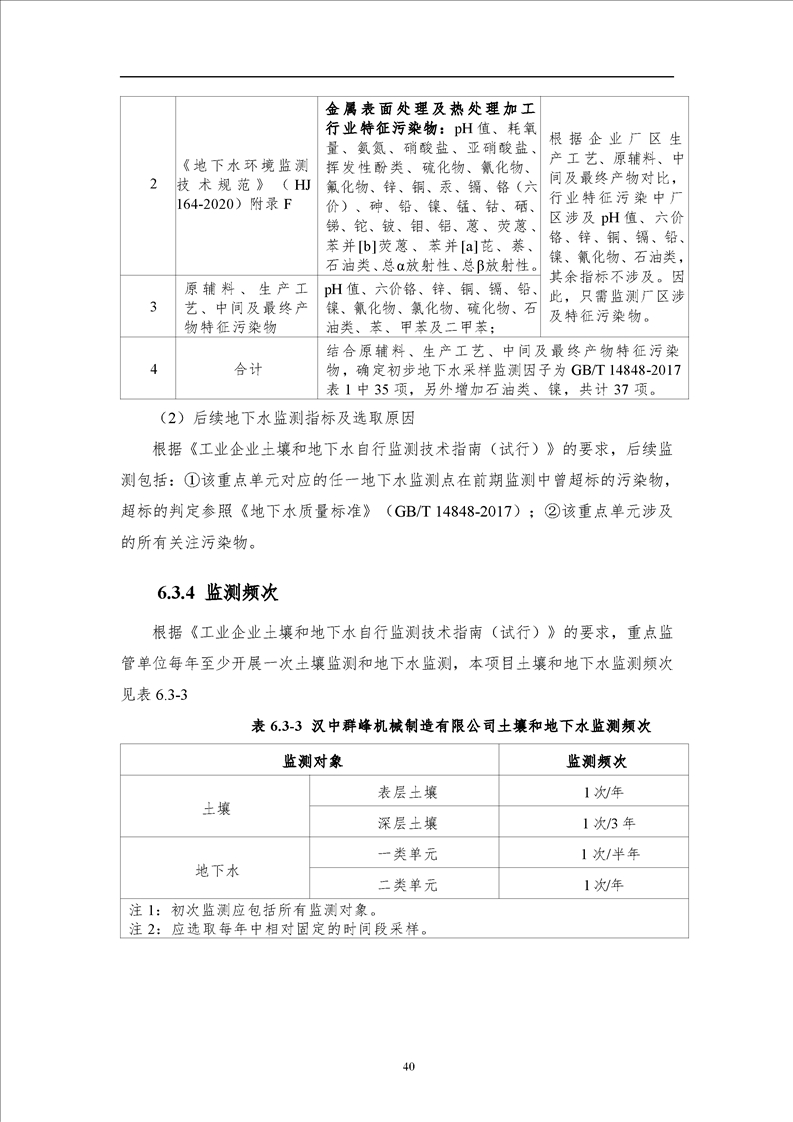 汉中群峰机械制造有限公司土壤和地下水自行监测报告(2025年)