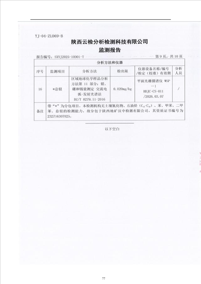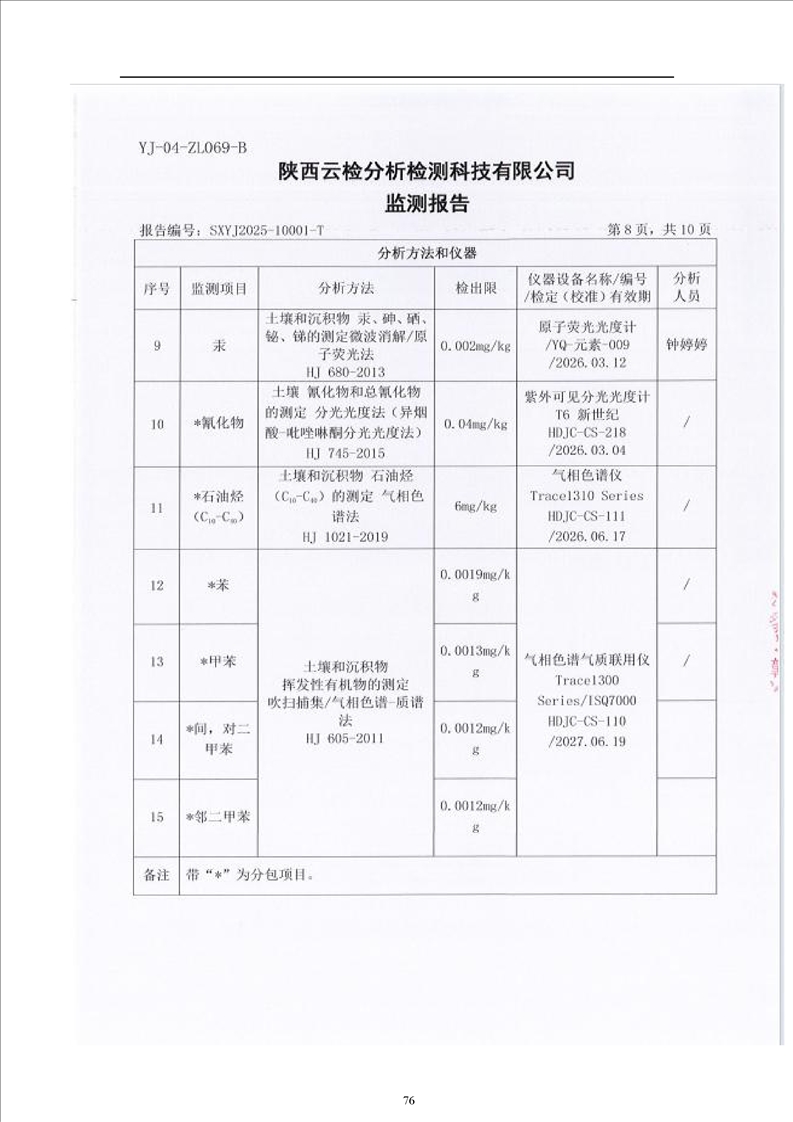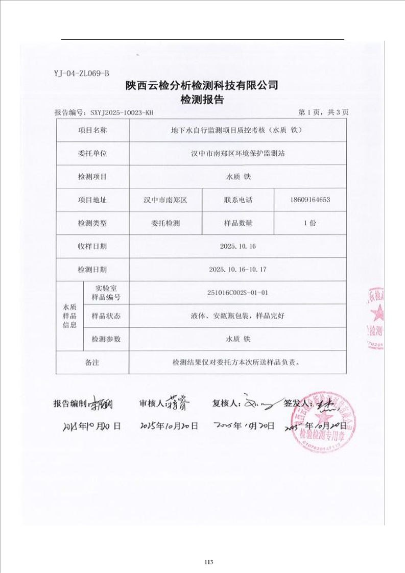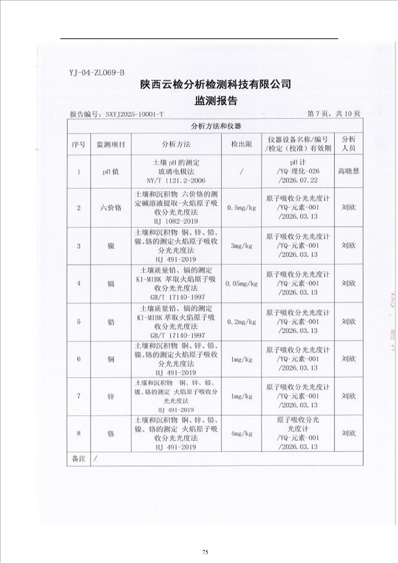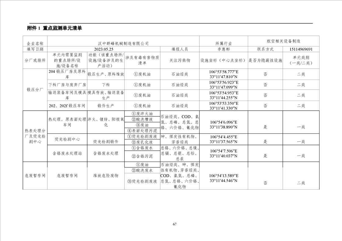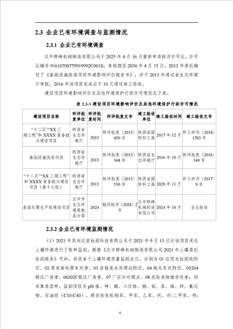 汉中群峰机械制造有限公司土壤和地下水自行监测报告(2025年)
