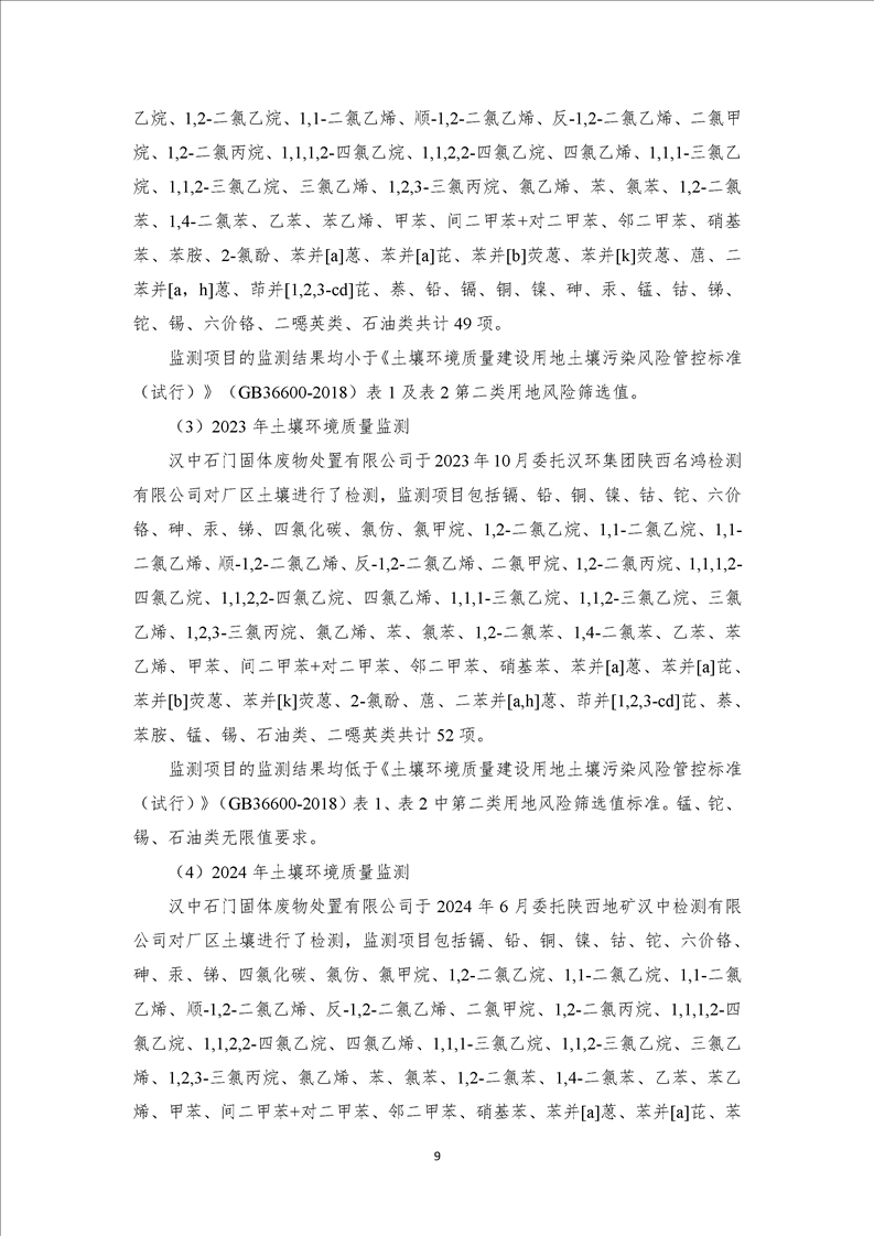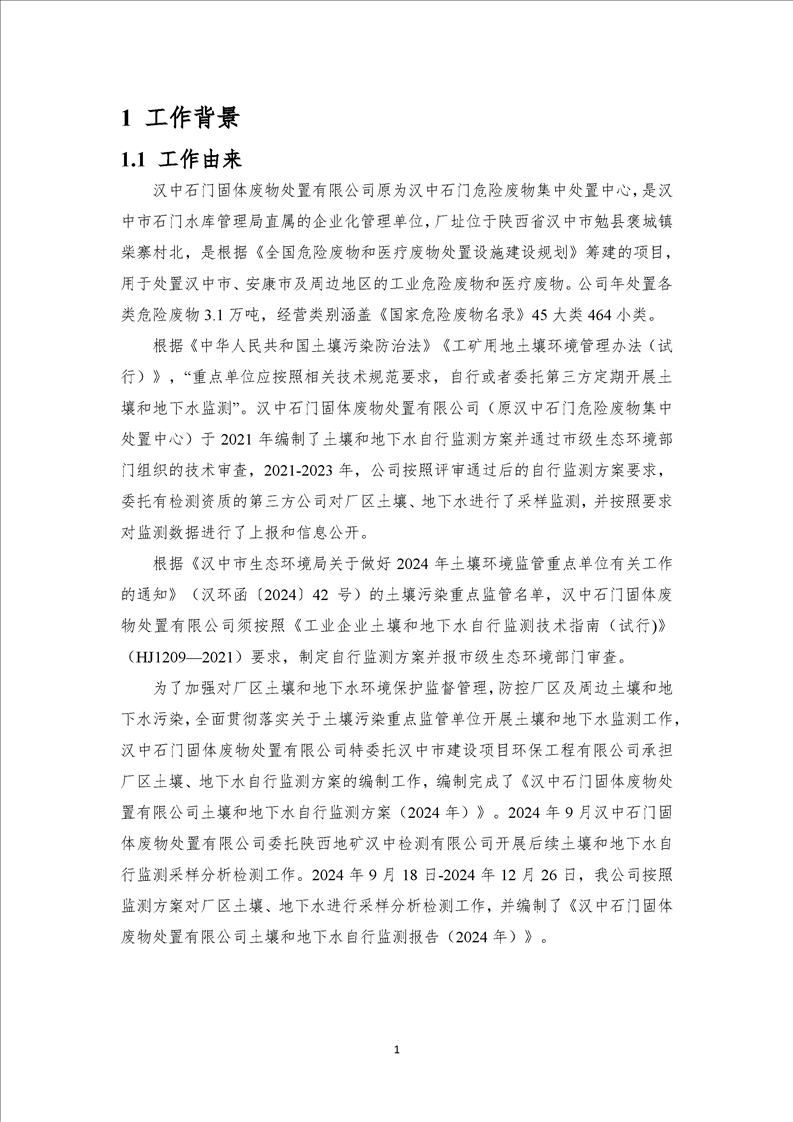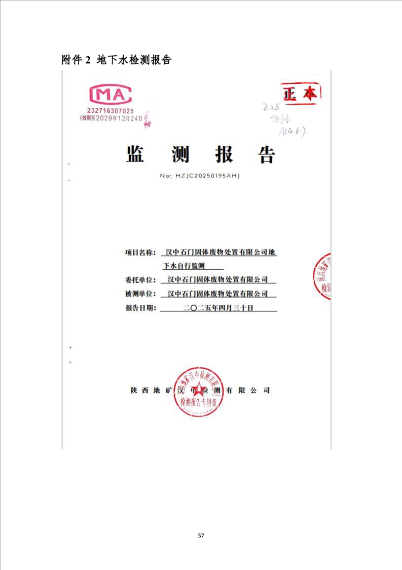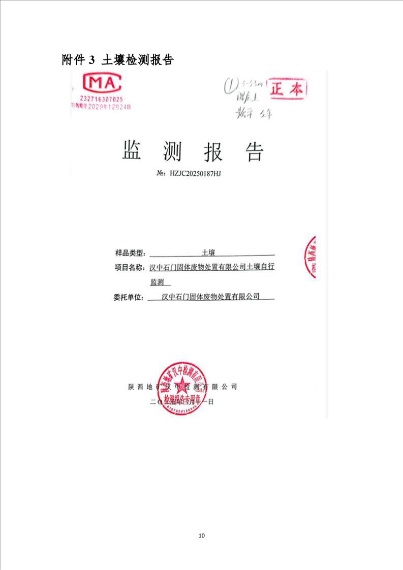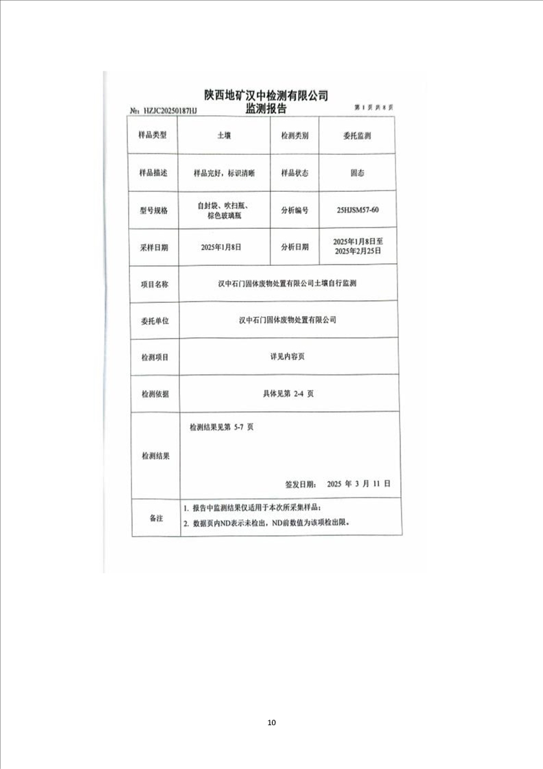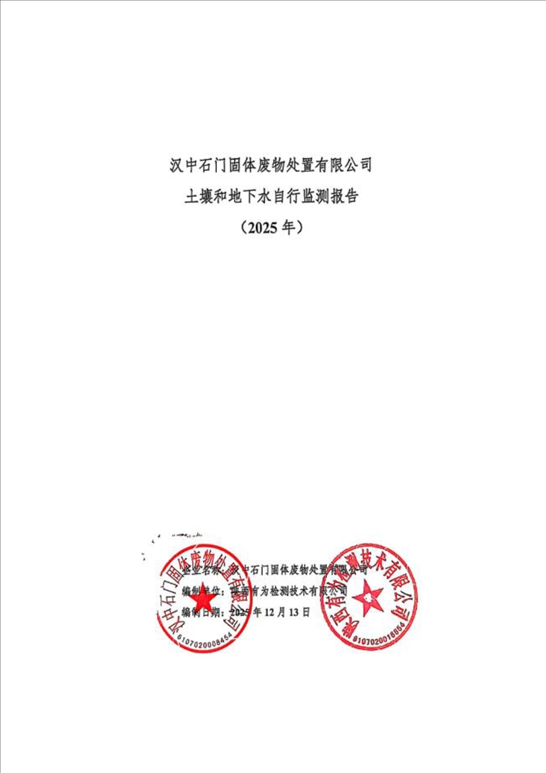 汉中石门固体废物处置有限公司土壤和地下水自行监测报告(2025年)