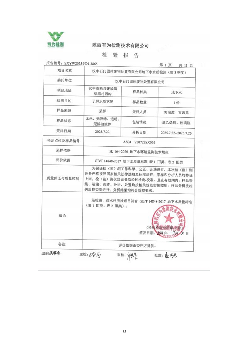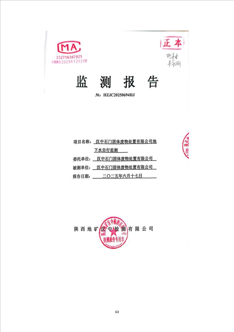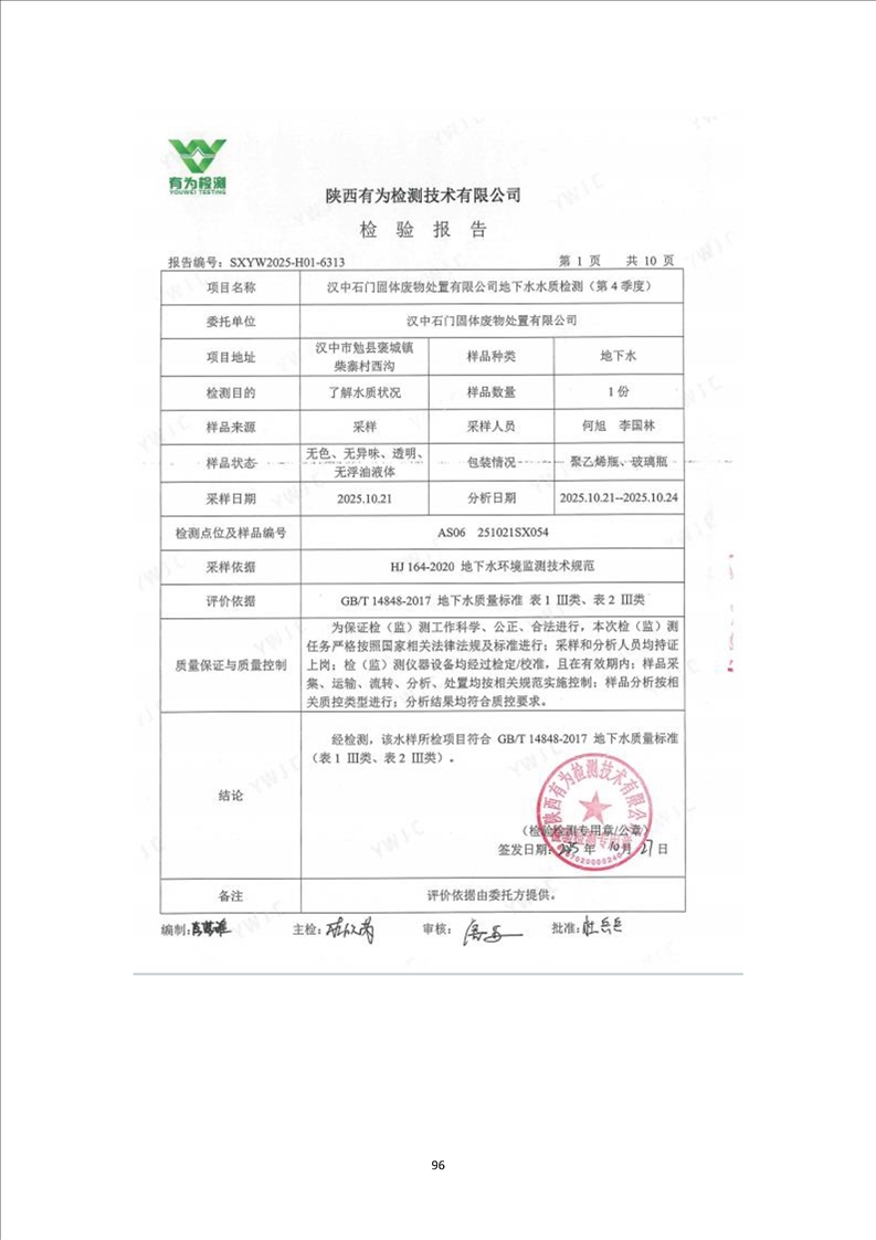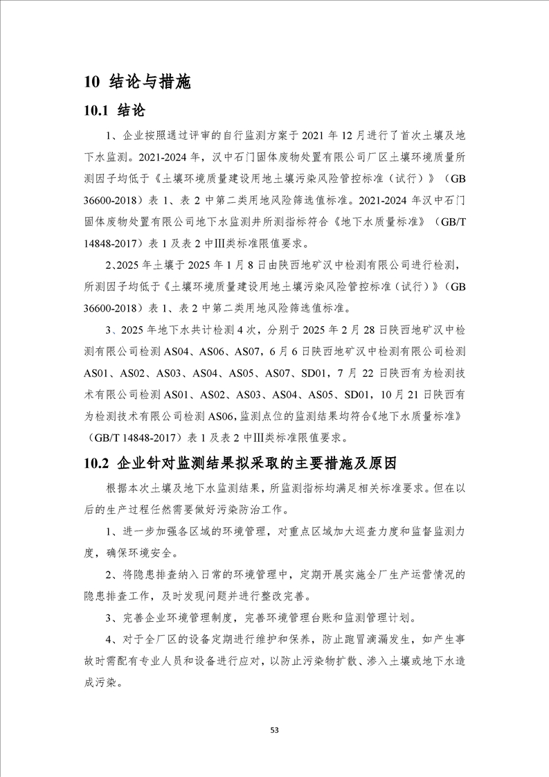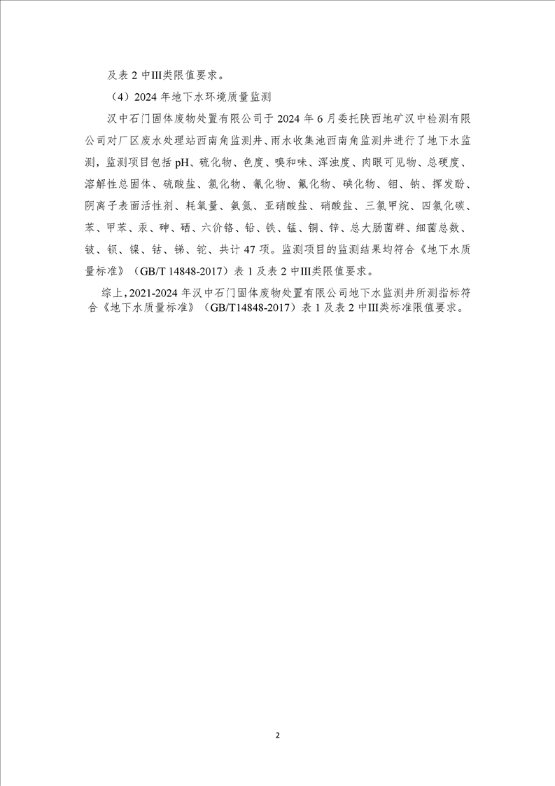 汉中石门固体废物处置有限公司土壤和地下水自行监测报告(2025年)