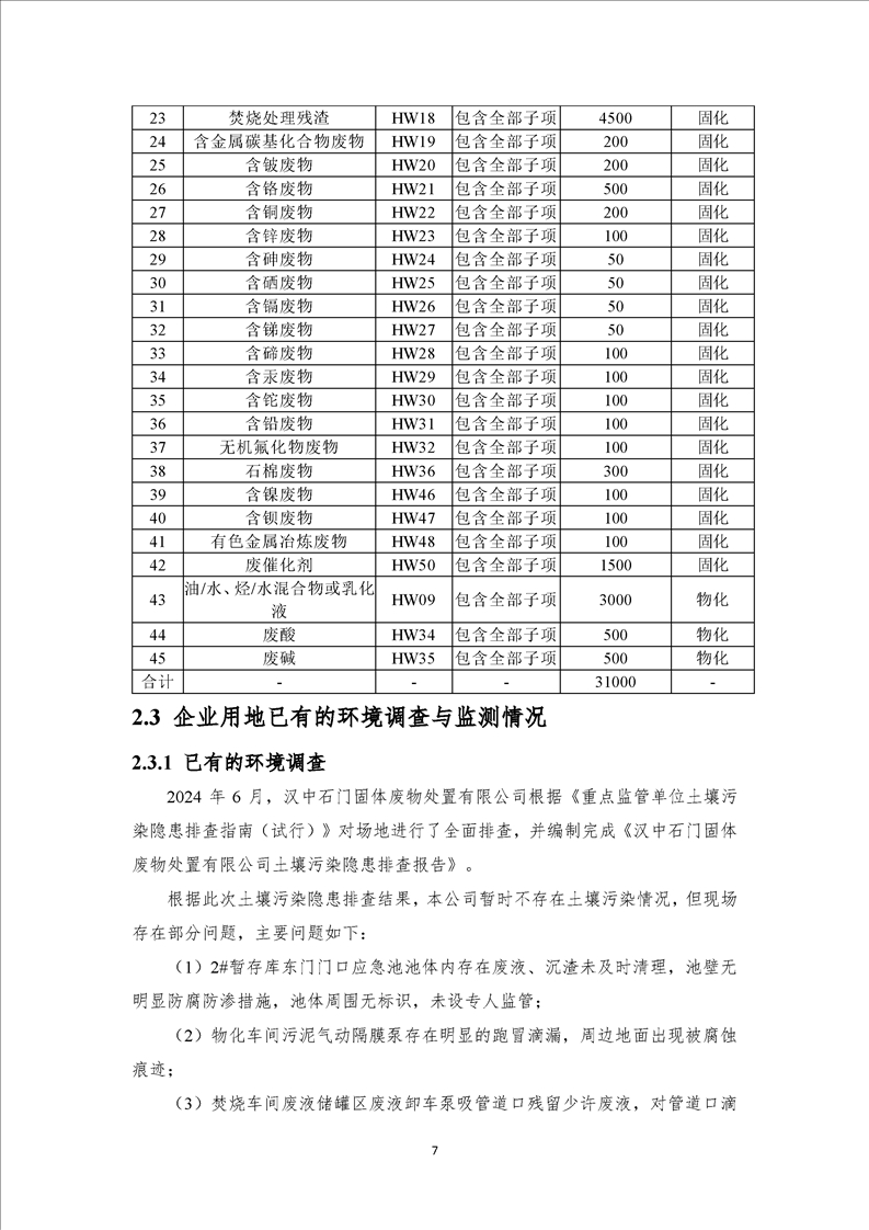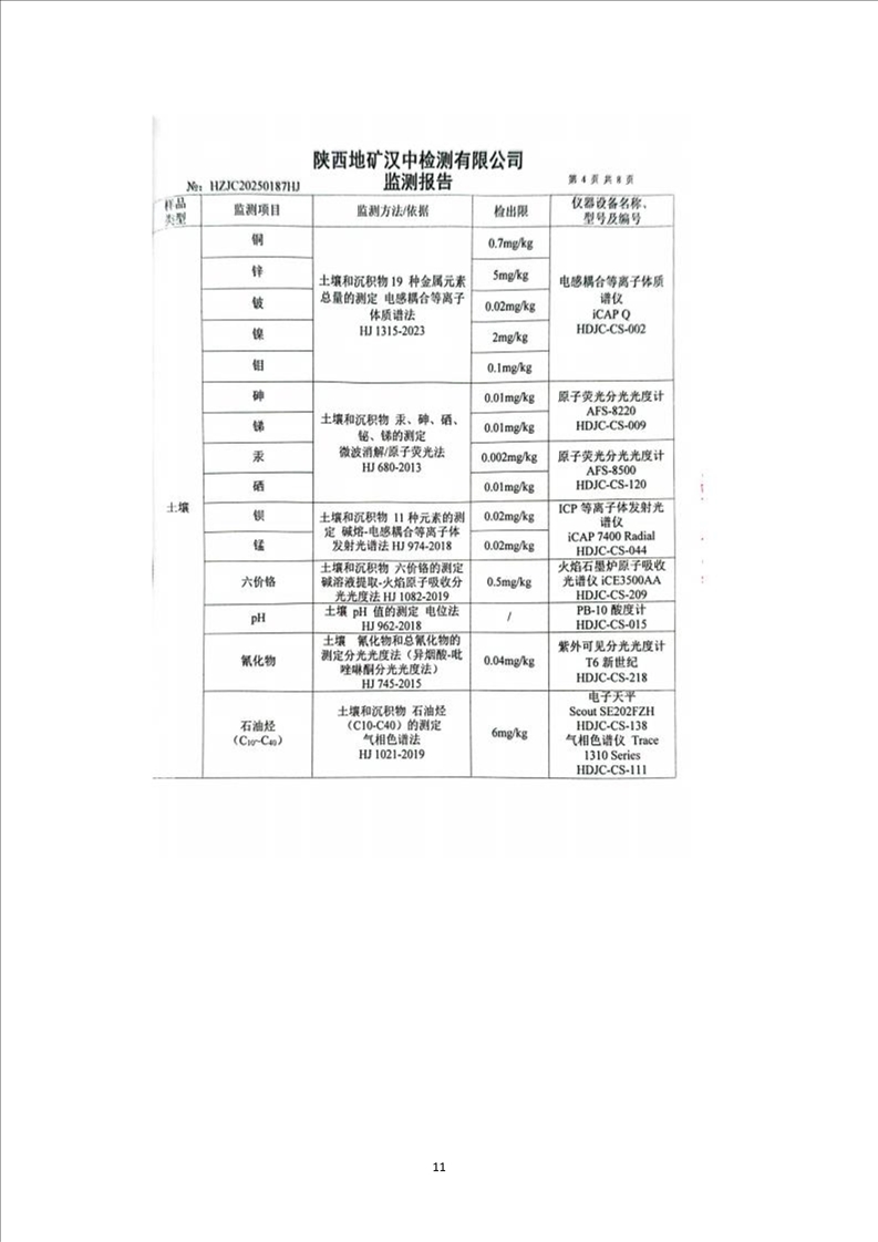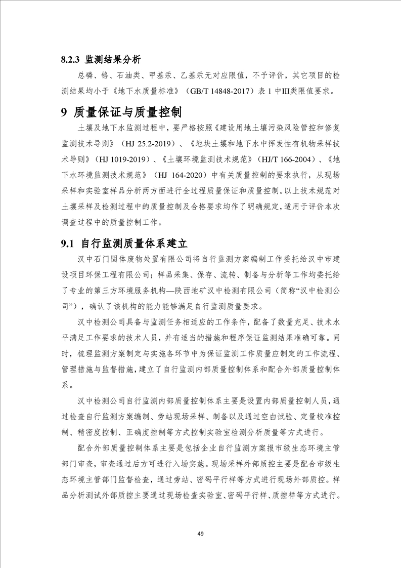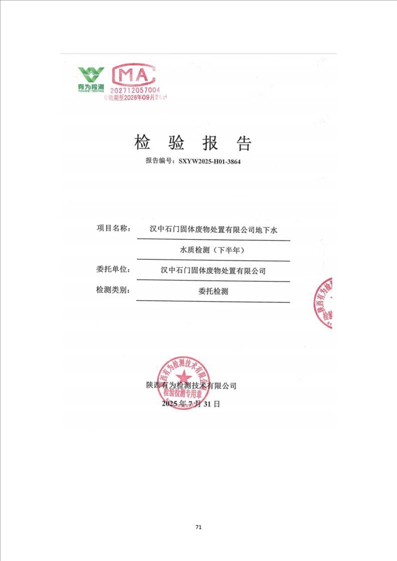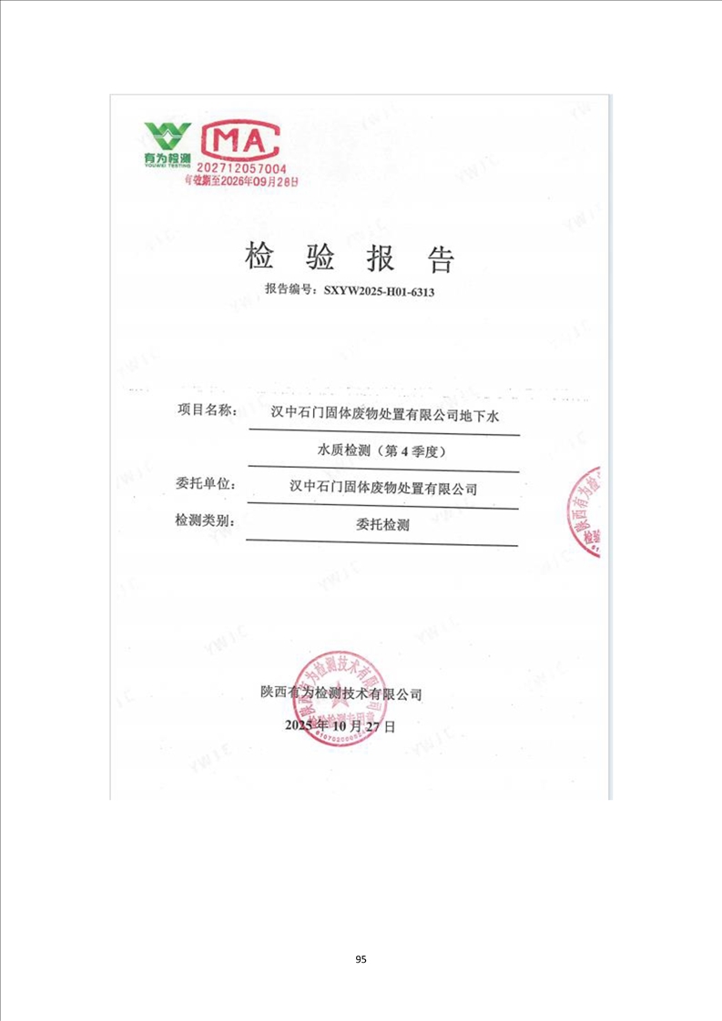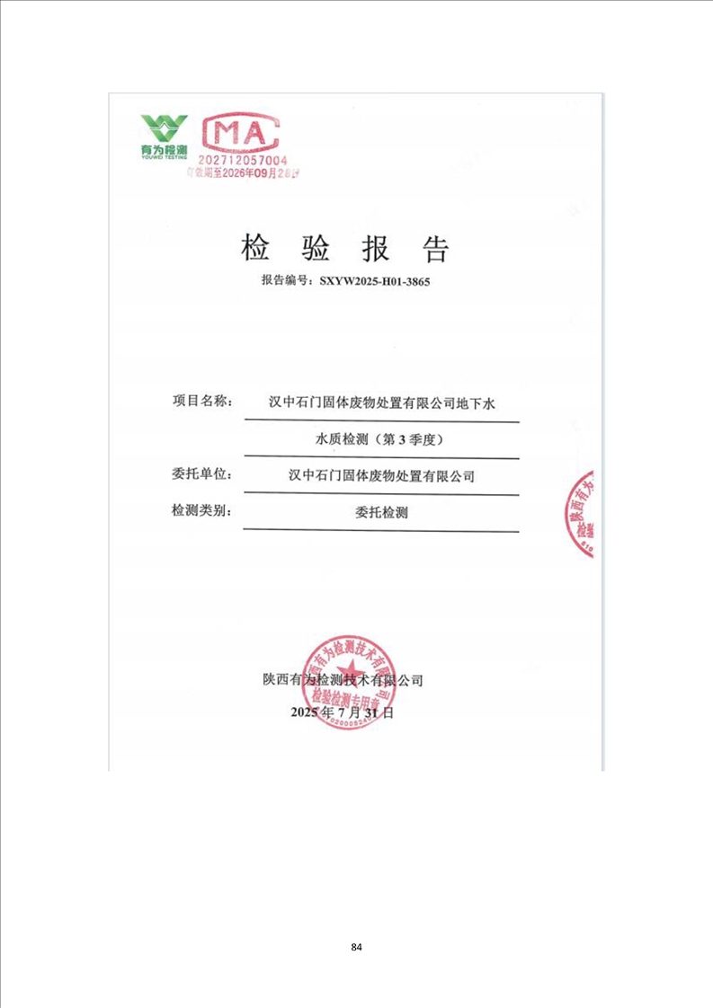 汉中石门固体废物处置有限公司土壤和地下水自行监测报告(2025年)