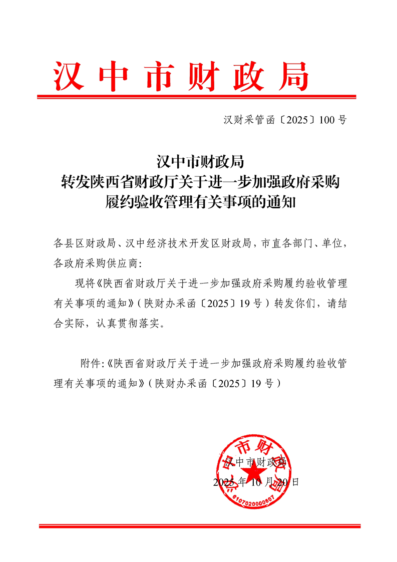 汉中市财政局转发陕西省财政厅关于进一步加强政府采购履约验收管理有关事项的通知